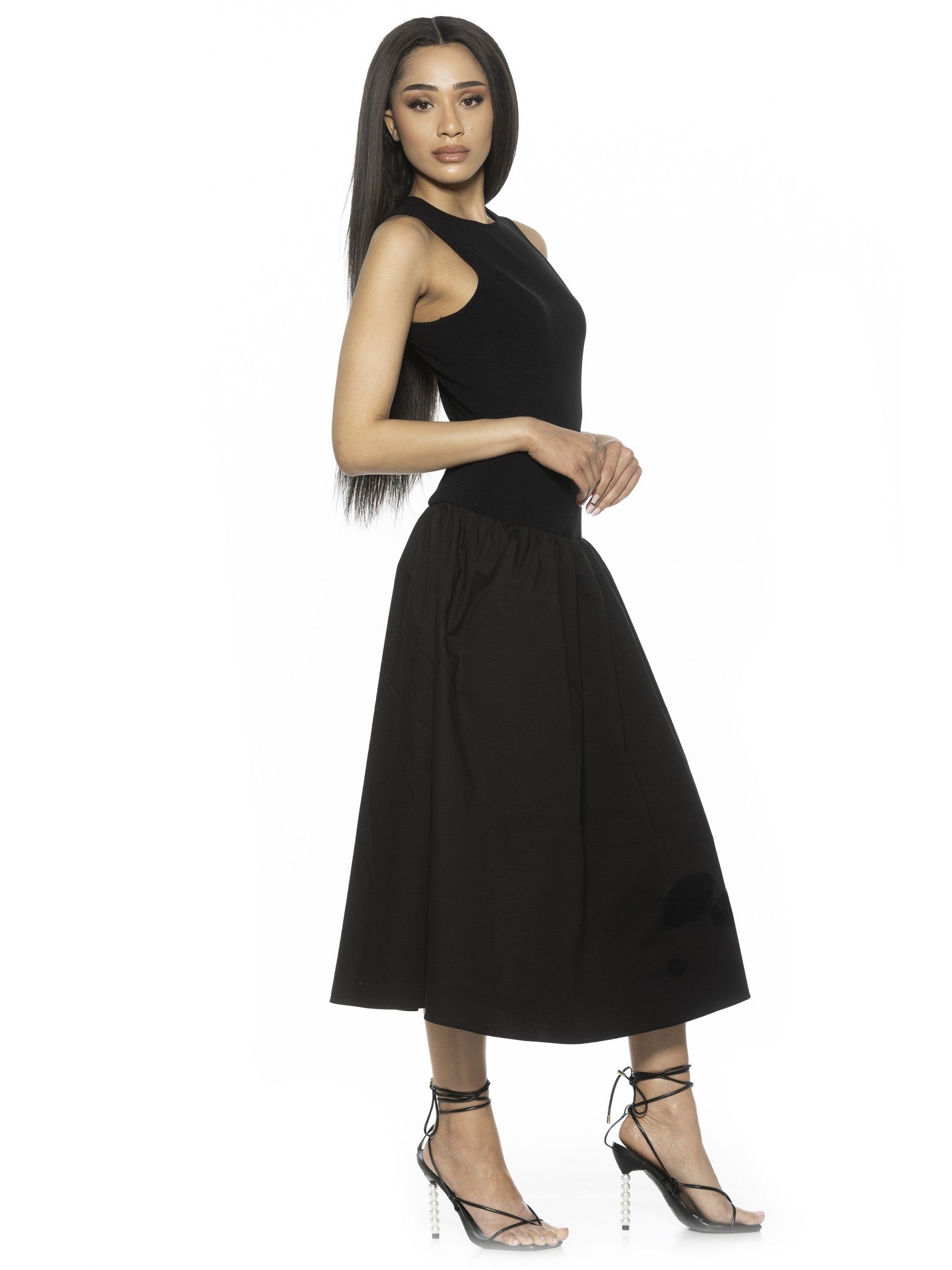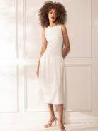 Indulge in luxurious style with our Lyle Crewneck Dress. This sophisticated piece features a drop waist and tank top design, creating a stunning silhouette perfect for any occasion. Elevate your wardrobe with this elegant midi dress.