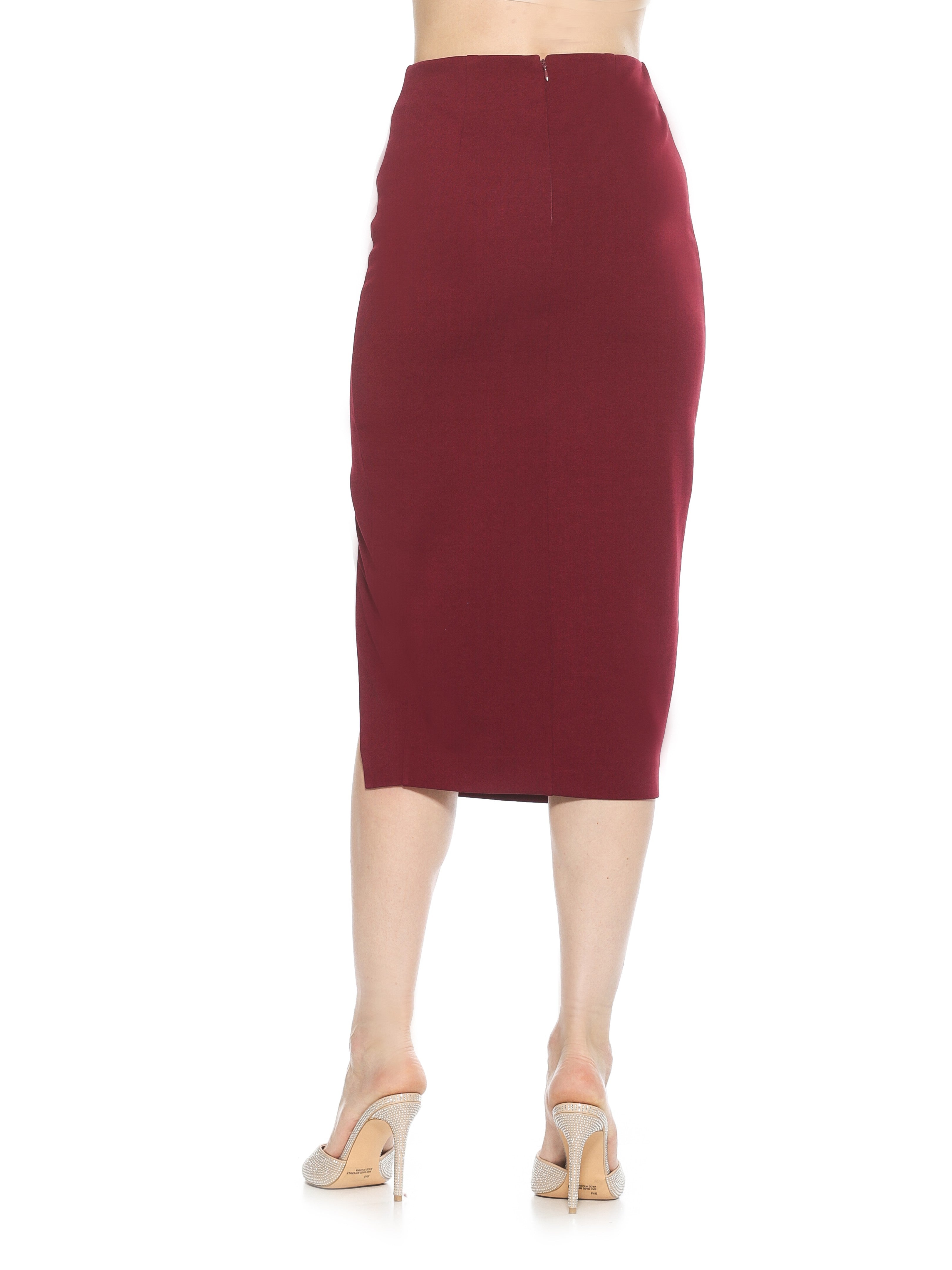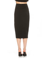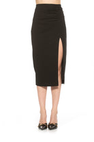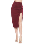 The Zayla suede pencil skirt with ruching is a must have for your closet. This skirt features luxe Ponte fabric, side slit and midi length. This item fits true to size.