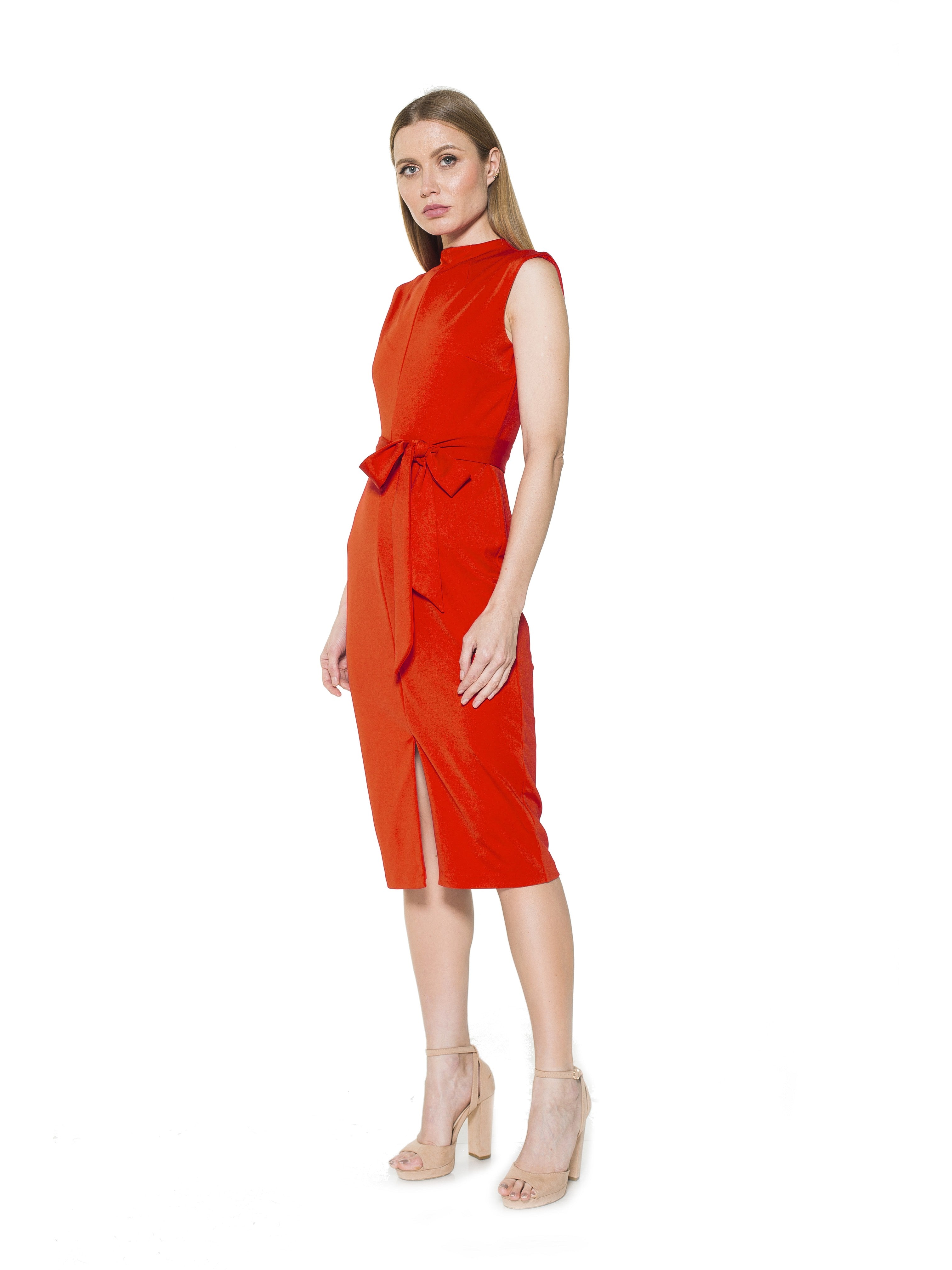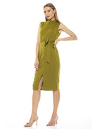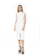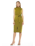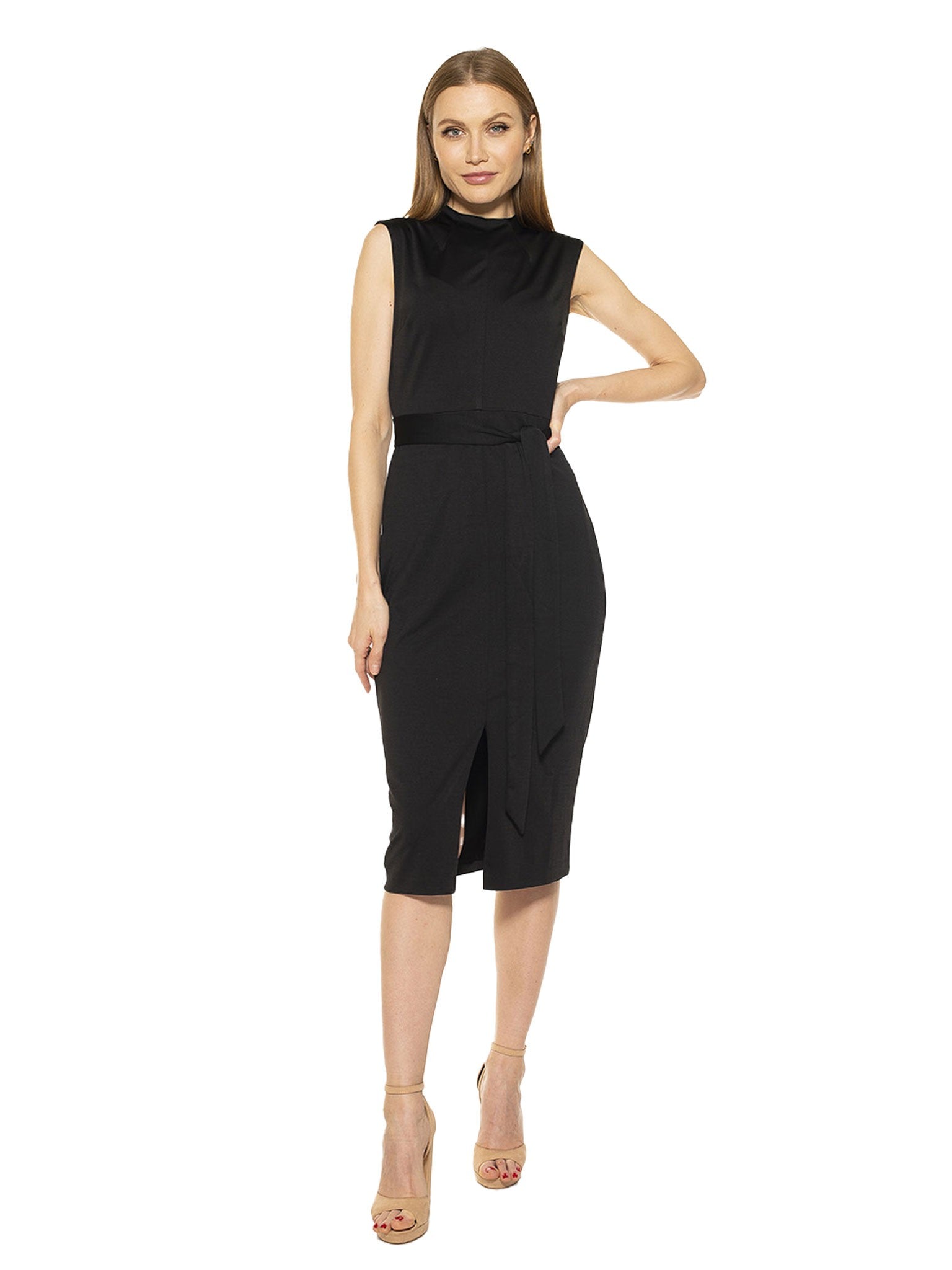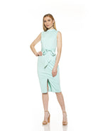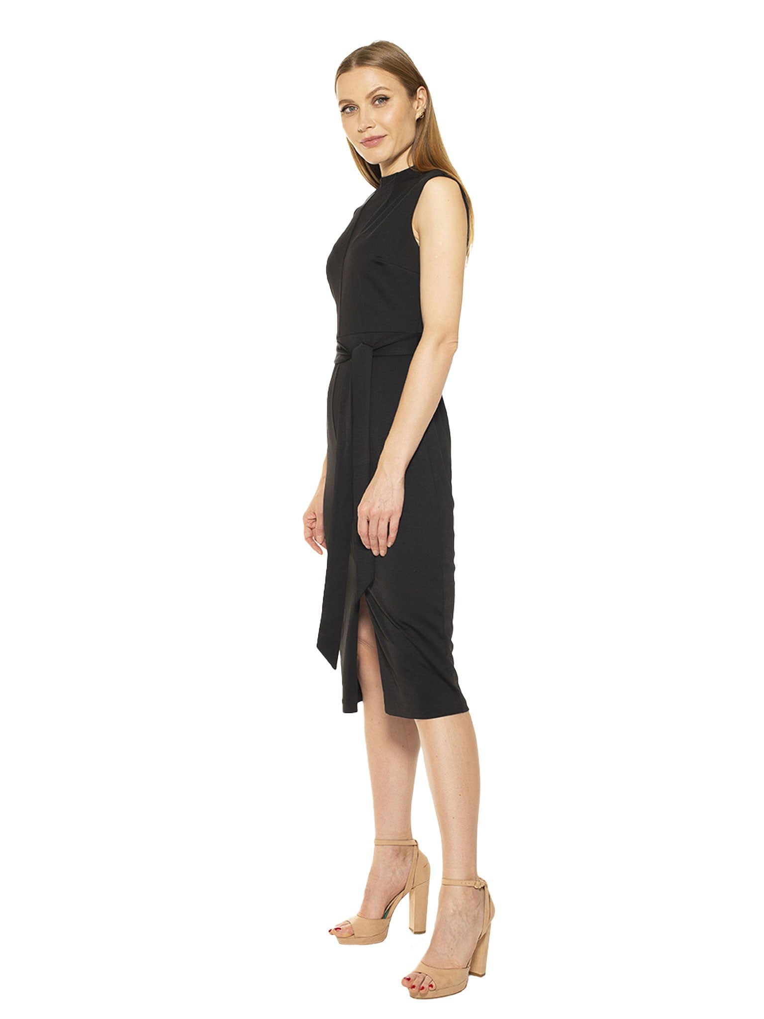 A flattering belted waist adds a feminine touch to this chic mock neck sheath dress. Fit: this style fits true to size.
