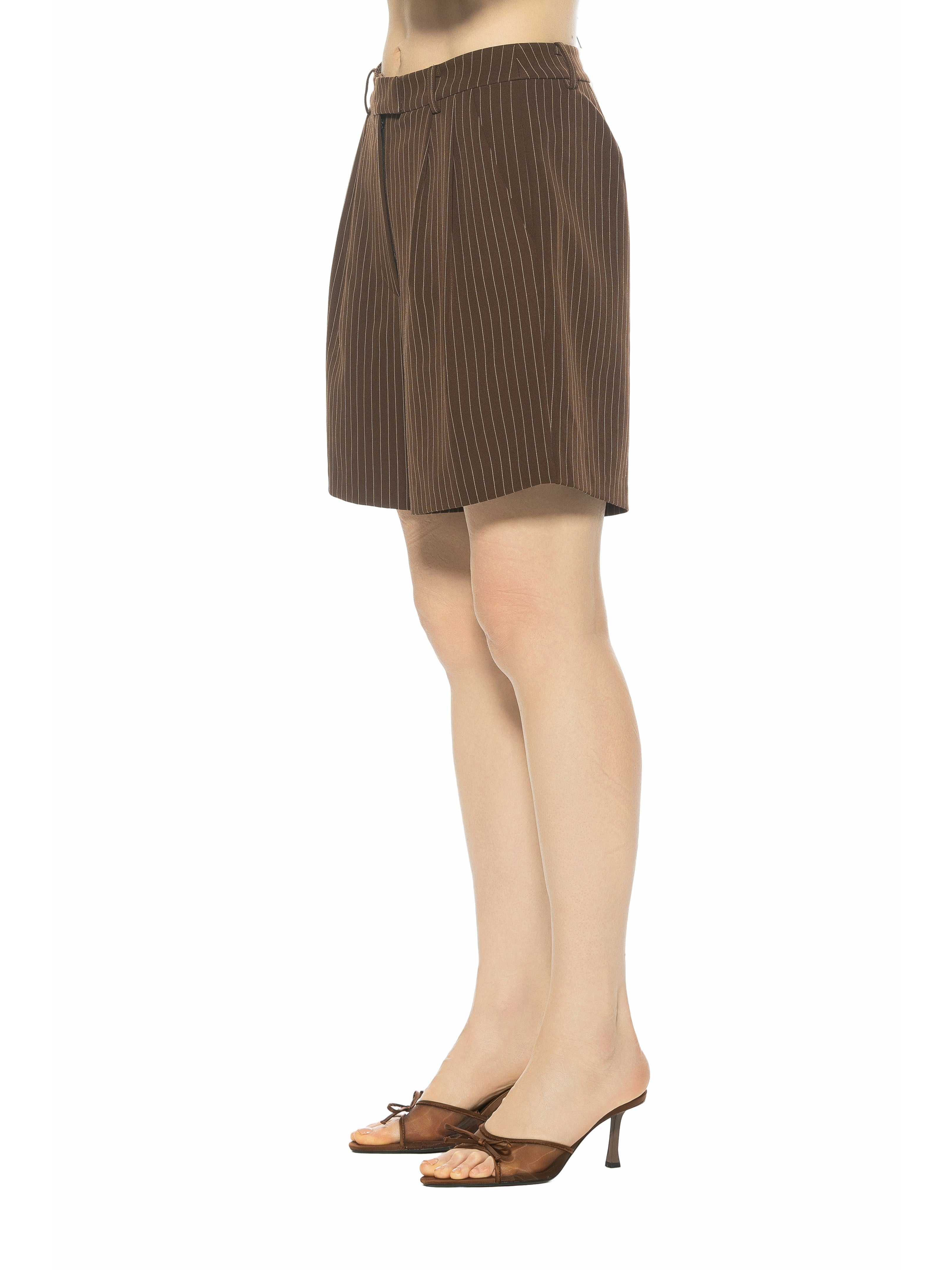 Tailored with a modern, menswear-inspired edge, the Dia Pleated Long Shorts are designed to deliver a clean, structured silhouette with effortless wearability. Crafted with classic front pleats and a refined longer length, this style balances sharp tailoring with everyday ease; perfect for polished daytime looks or elevated off-duty dressing. Finished with functional details throughout, including belt loops, a front fly opening, and working pockets, these shorts are both practical and chic. The crisp pleating and precise proportions create a flattering fit that sits comfortably at the waist while elongating the leg.