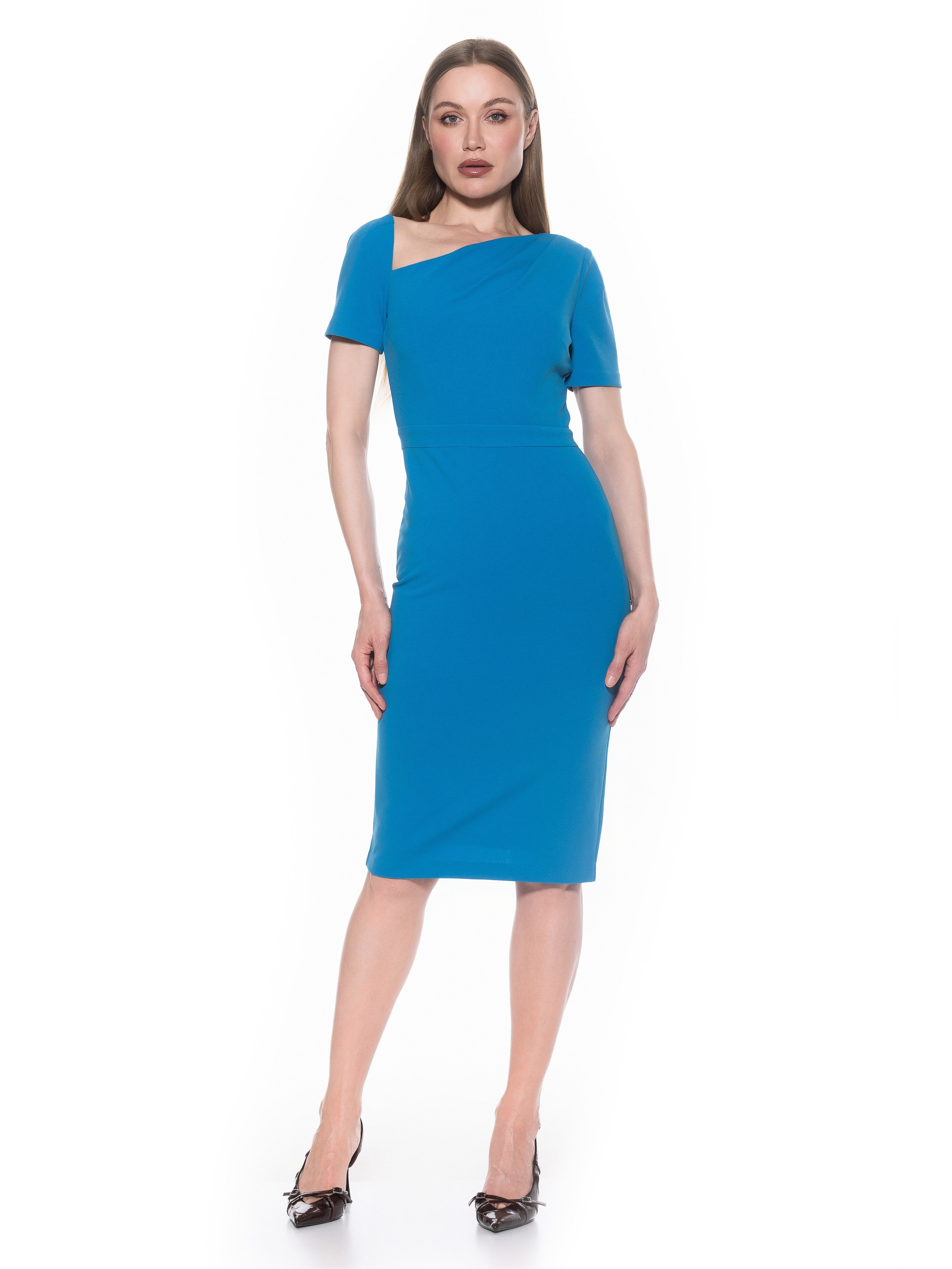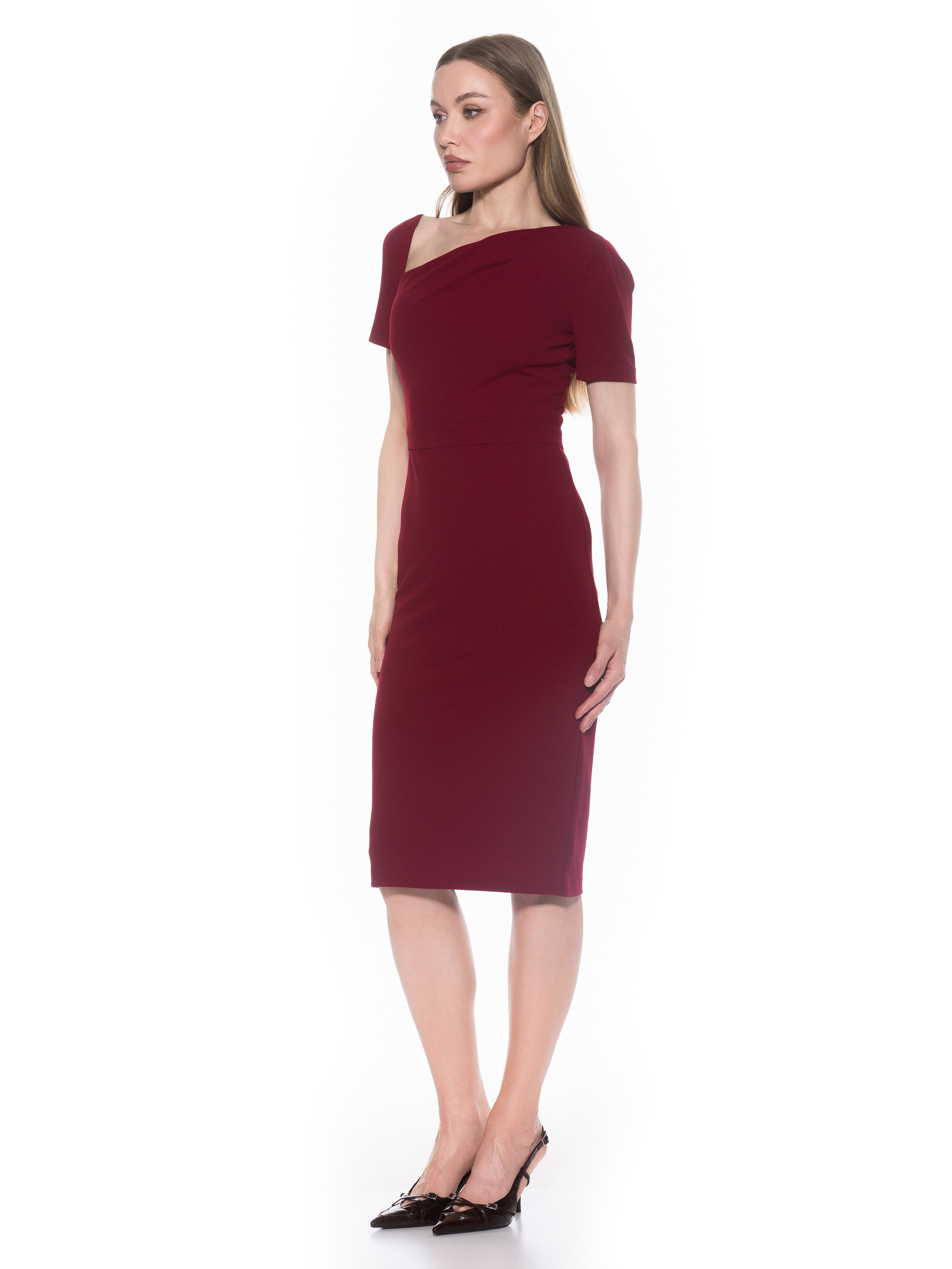 The Skylar Asymmetric Ruched Short Sleeve Midi Dress With Waistband Is A Must Have For Your Closet. This Chic Dress Features Short Sleeves, Asymmetric Neckline, And Fitted Sheath Body. This Dress Fits True To Size.