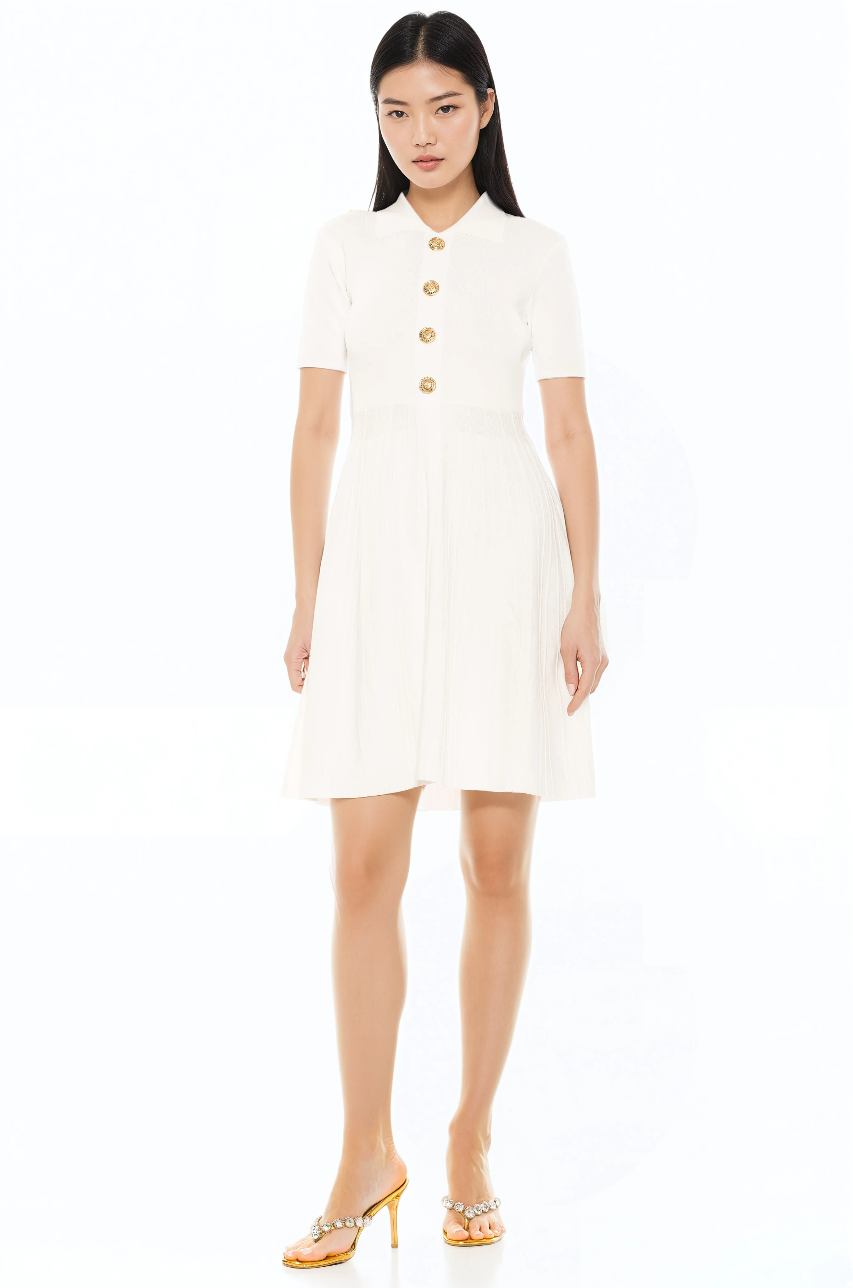The Soren Fully Knit Fit And Flare Dress Is A Must Have Piece For Your Closet. This Dress Features Short Sleeves, Flared Skirt, Luxe Knit Fabric, And Button Down Detail. This Dress Fits True To Size.