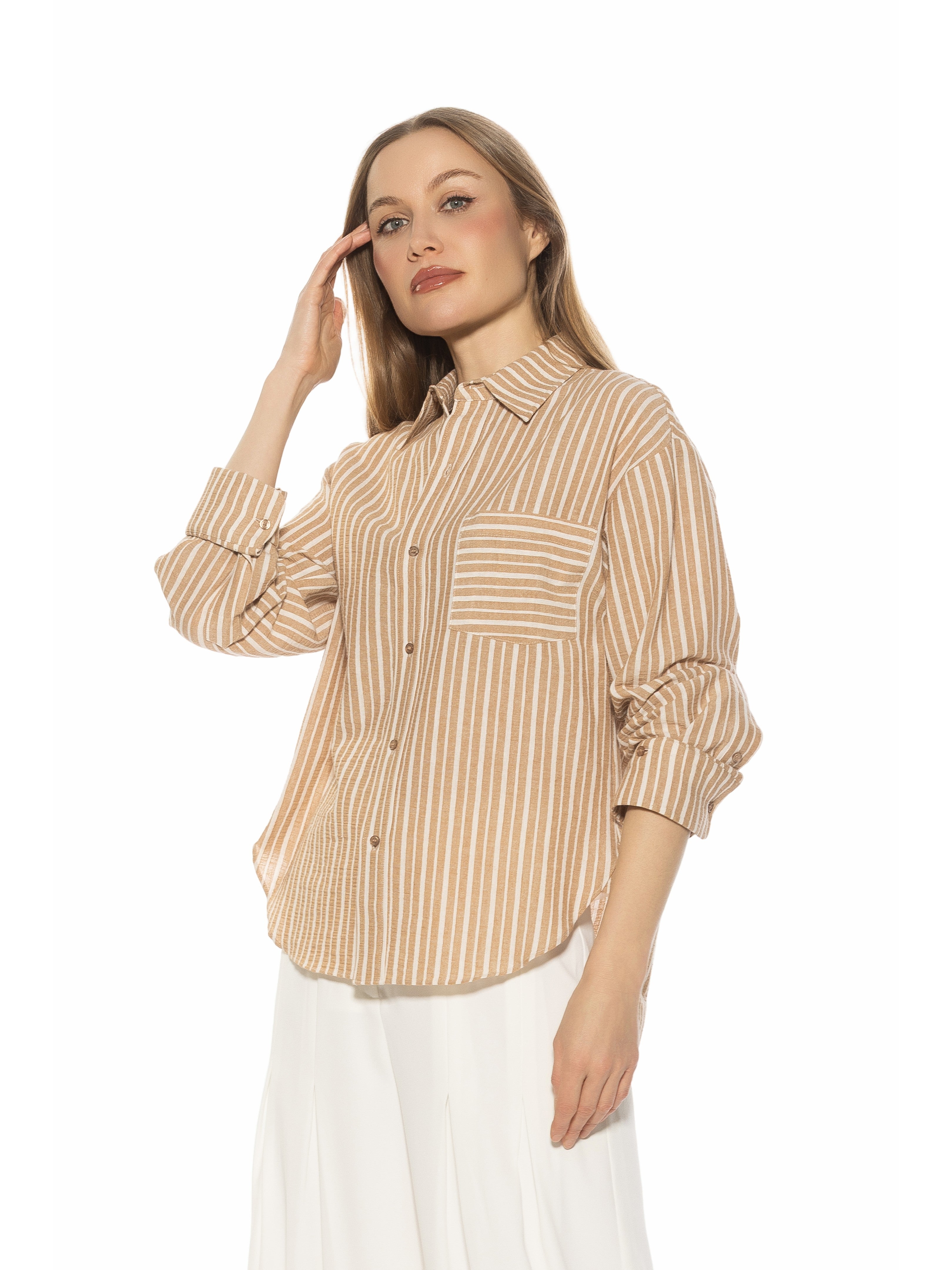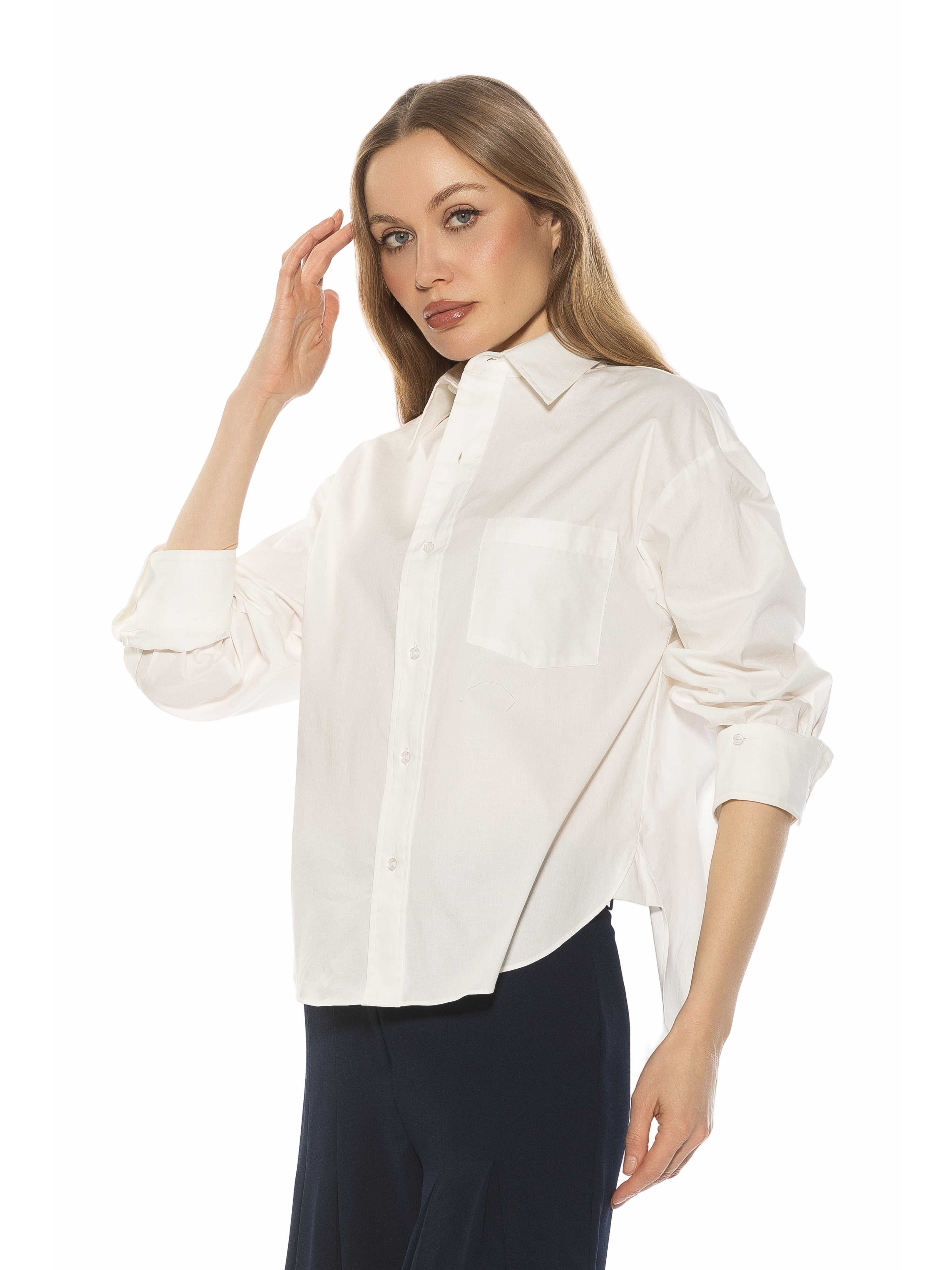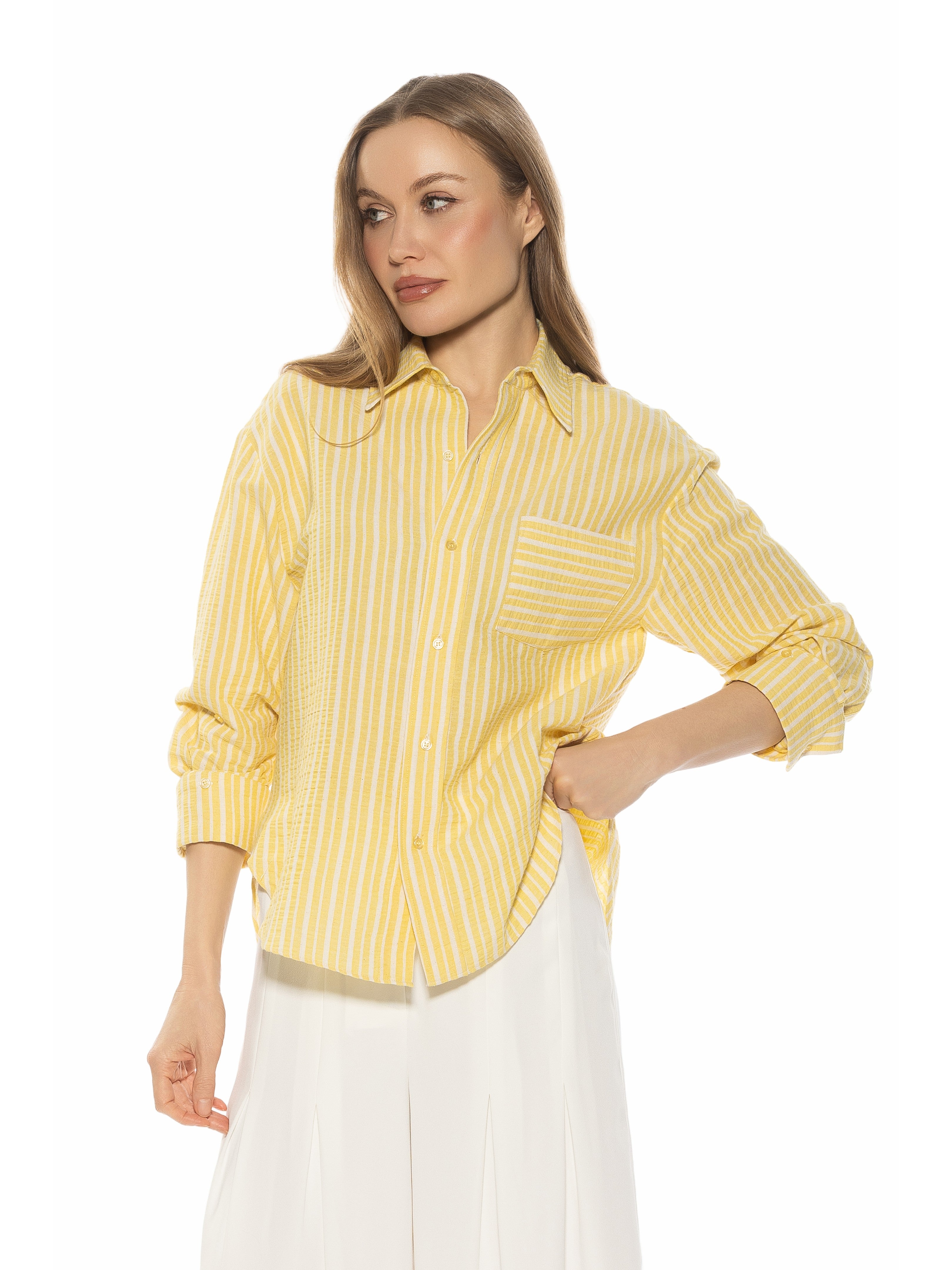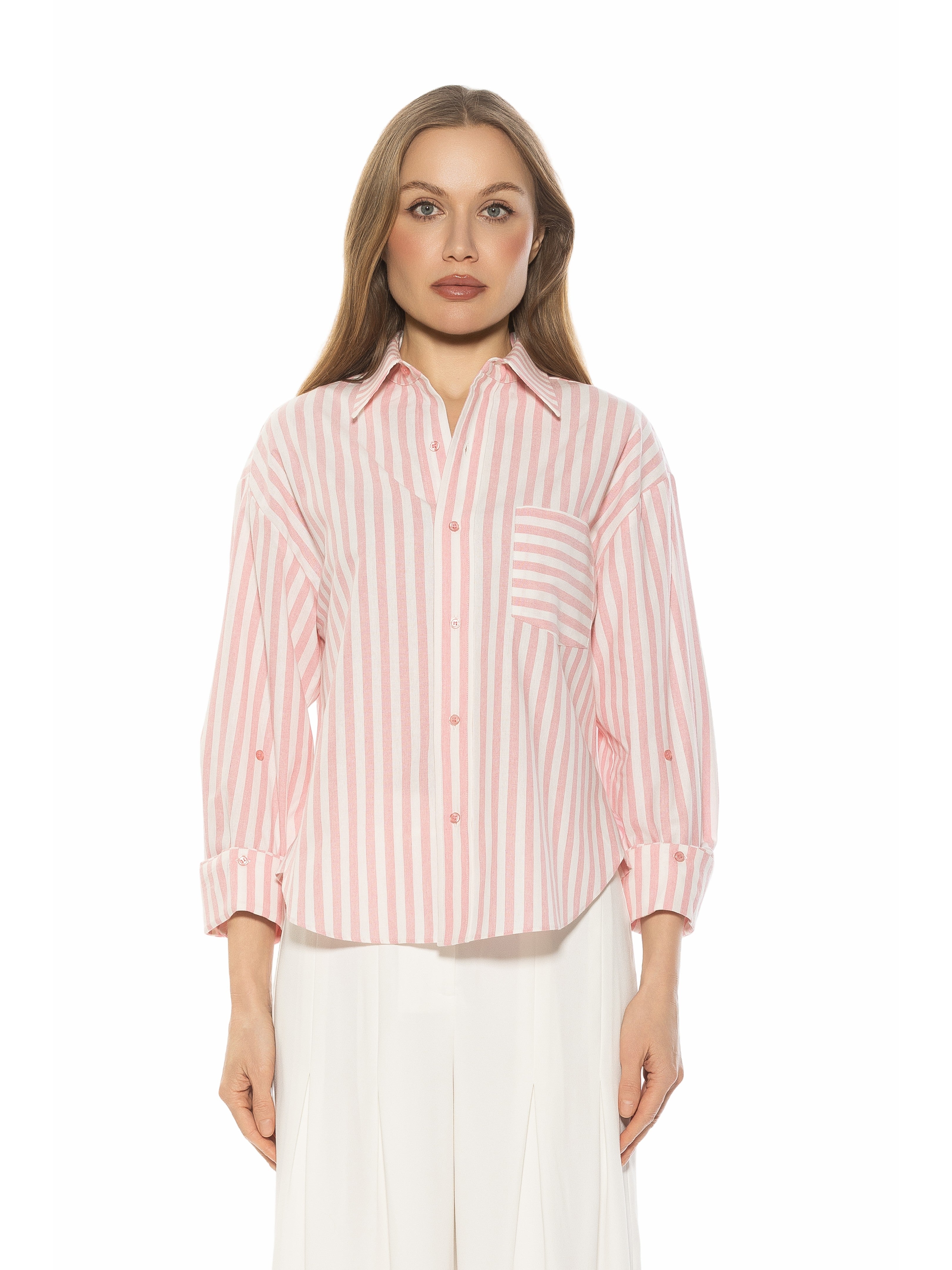 Effortlessly chic and endlessly versatile, the Tammi Boyfriend Oversized Shirt is designed for relaxed sophistication. Cut in a classic button-down silhouette with an intentionally oversized fit, this piece delivers an easy, borrowed-from-him feel while maintaining a refined finish. Thoughtful details elevate this wardrobe essential for everyday wear. Style with tailored trousers, denim, or worn open over a tank for a polished yet laid-back look that transitions seamlessly from weekday to weekend.
