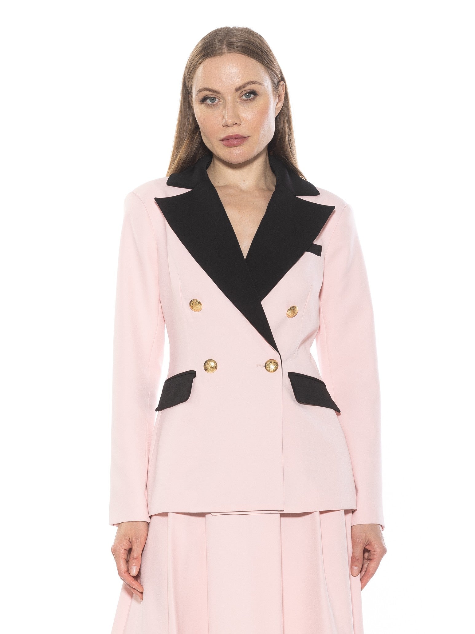 The Farrah Blazer exudes sophistication with its gold buttons and double breasted design. Elevate any outfit with this luxurious piece, a must-have for the fashion-forward individual. Command attention and make a statement with this exclusive blazer.