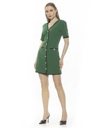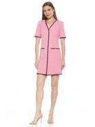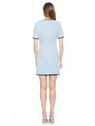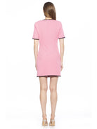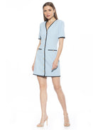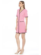 Elevate your style with our Holly Dress. Featuring crystal buttons and a v-neck for a touch of elegance, with a contrast lining for added detail. The short sleeve and button down design make it a versatile piece for any occasion. Embrace luxury in this mini dress.