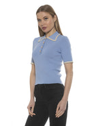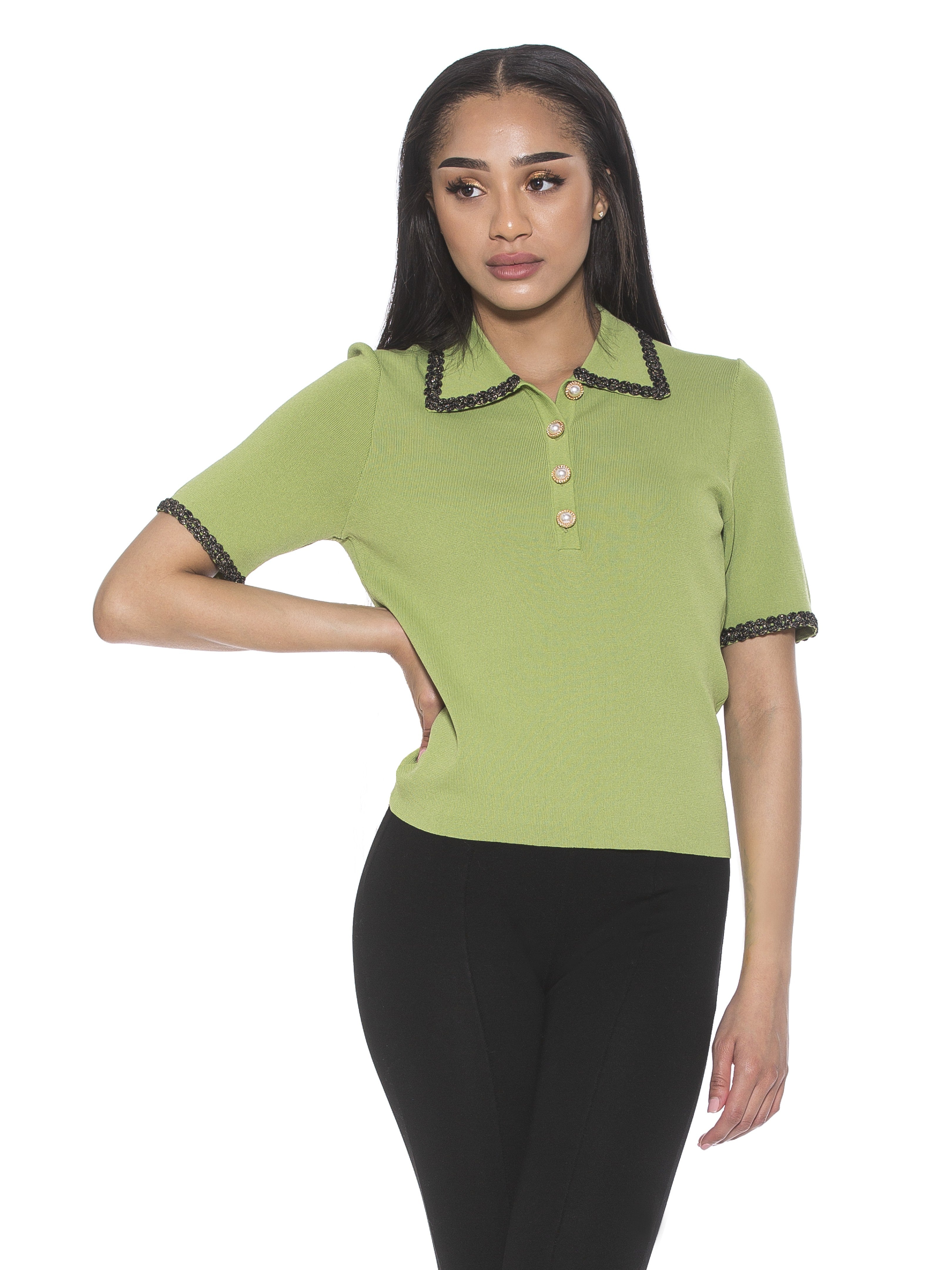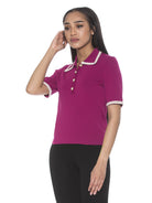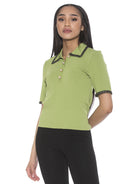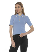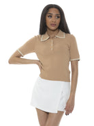 The Brianna Top is a lightweight knit short-sleeved top with a crisp collar, contrasting trim, and gold button detailing. Perfect for any season or occasion, this stylish yet comfortable top is designed with the modern woman in mind.