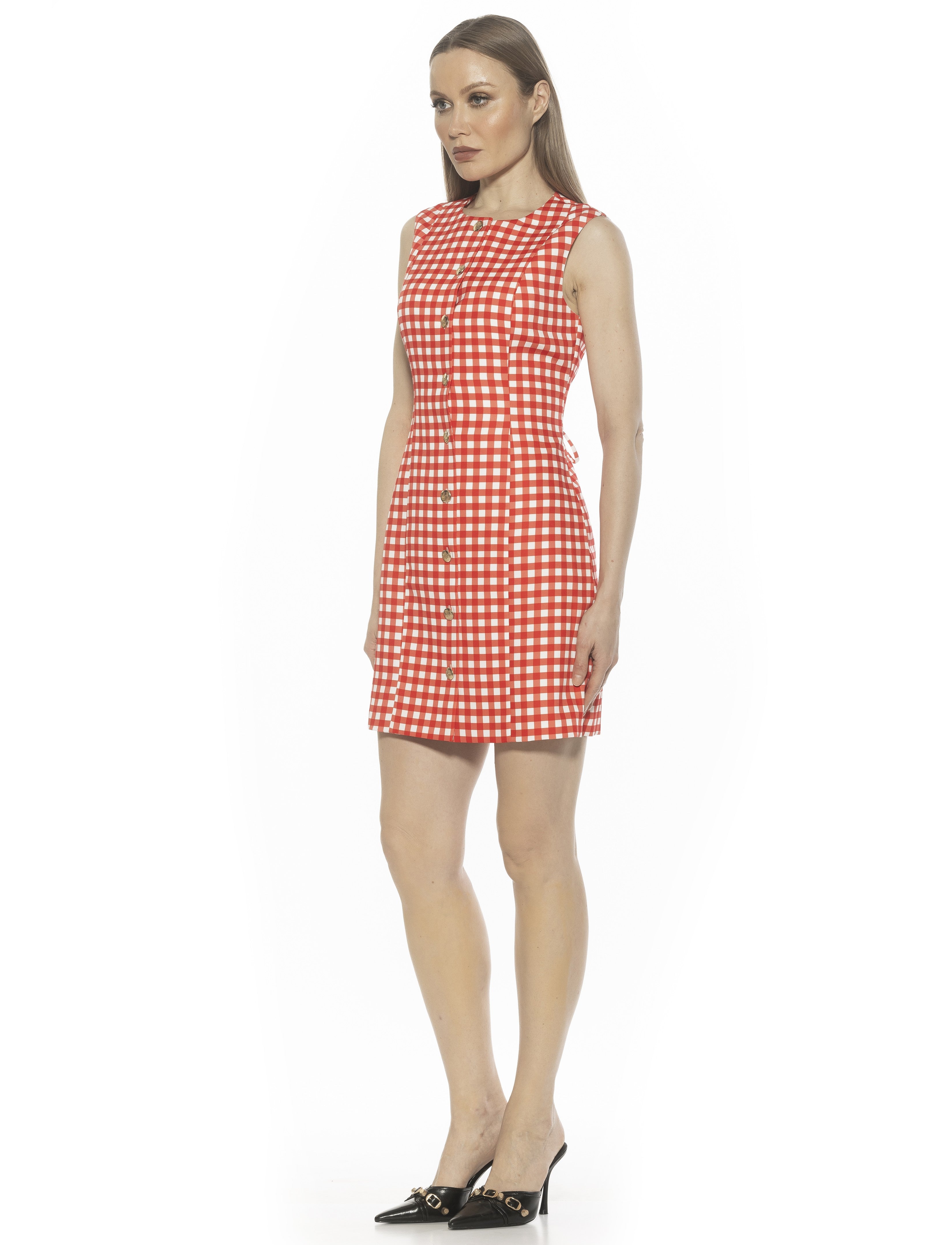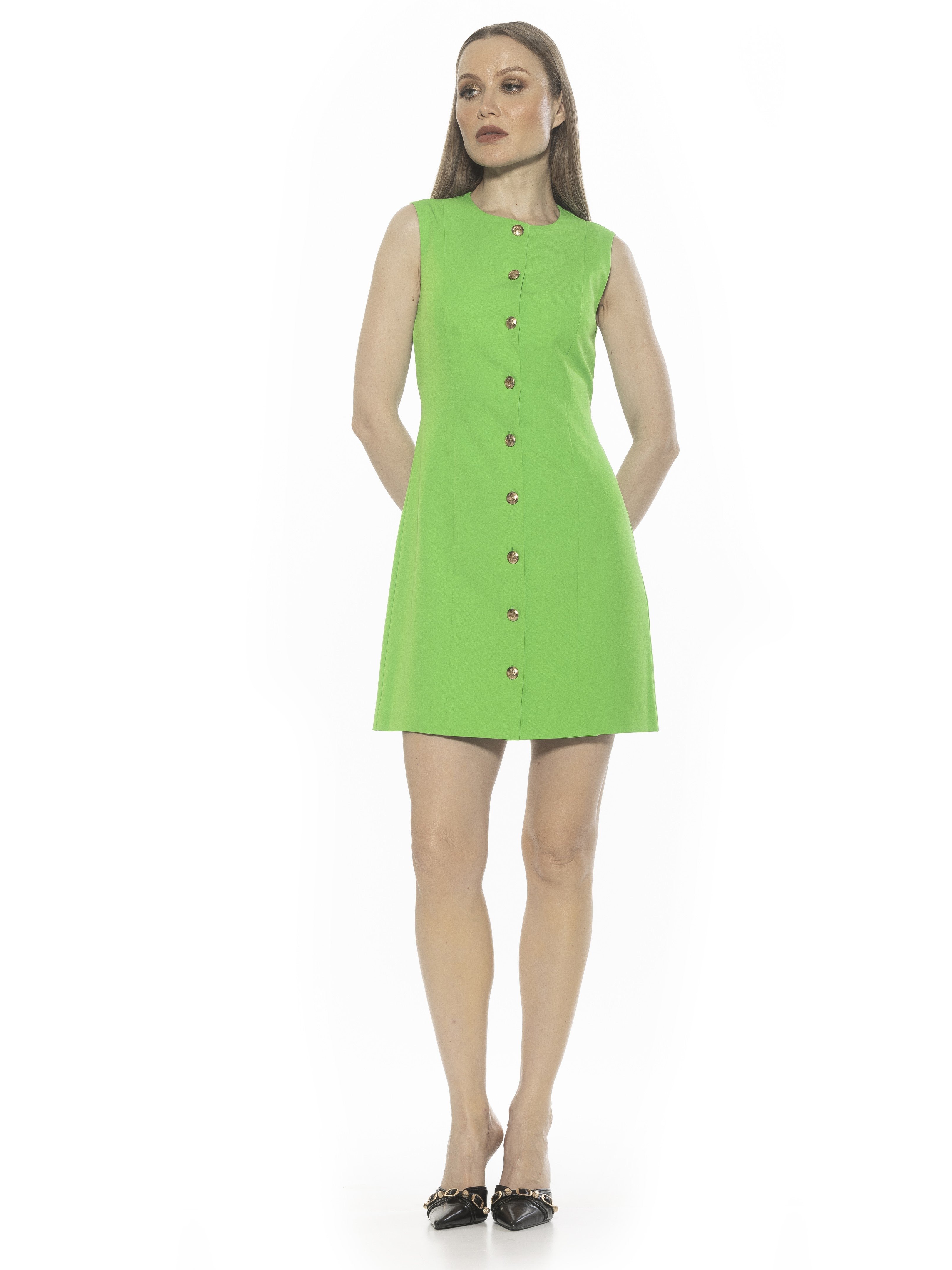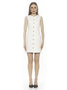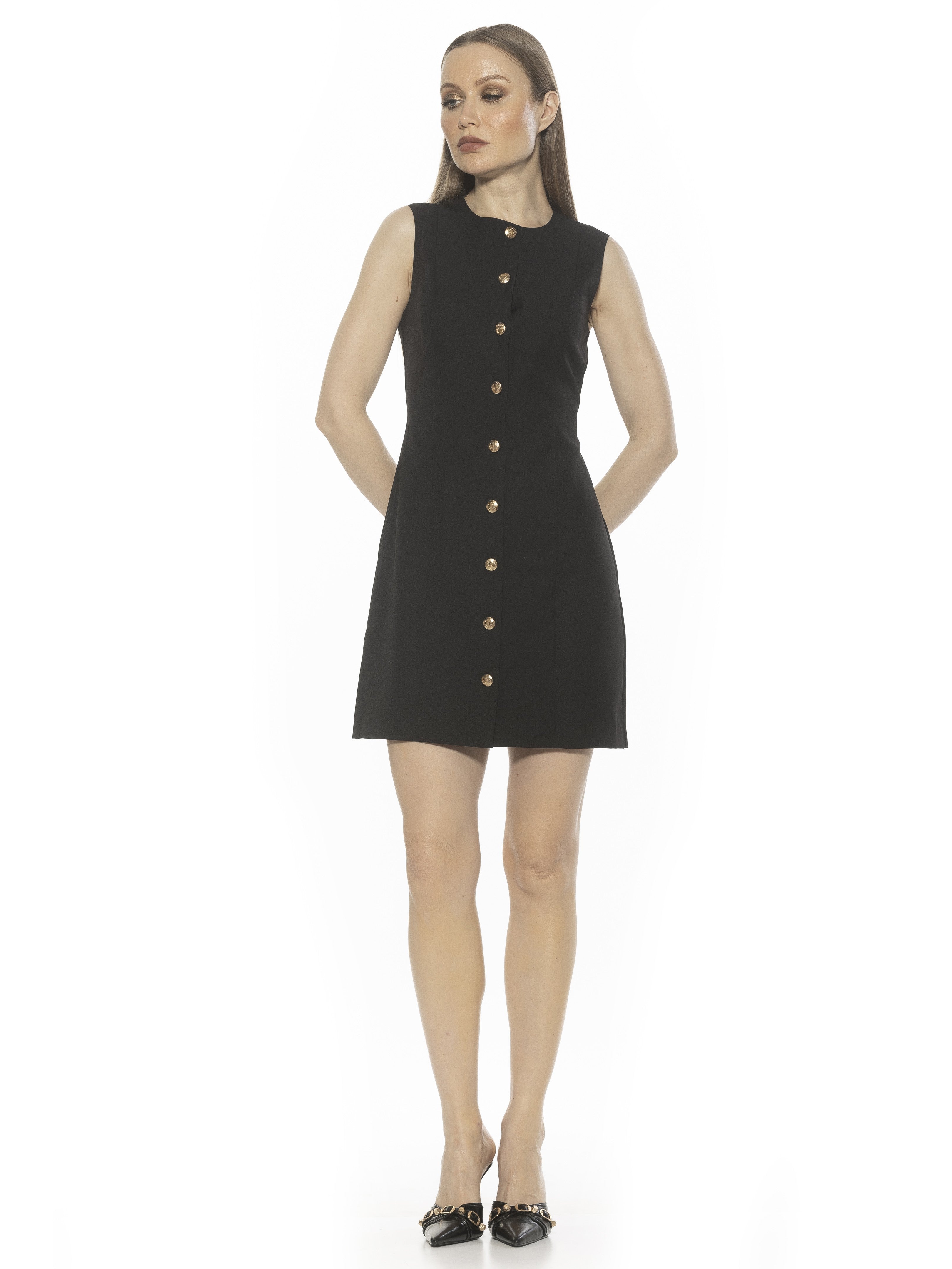 The Bridgette Sleeveless Button Down Vest Dress Is A Must Have For Your Wardrobe. This Dress Features Button Down Front, Crewneck Neckline, Back Adjustable Tie, And Luxe Material. This Dress Runs Small.