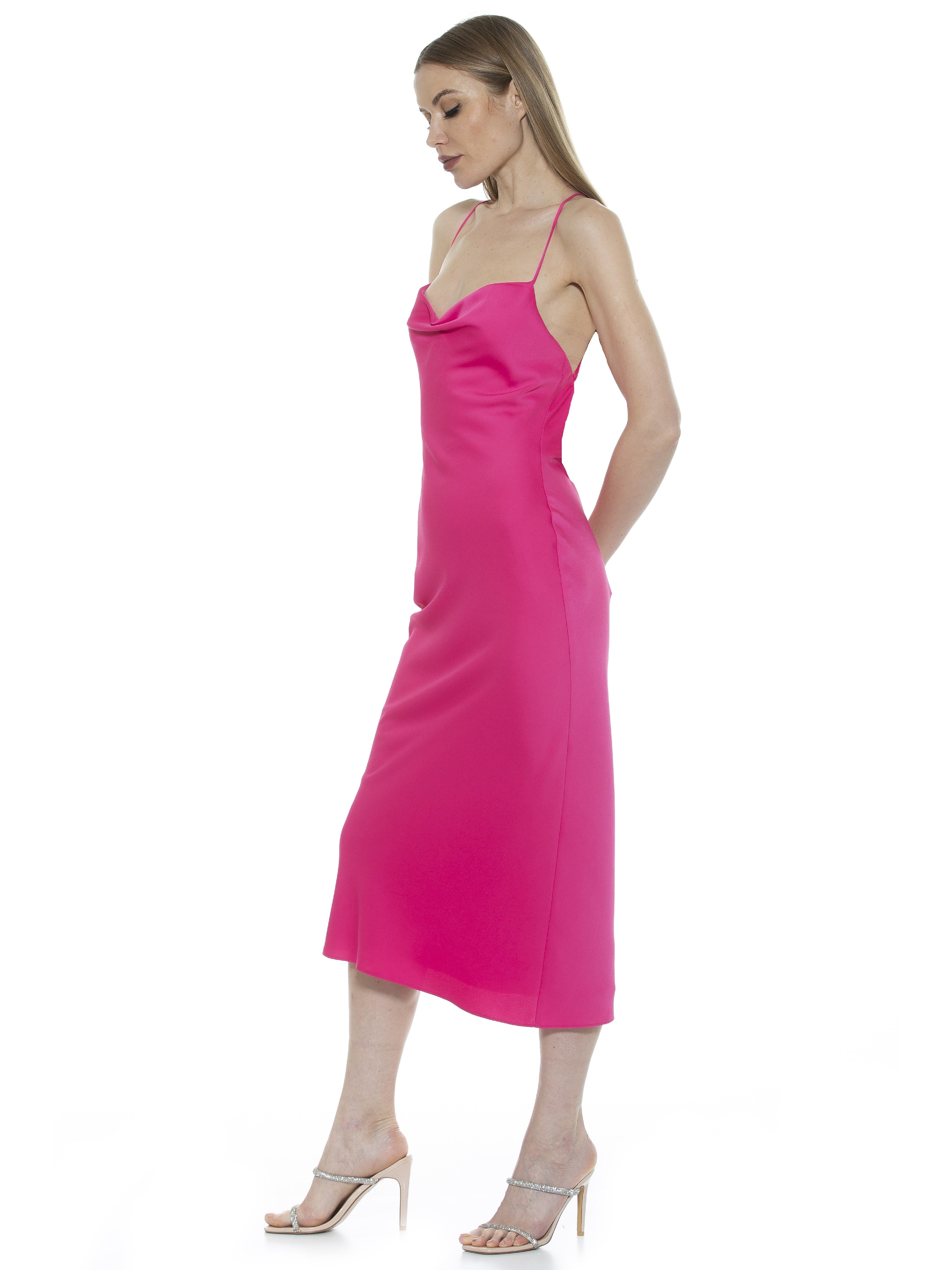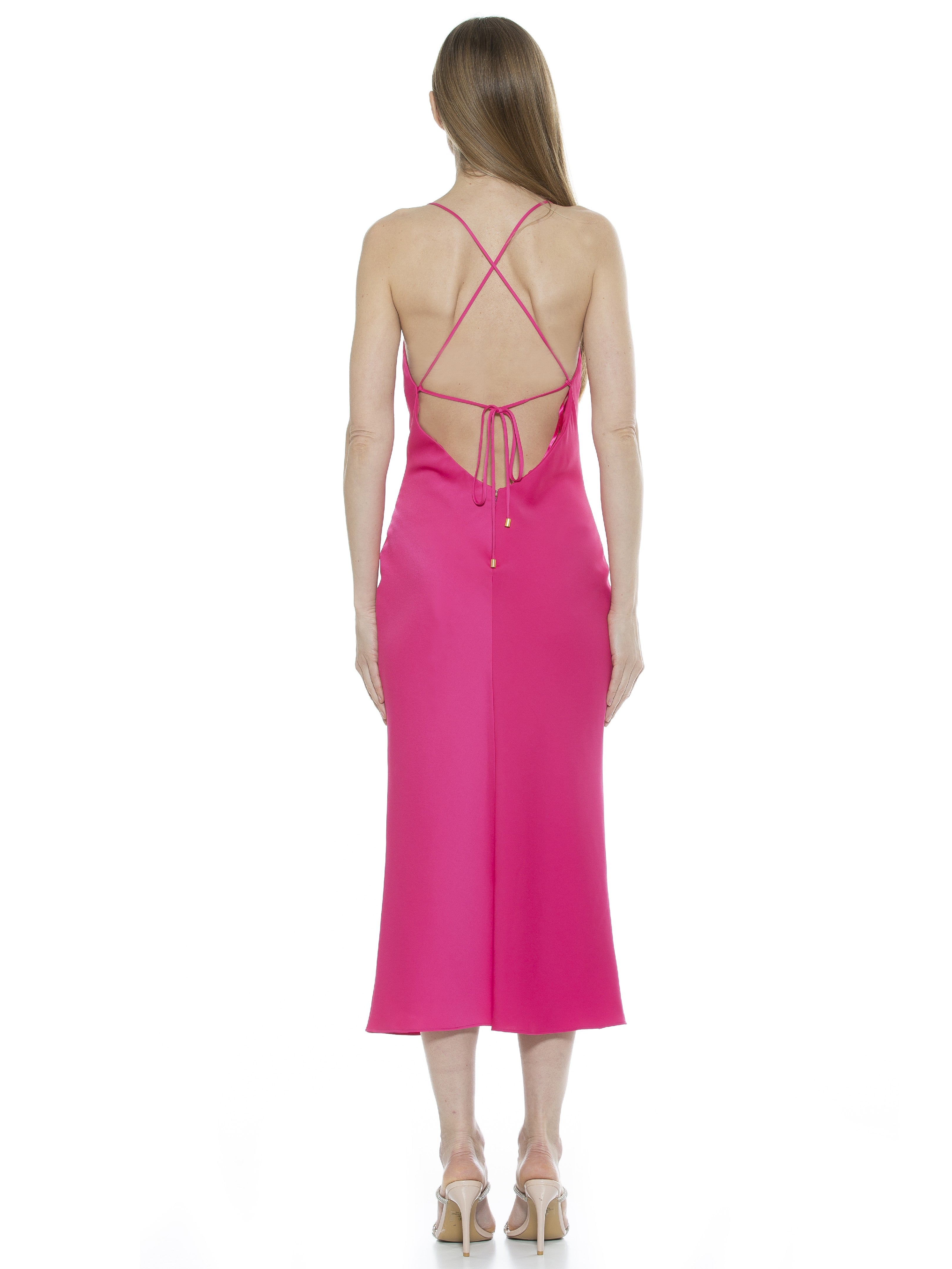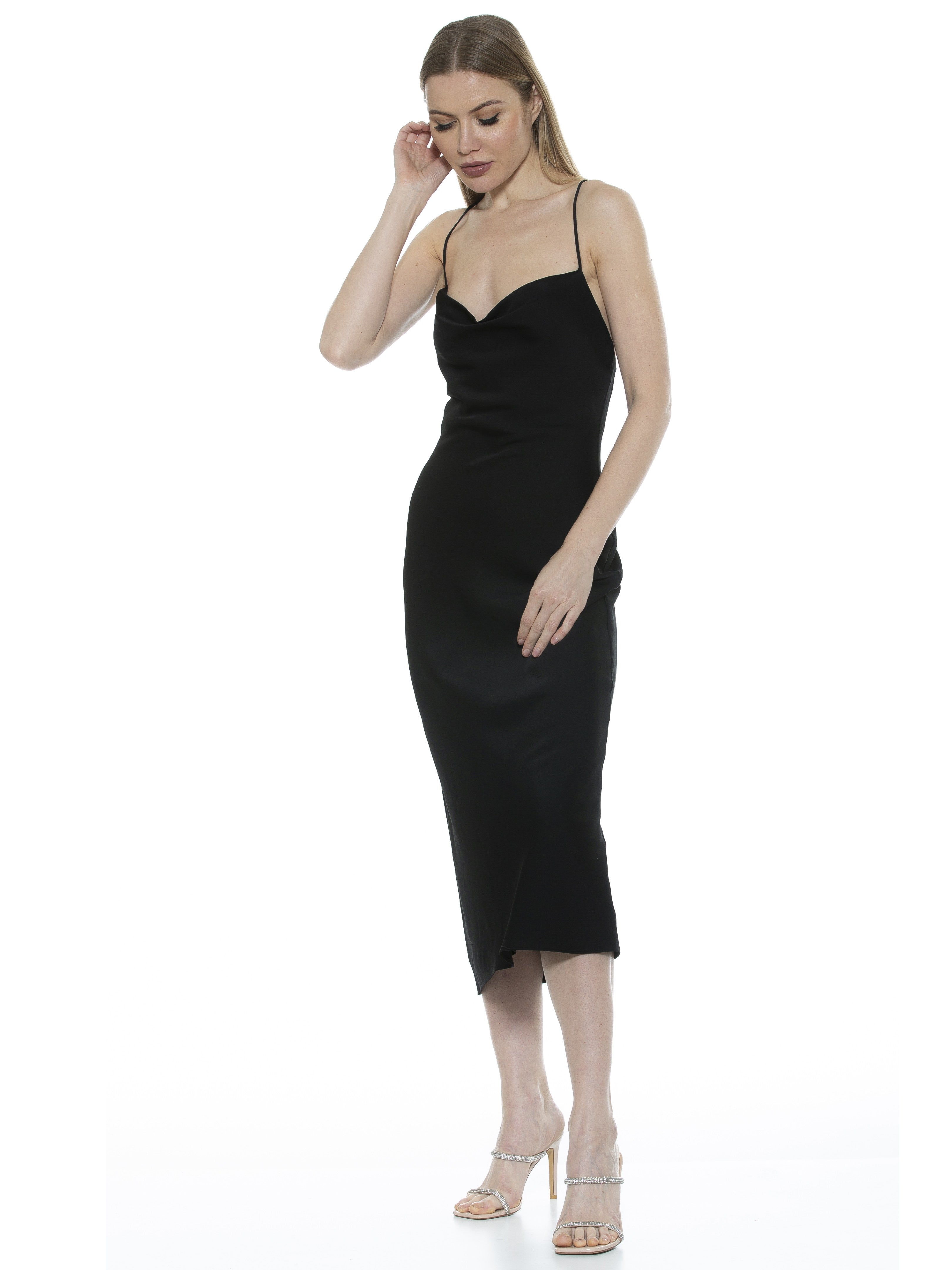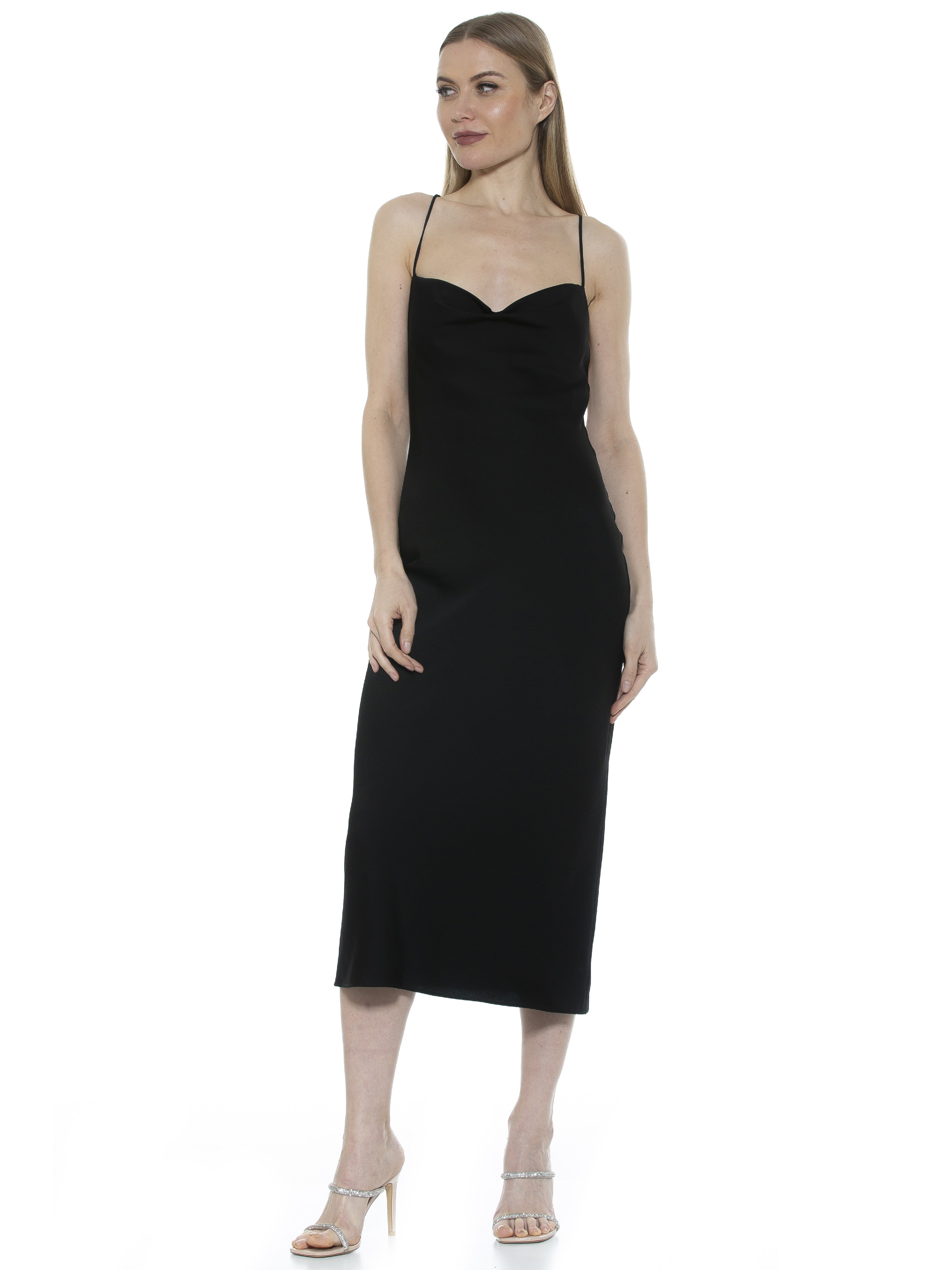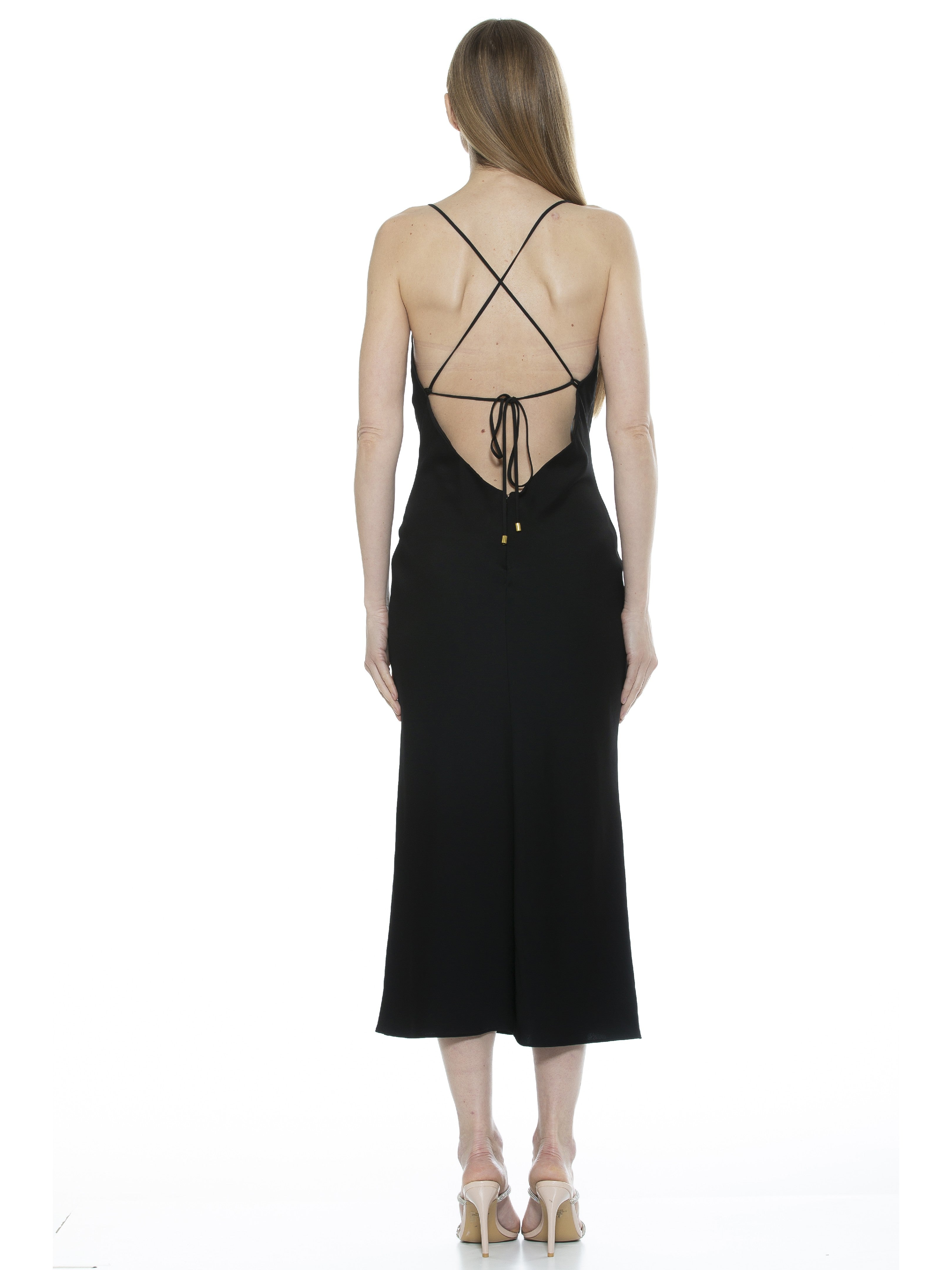 The Dionne dress is the perfect combination of sophistication and elegance. The sleek cowl neckline and sleeveless silhouette. The strappy back detail is the perfect finishing touch, adding a modern edge to this timeless classic.