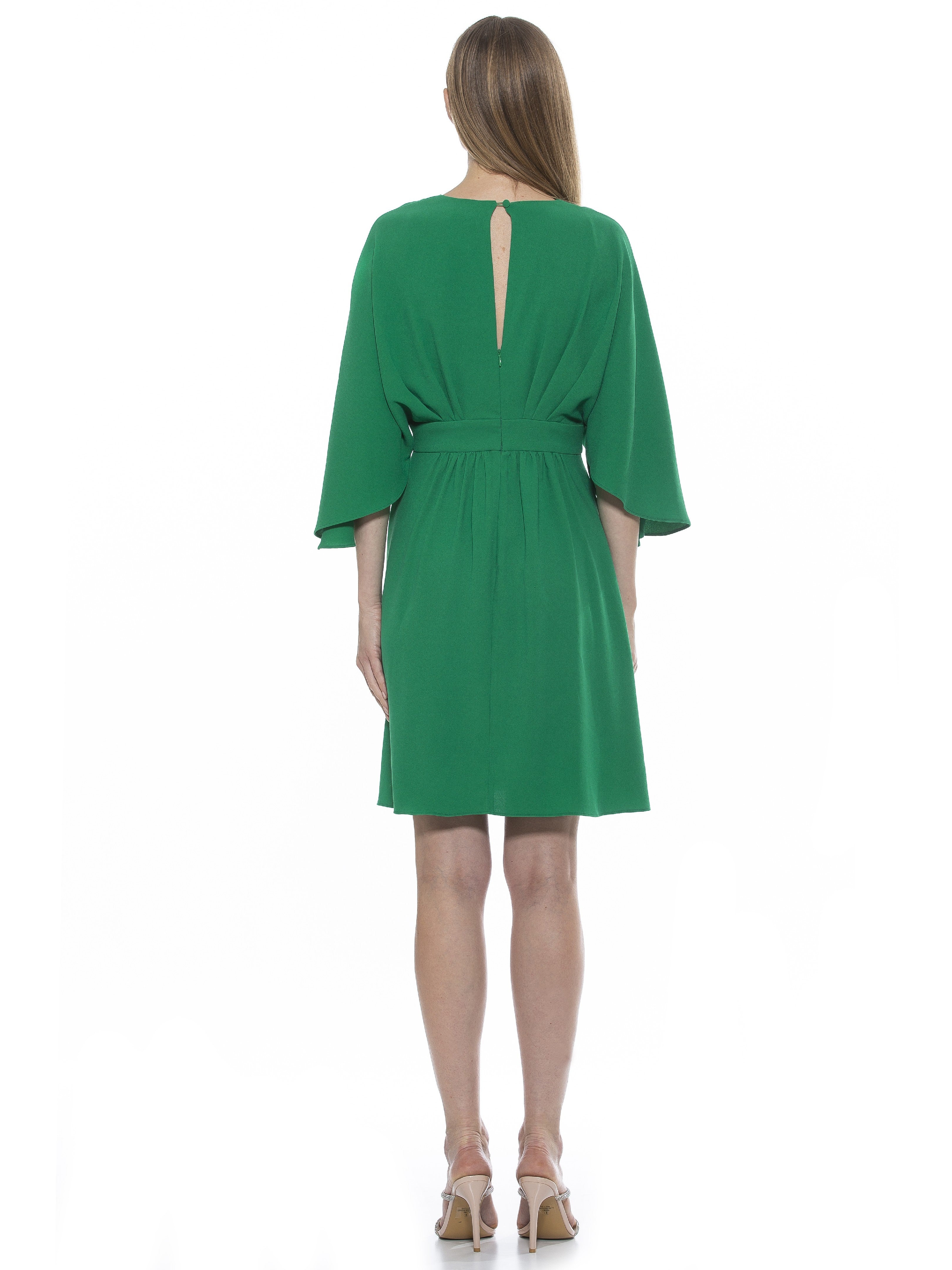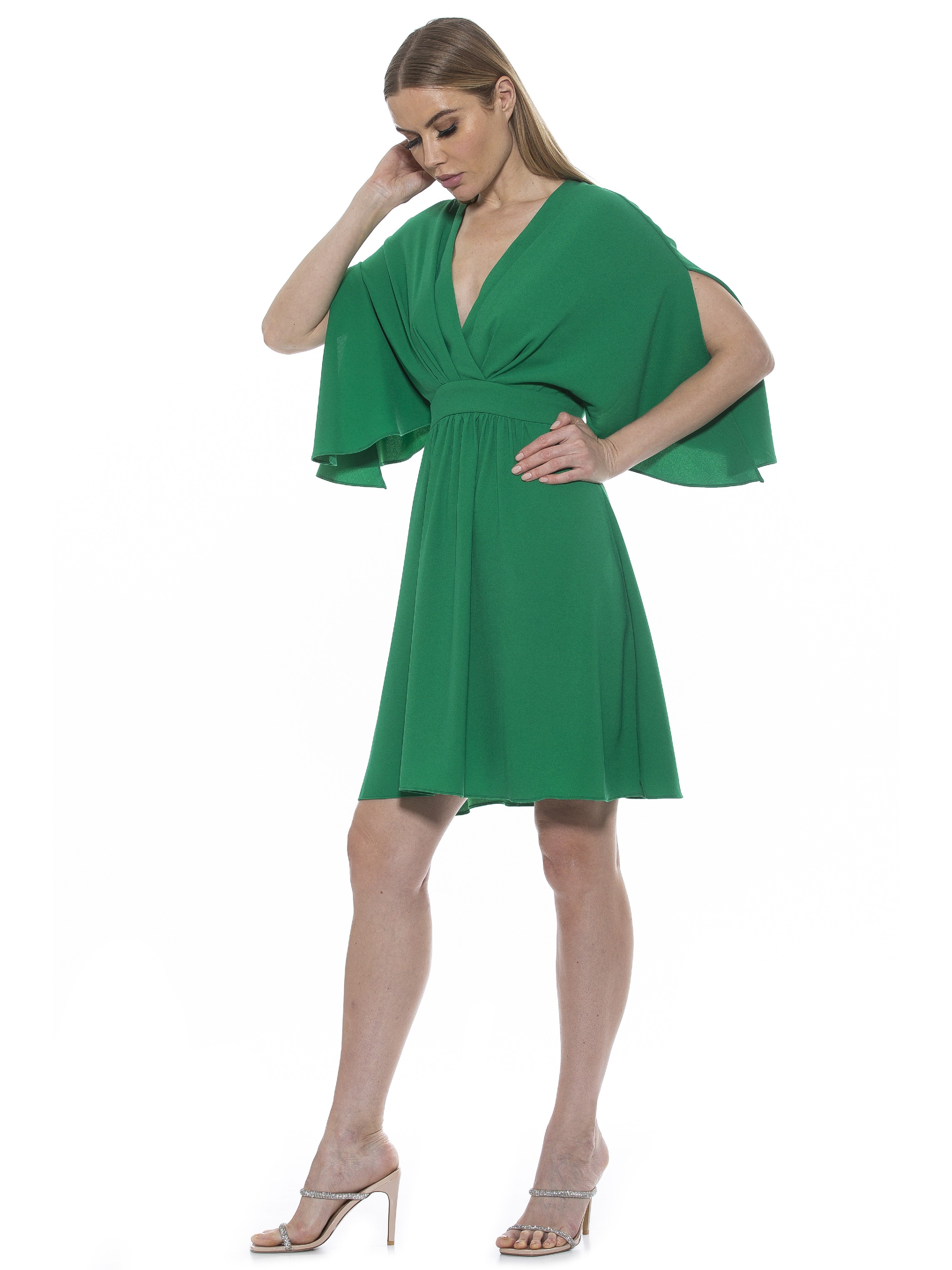 Go with the flow. The Isla is a flowy, mini dress with a v-neckline, 3/4 sleeve, and butterfly slit sleeves.