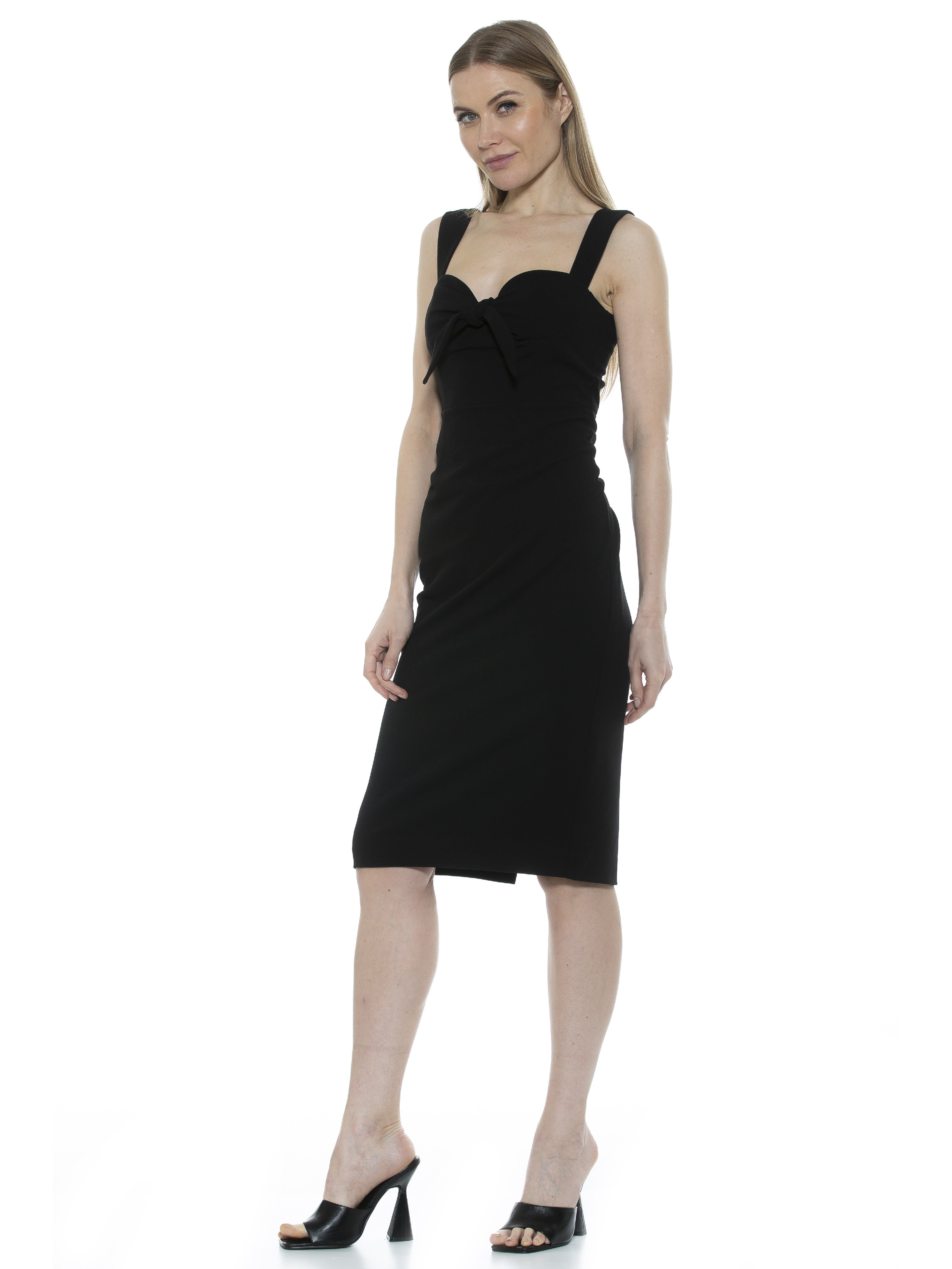 Turn heads in the Juniper Dress! This beautiful cocktail dress shows off your curves with a tie top and sweetheart neckline, while the sleeveless cut ensures you sparkle in the spotlight.