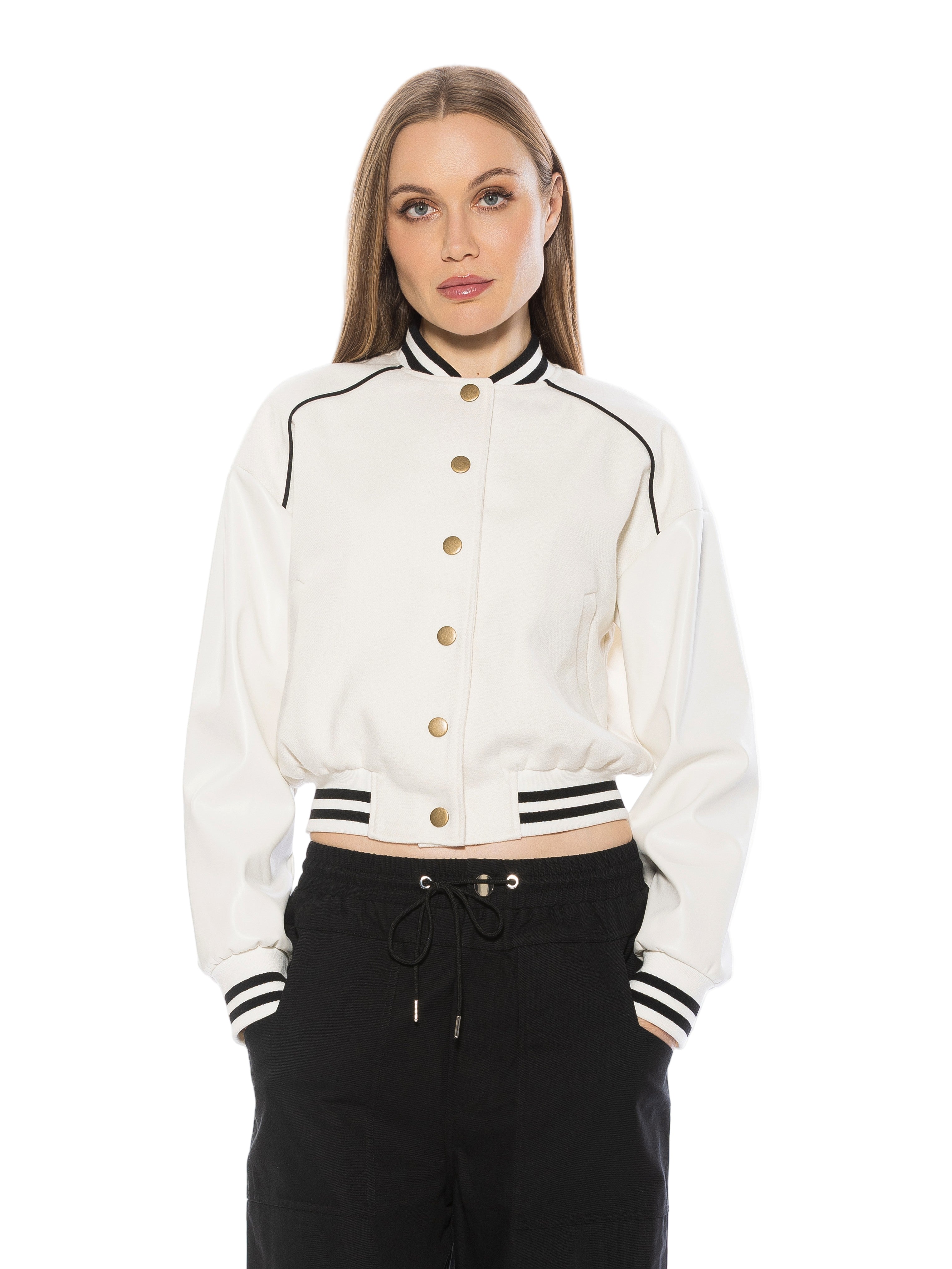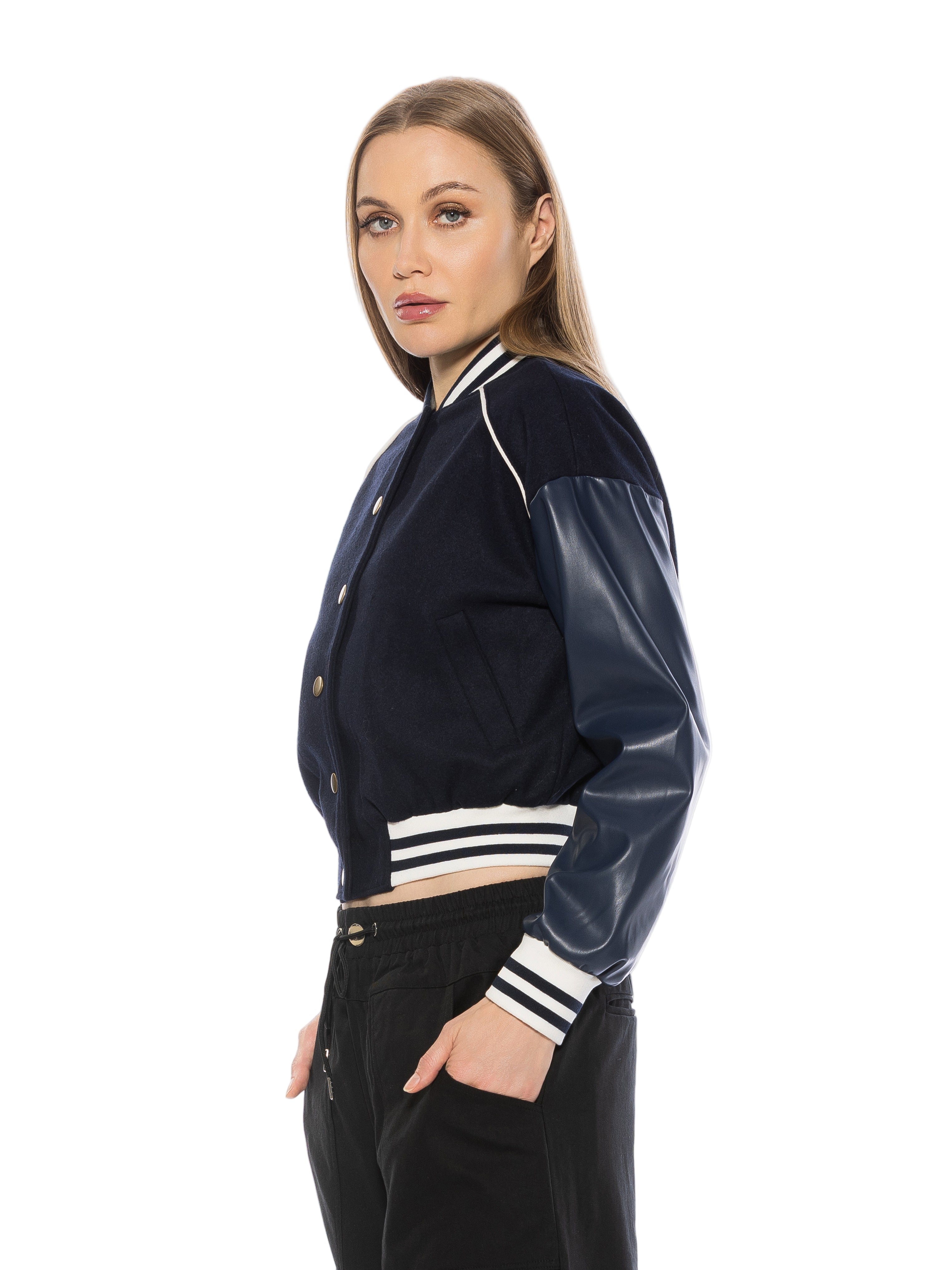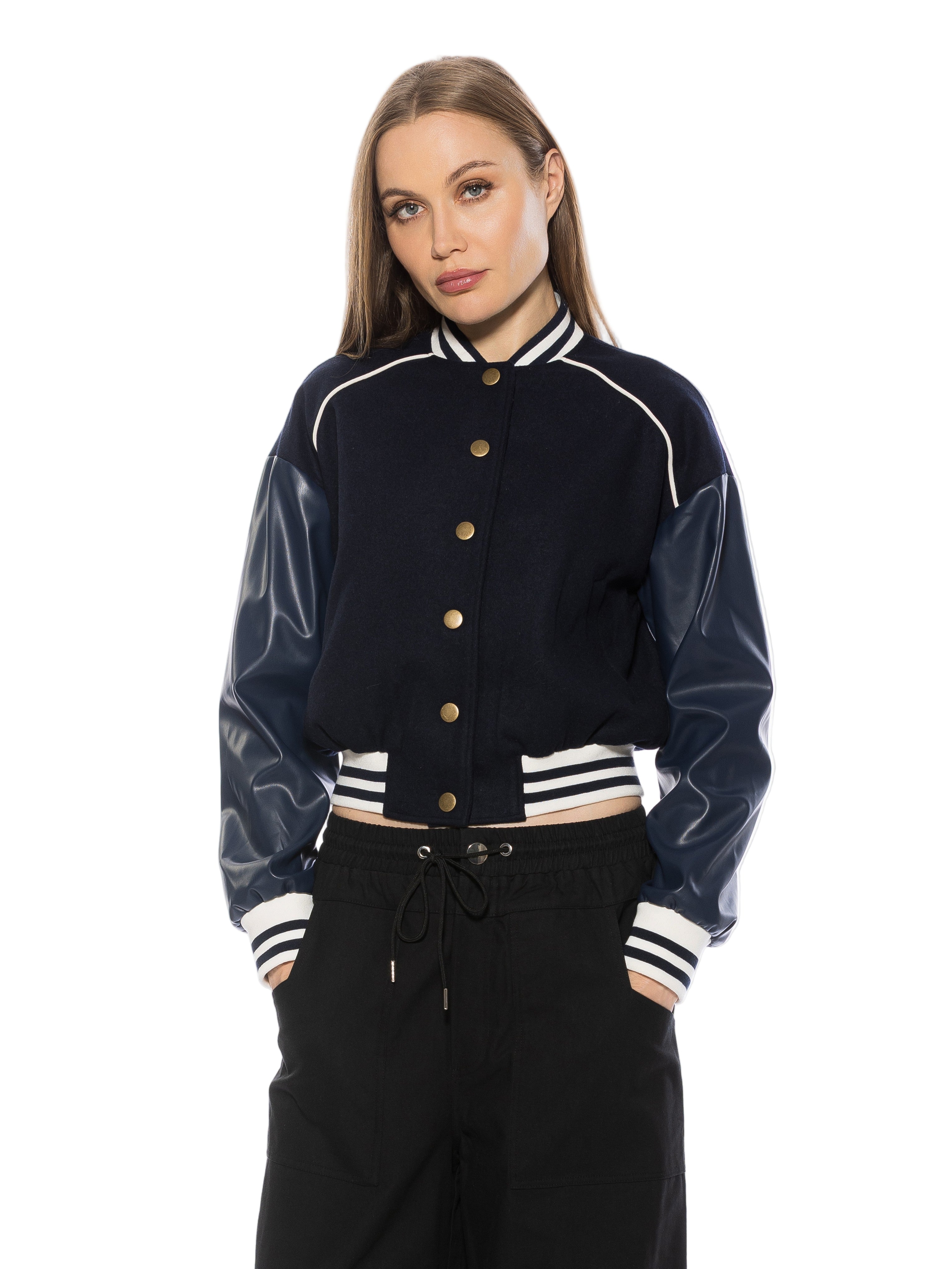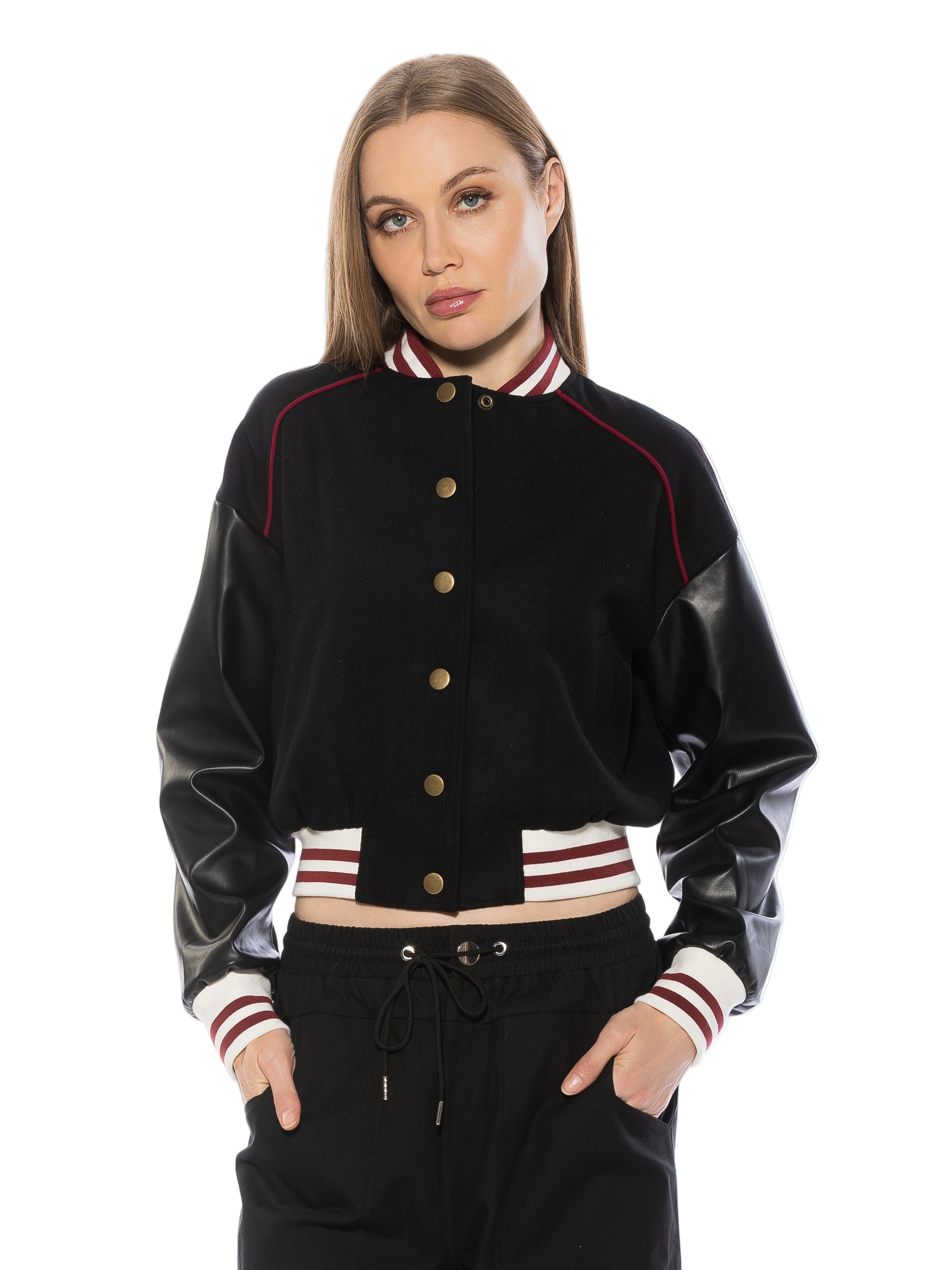 The Ciela Varsity Bomber Jacket With Lettering Detail Is A Must Have Piece. This Jacket Features Long Sleeves, Varsity Detail, And Ribbed Collar Detail. This Jacket Fits True To Size.