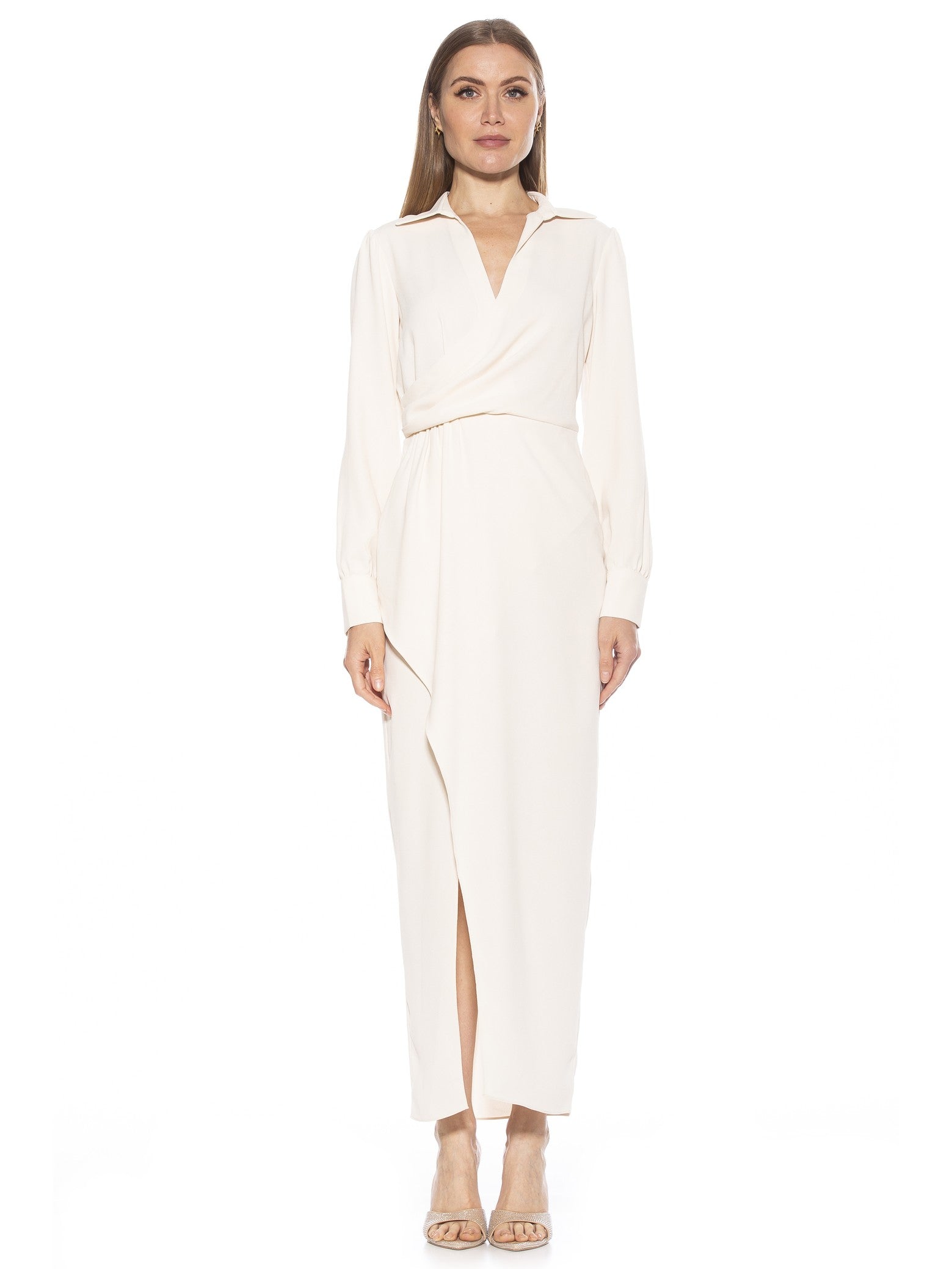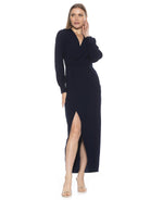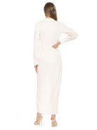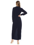 Indulge in luxury with our Diamond Dress. Featuring a draped collar, high slit, and long sleeves, this midi dress exudes sophistication. Perfect for any occasion, its elegant design will make you stand out in a sea of ordinary. Elevate your wardrobe and exude effortless style with our Diamond Dress.