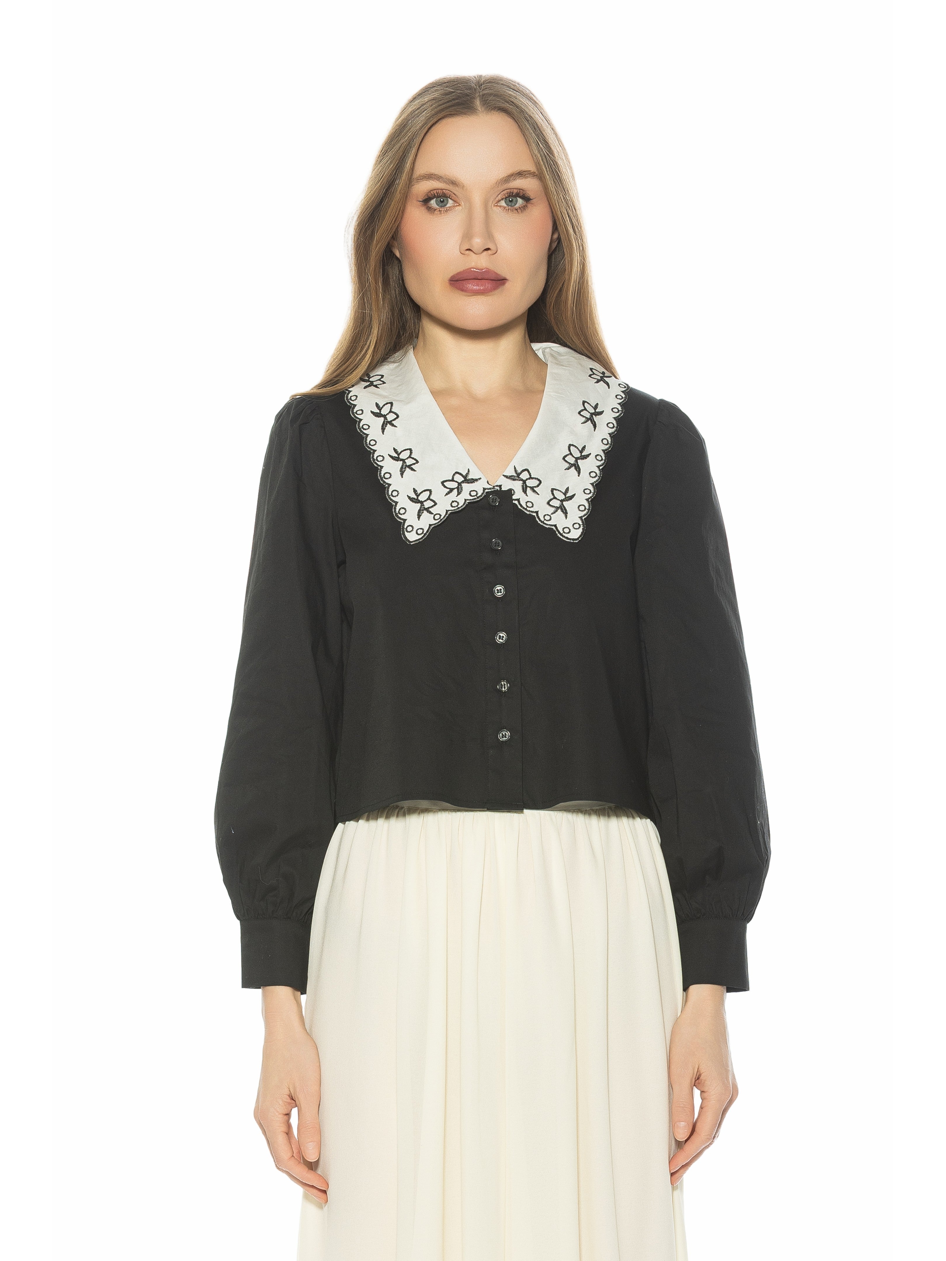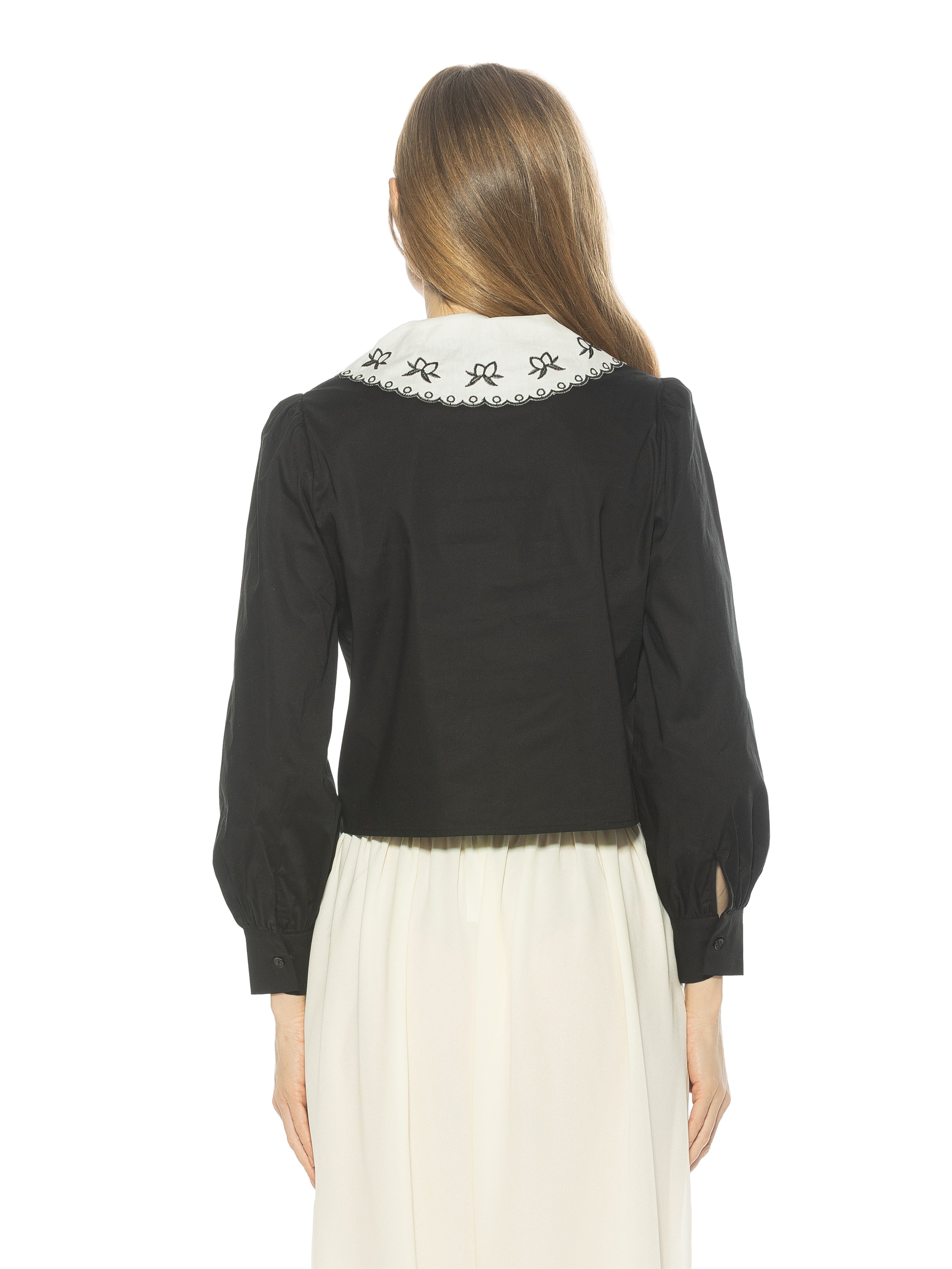 - Embroidered lace collar for a vintage-inspired, feminine finish