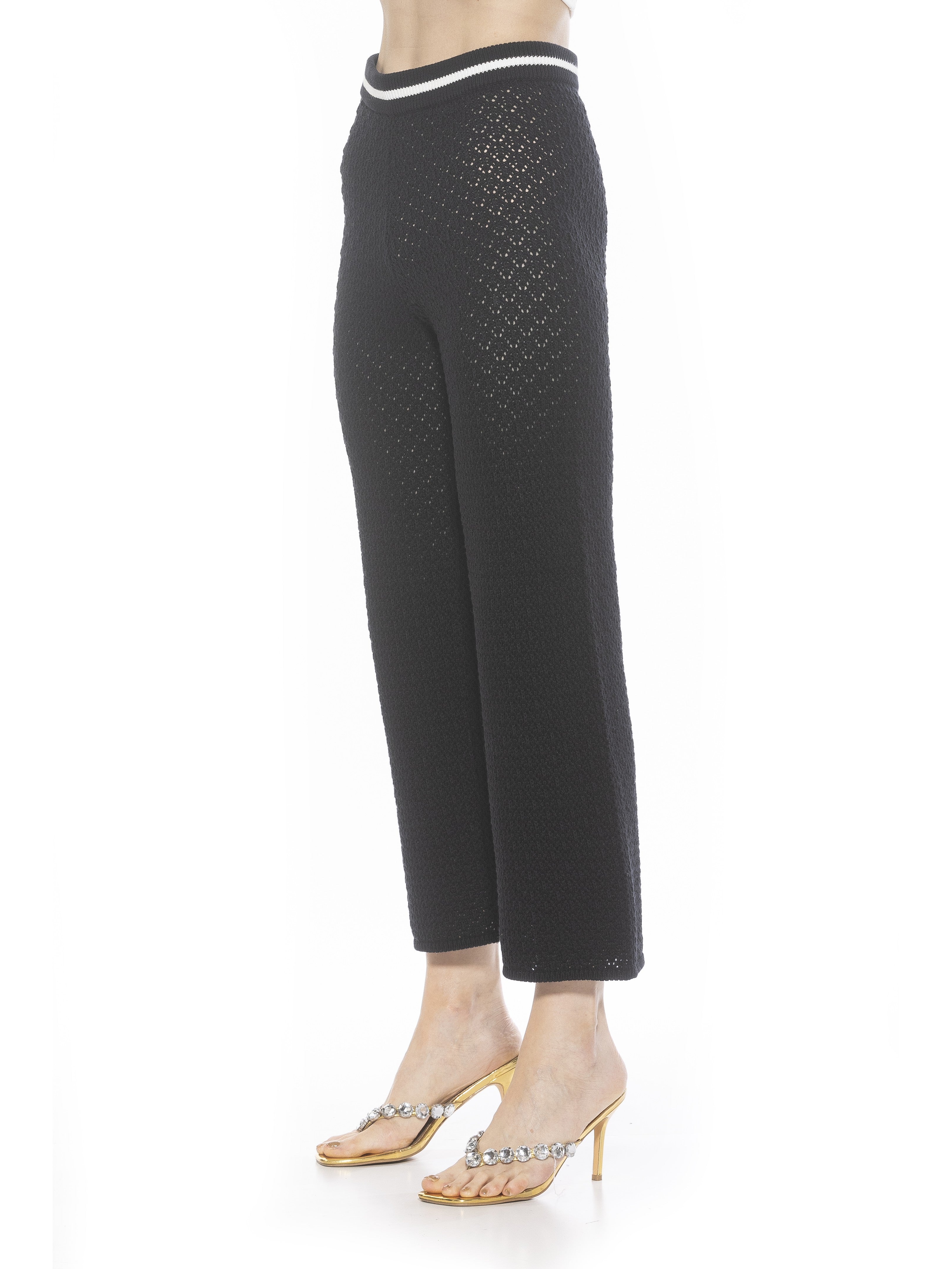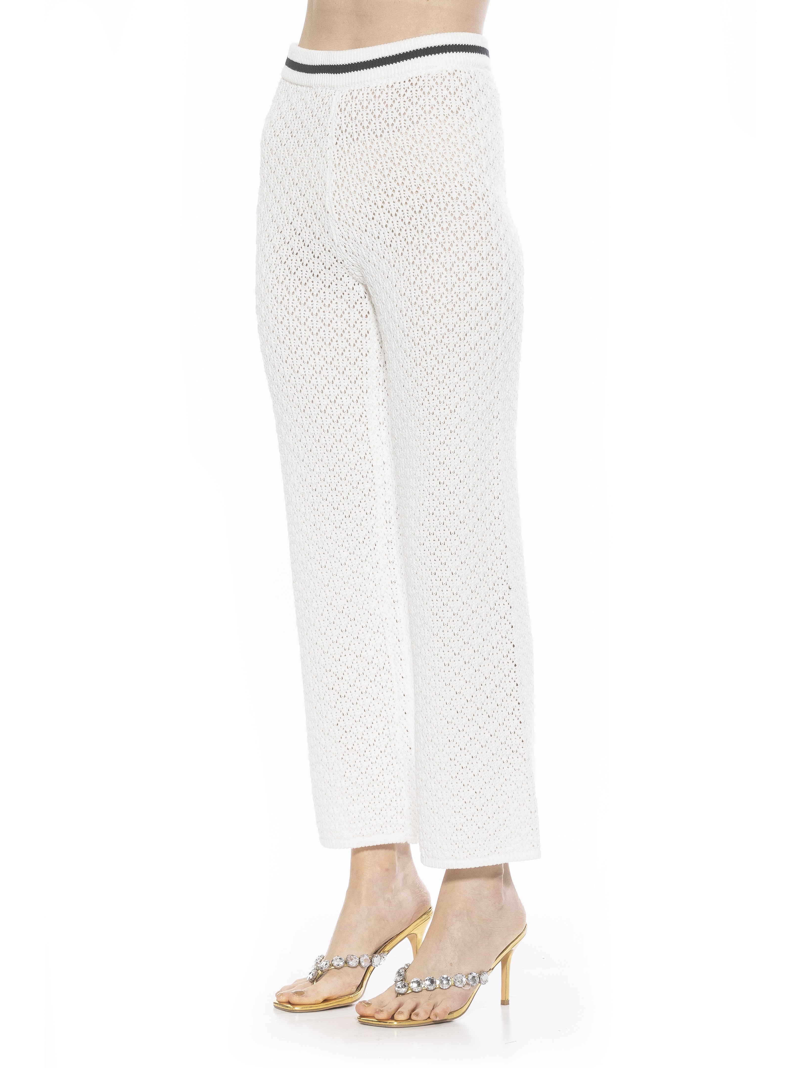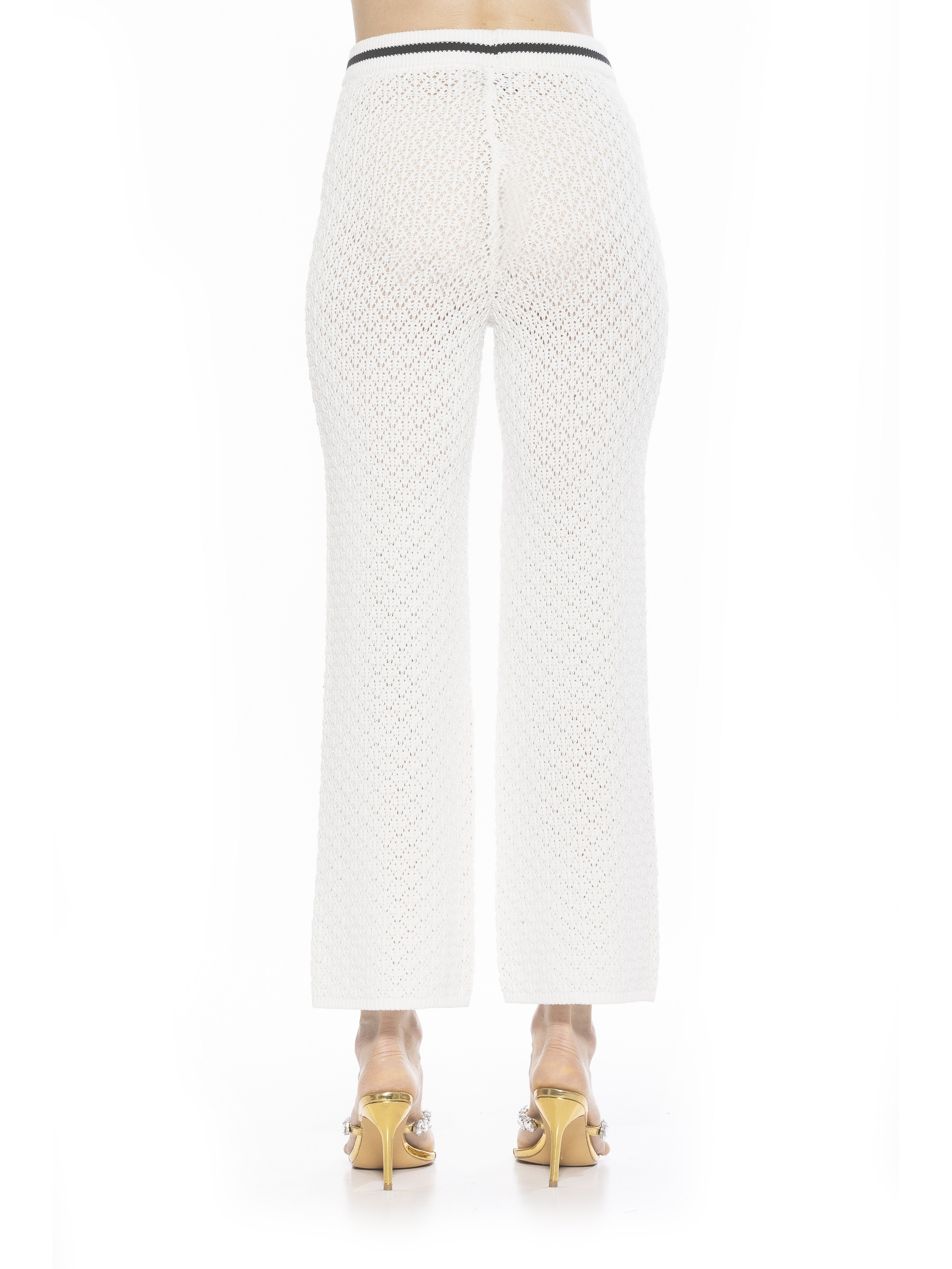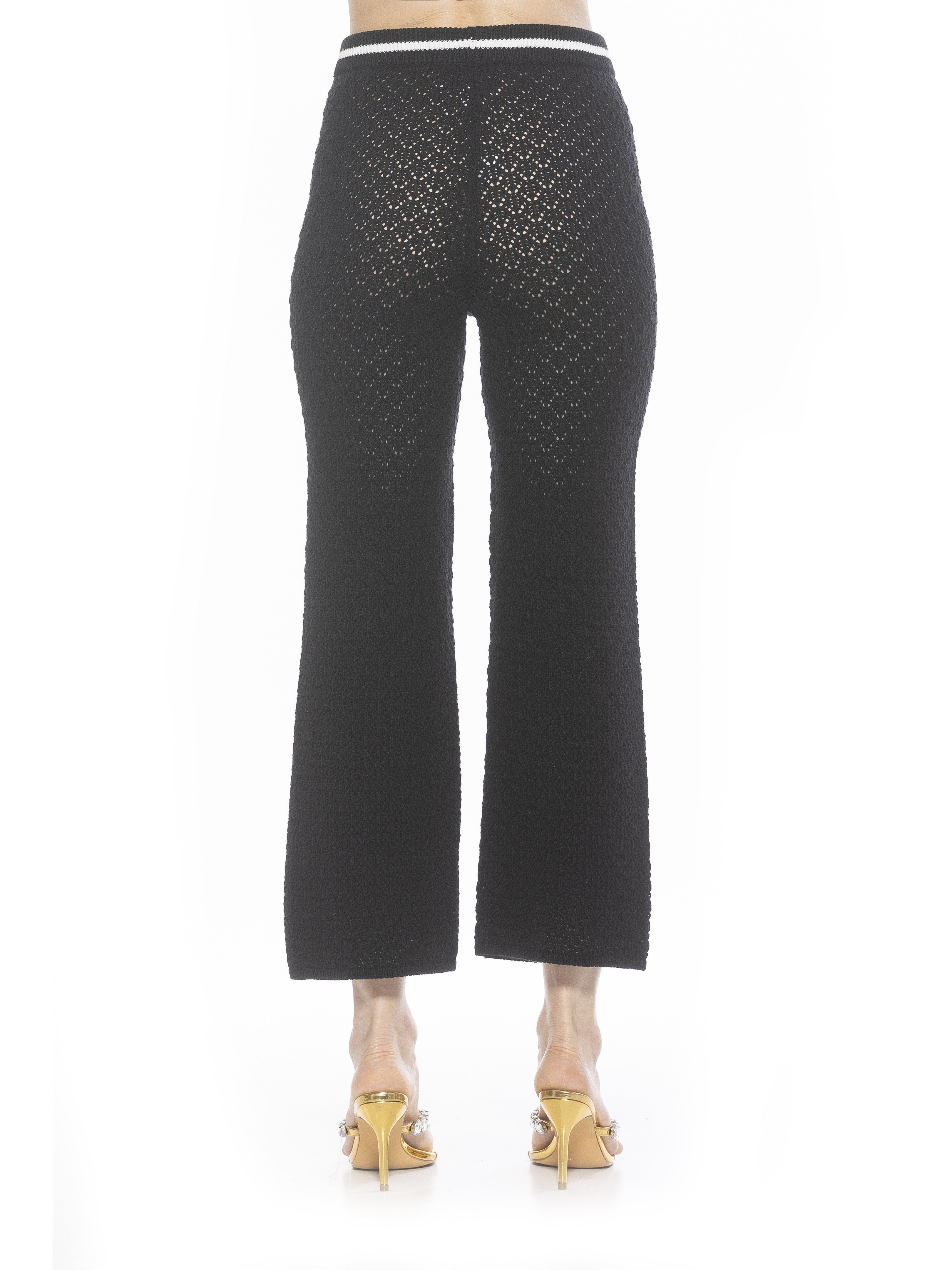 The Kora Wide Leg Knit Pant Is A Must Have For Your Closet. This Pant Features Luxe Crochet Knit Detailing, Striped Waistband Detail, And Stretch Waistband. This Pant Fits True To Size.