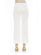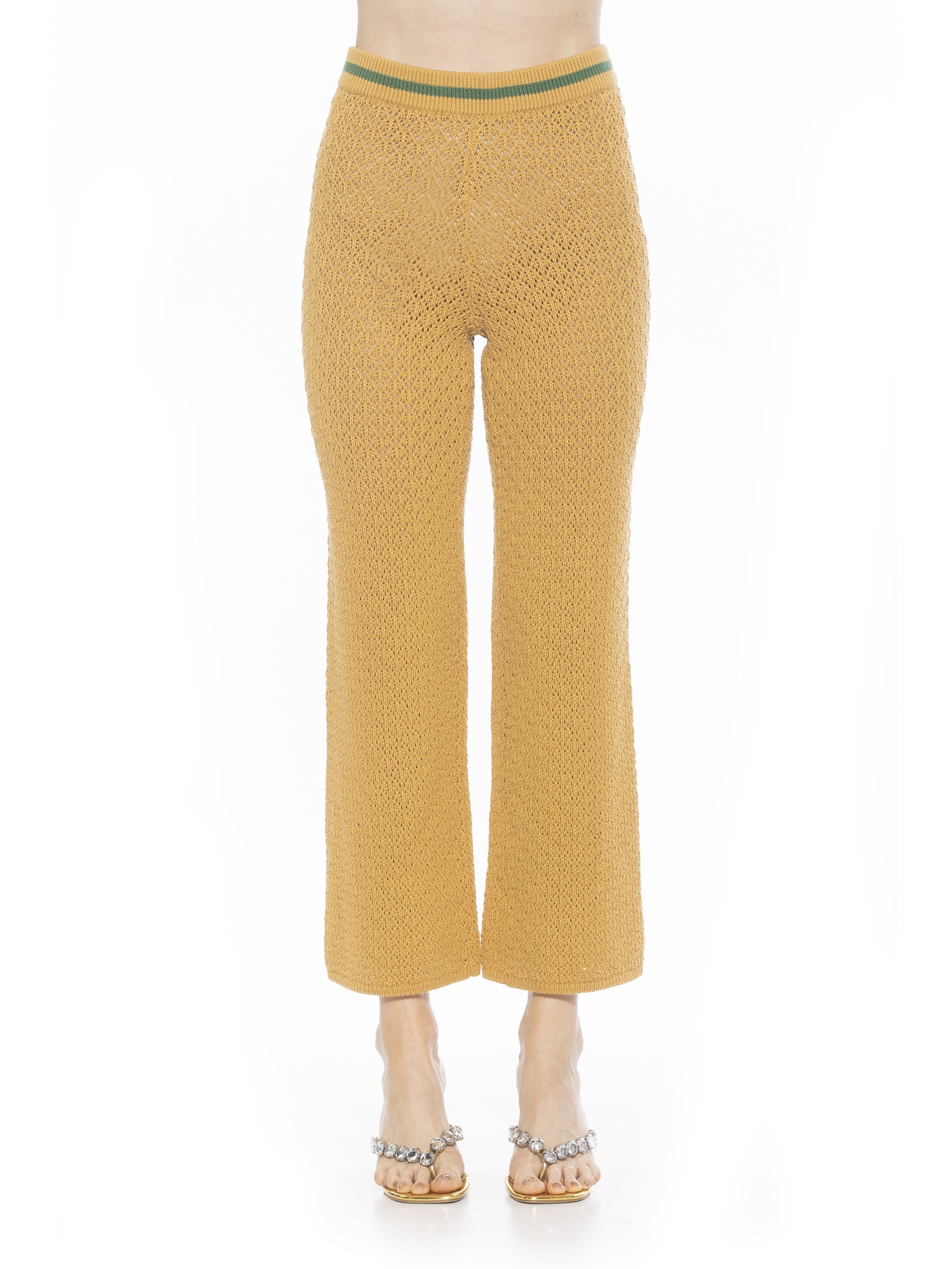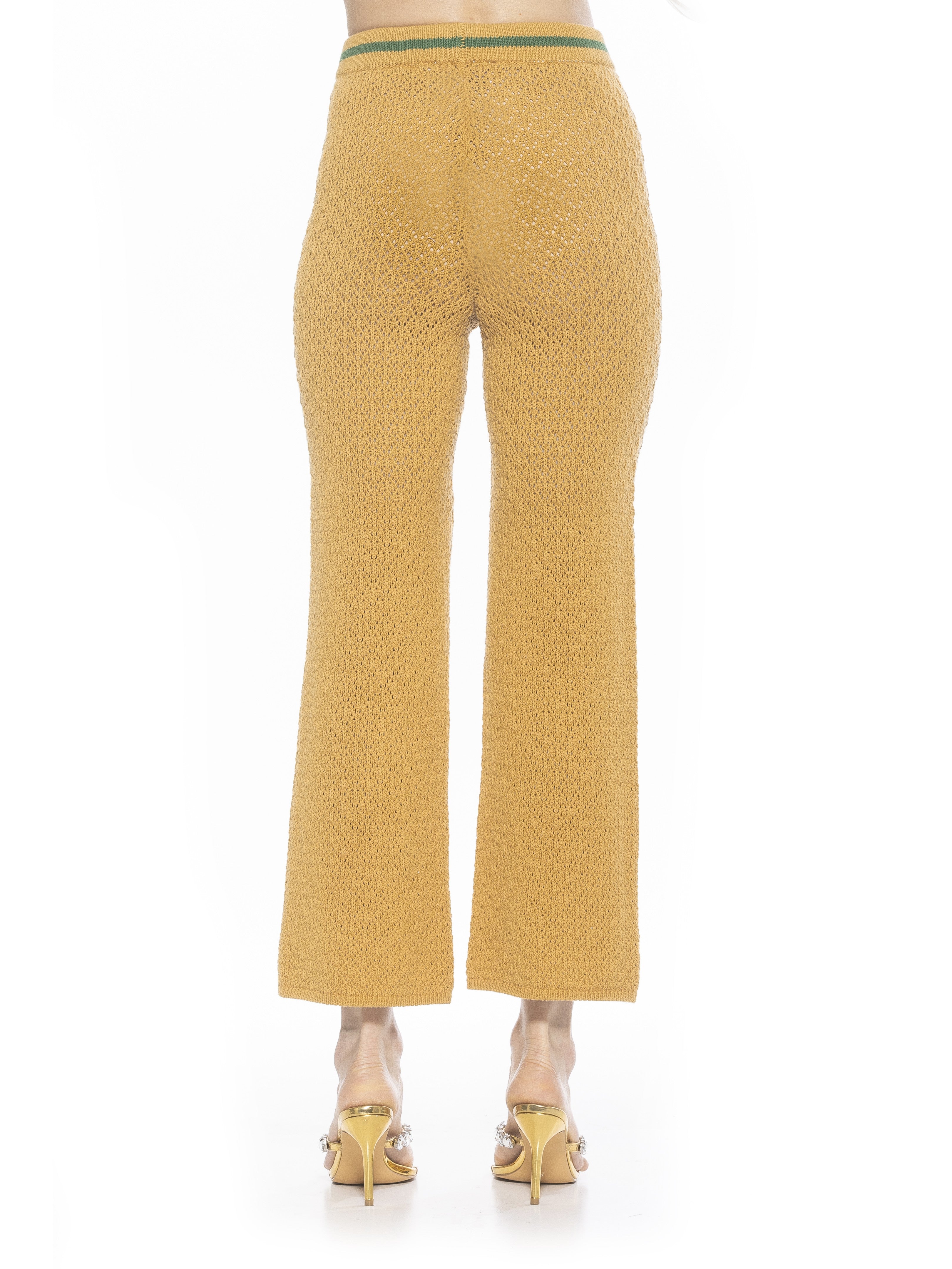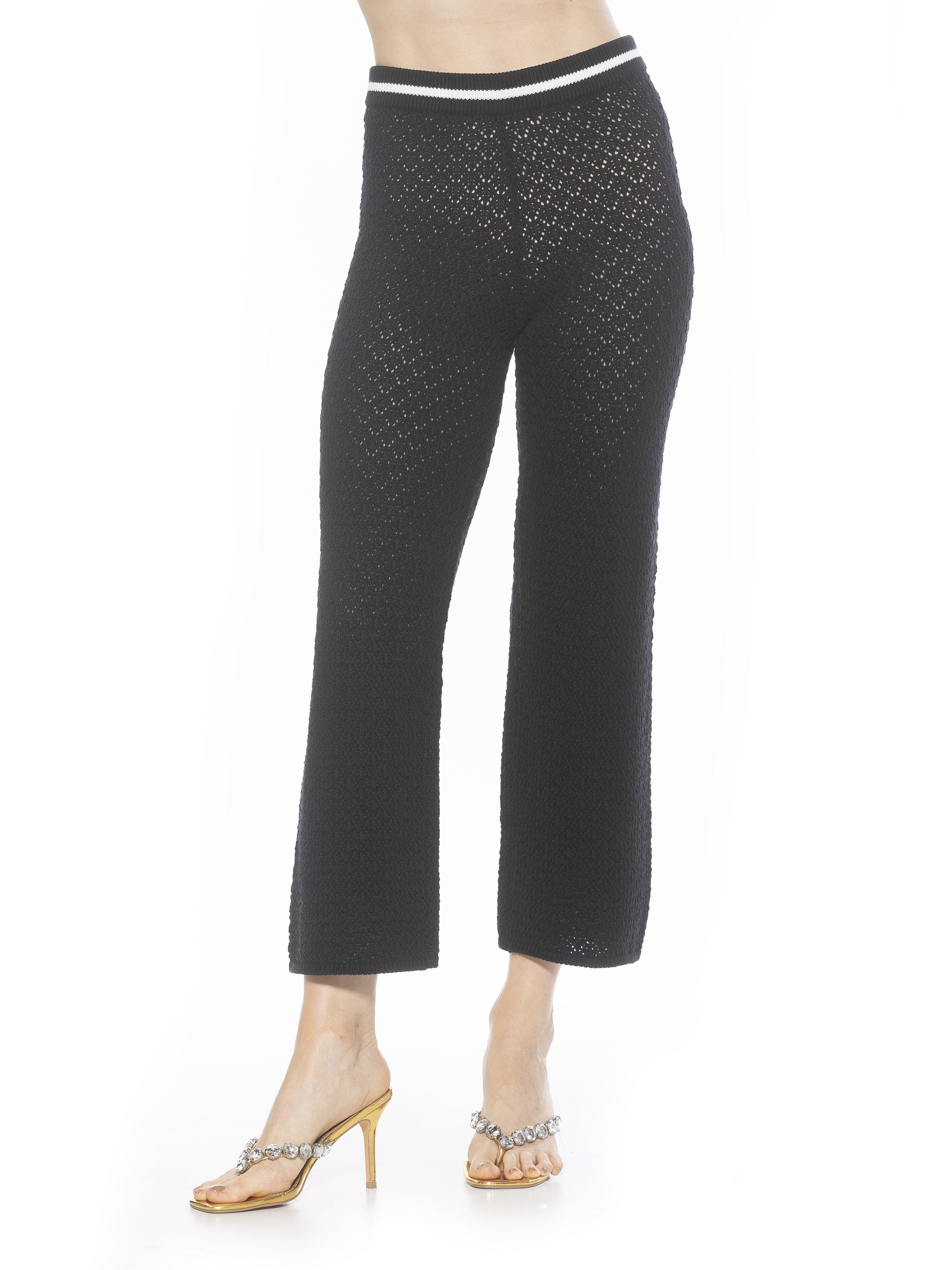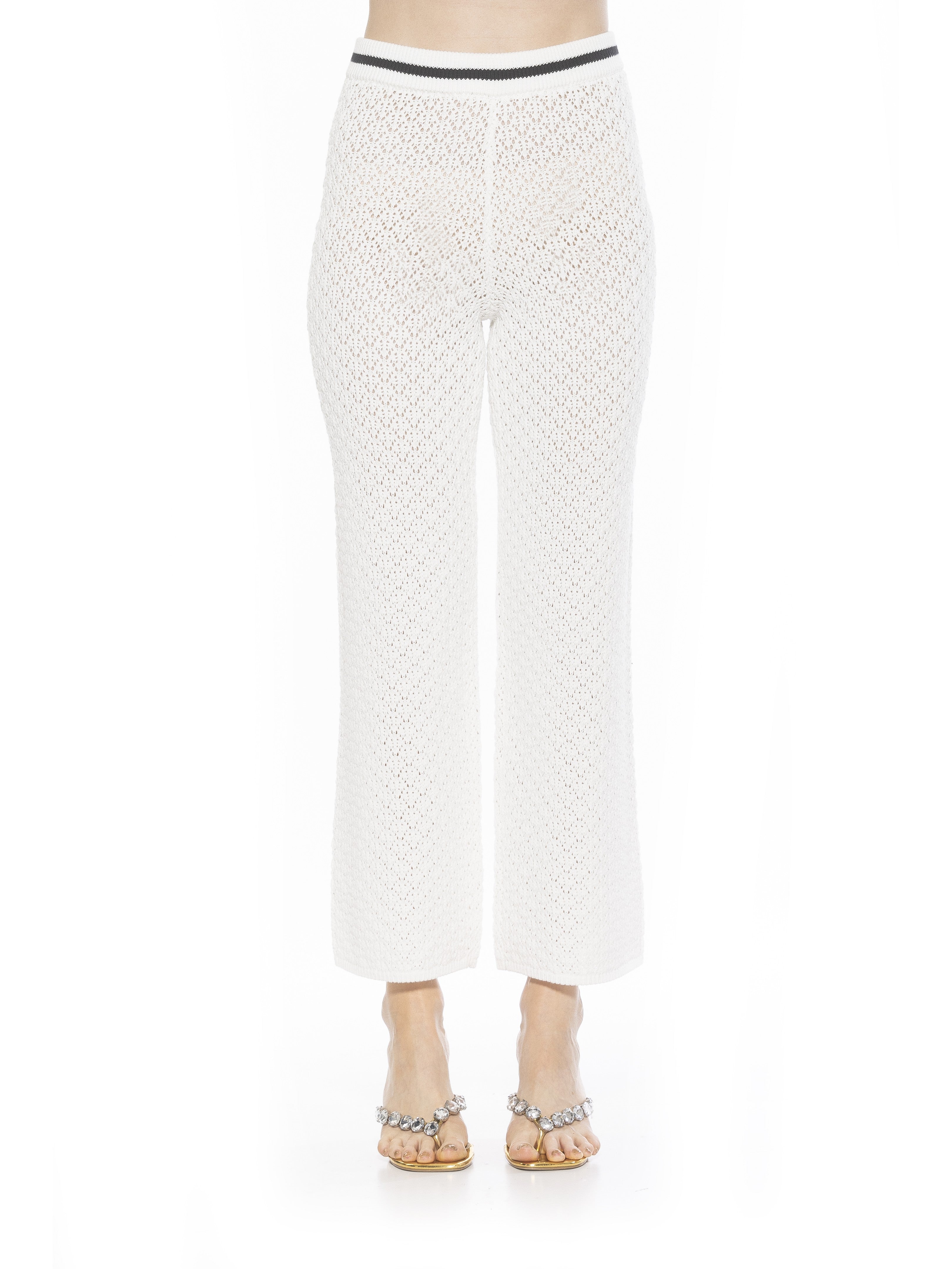 The Kora Wide Leg Knit Pant Is A Must Have For Your Closet. This Pant Features Luxe Crochet Knit Detailing, Striped Waistband Detail, And Stretch Waistband. This Pant Fits True To Size.