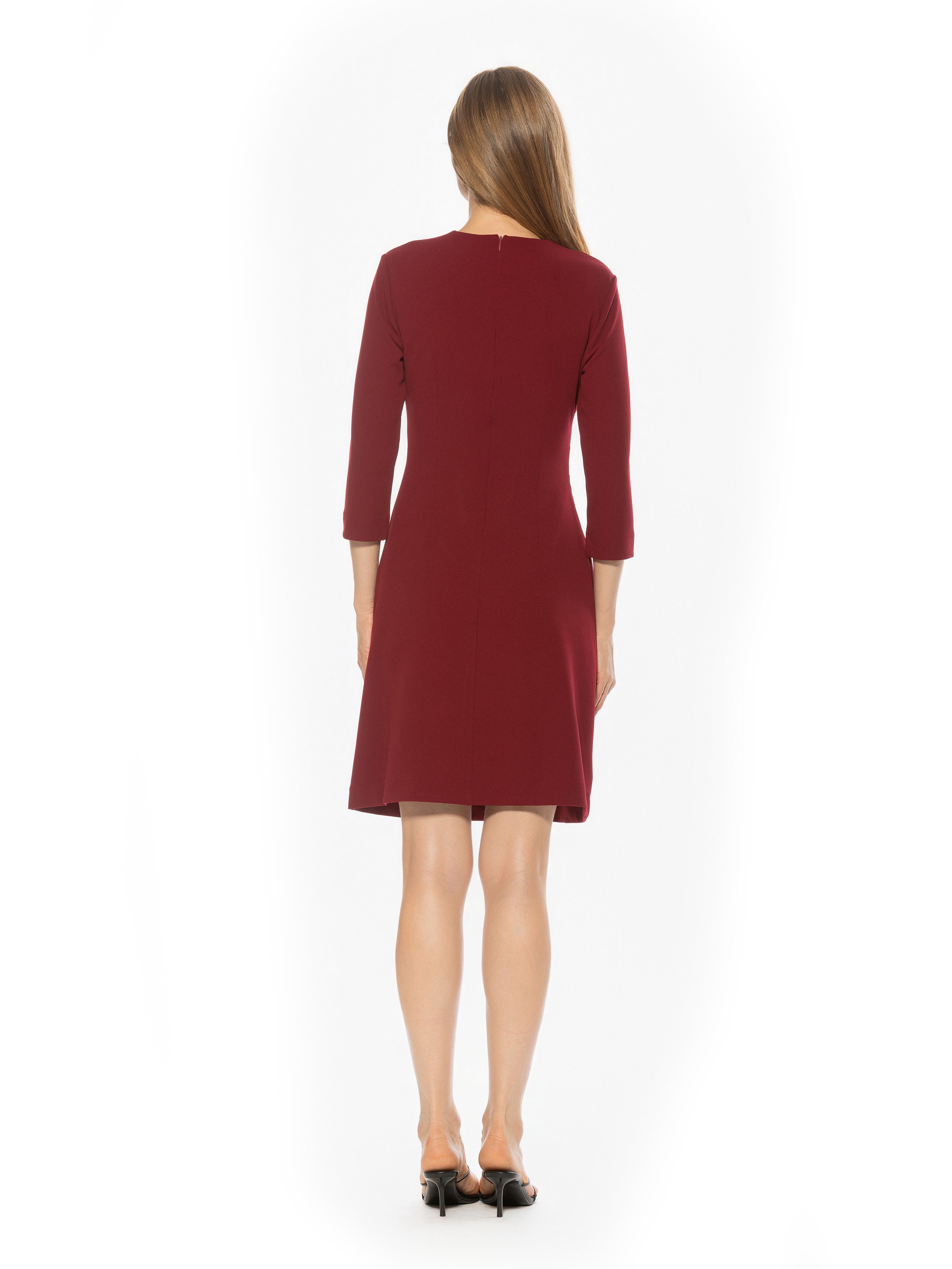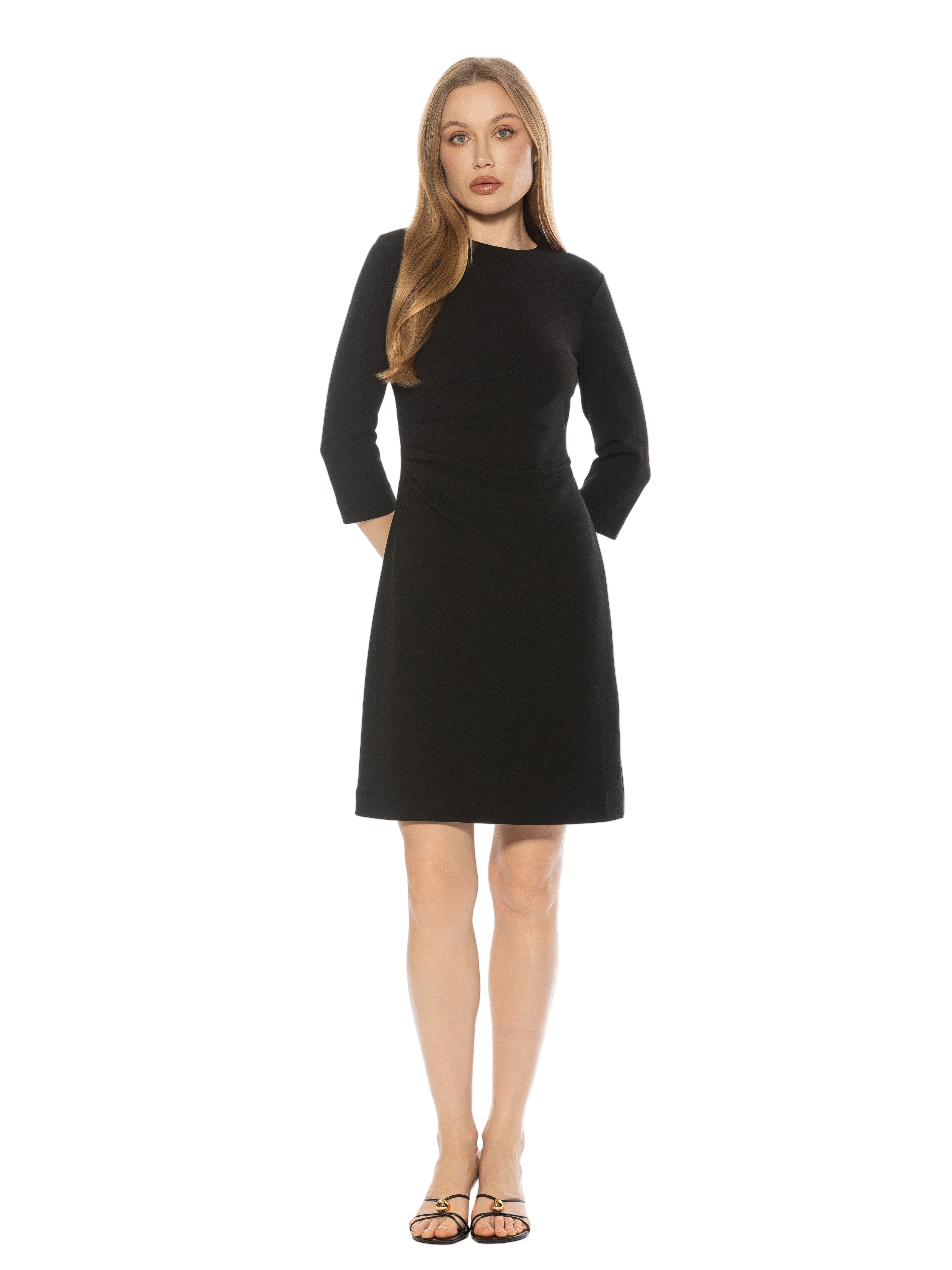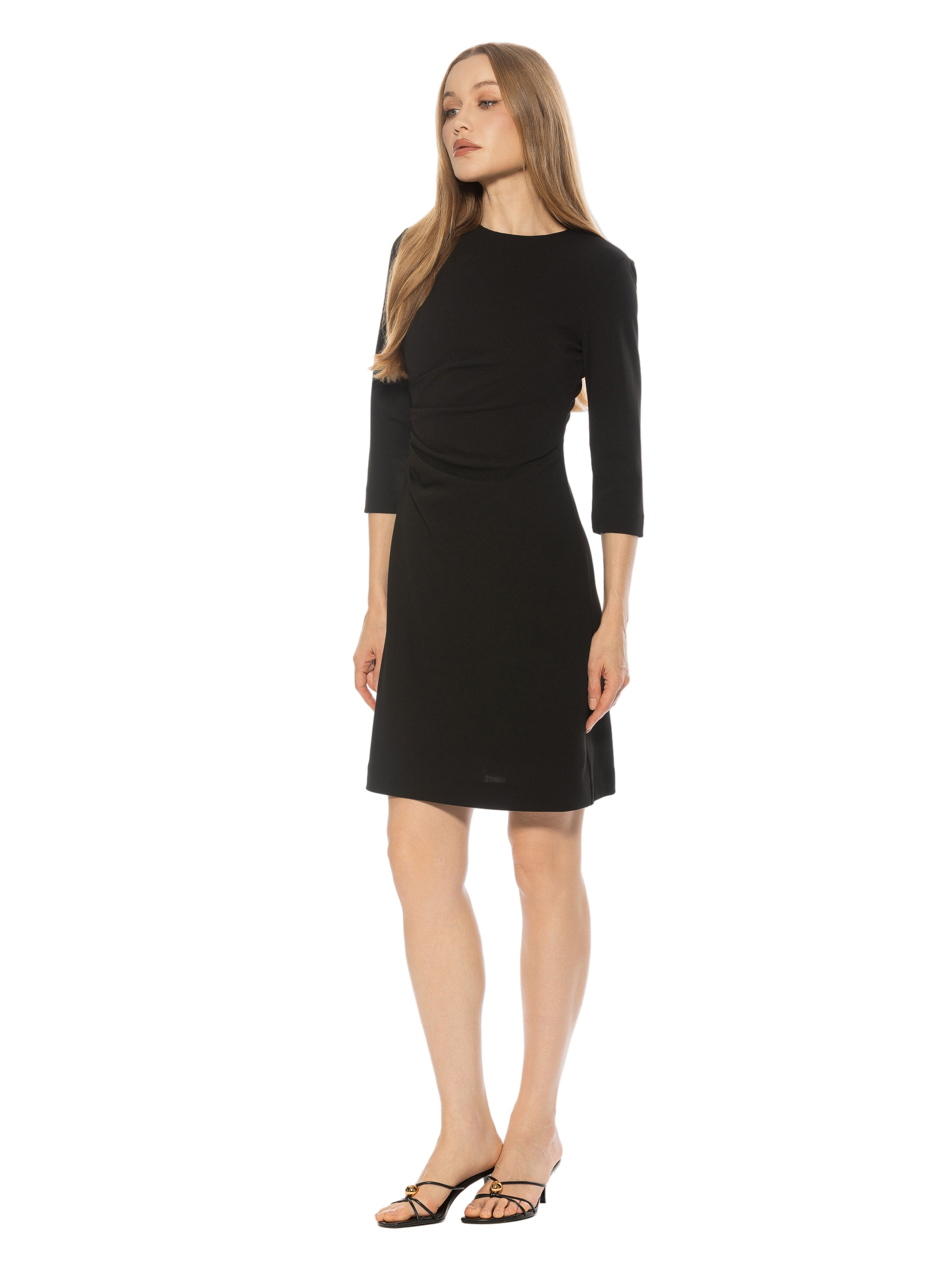 The Rio Crewneck Ruched Shift Dress With 3/4” Sleeve Detail Is A Must Have Staple For Your Closet. This Dress Features 3/4" Sleeves, Crewneck Neckline, Pleated Detail At Waist, And Luxe Stretch Fabric. This Item Fits True To Size.