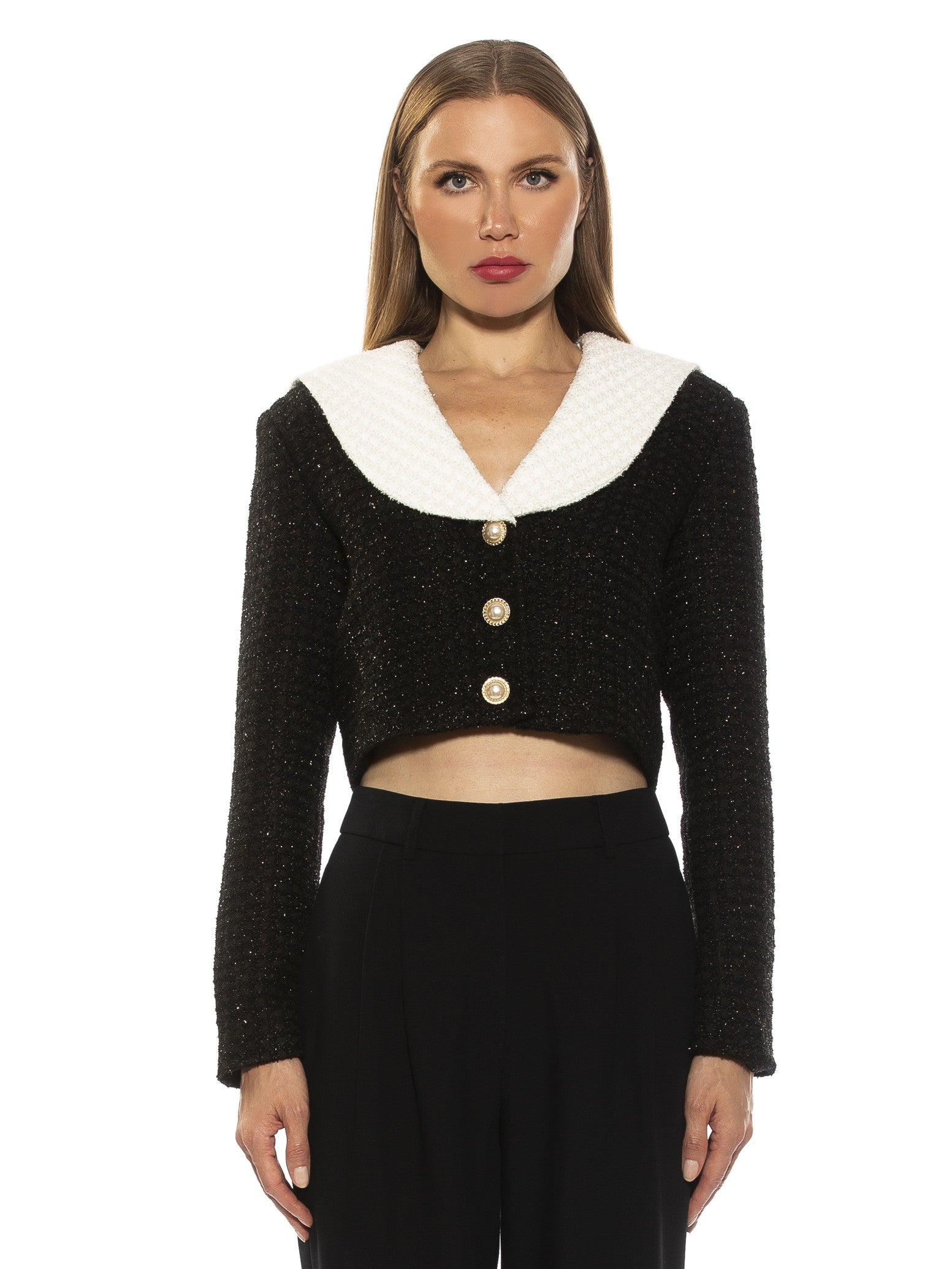 Introducing the Clementine Jacket, a timeless classic crafted with pearl buttons, a cropped silhouette, and a contrasting collar, and detailed with a retro-inspired collar. Wrap yourself in luxurious tweed and elevate your style with this elegant, sophisticated, and exclusive long-sleeved jacket.