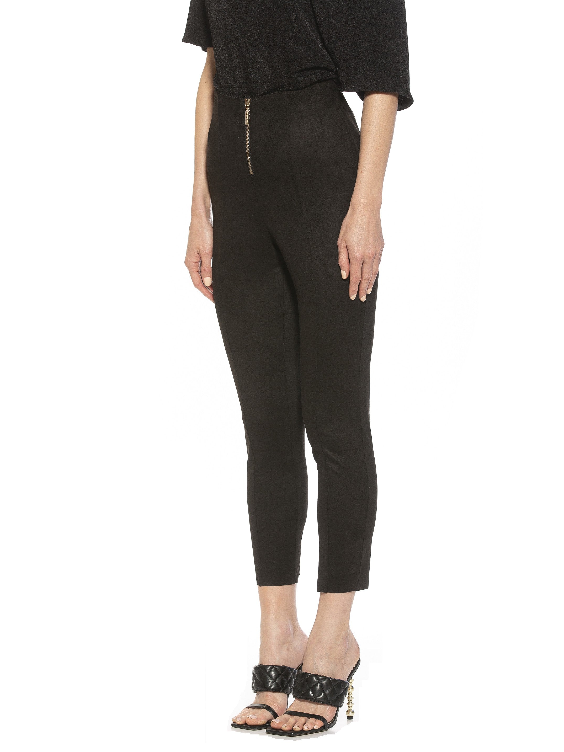 Indulge in the Suede Pants, designed to hug your curves in all the right places. Crafted from a luxurious faux suede material, these mid-rise pants flatter the figure with a high waisted fit and skinny leg for timeless elegance. Fastened with an exposed zip closure, these timeless pants bring a touch of stylish sophistication to your wardrobe.