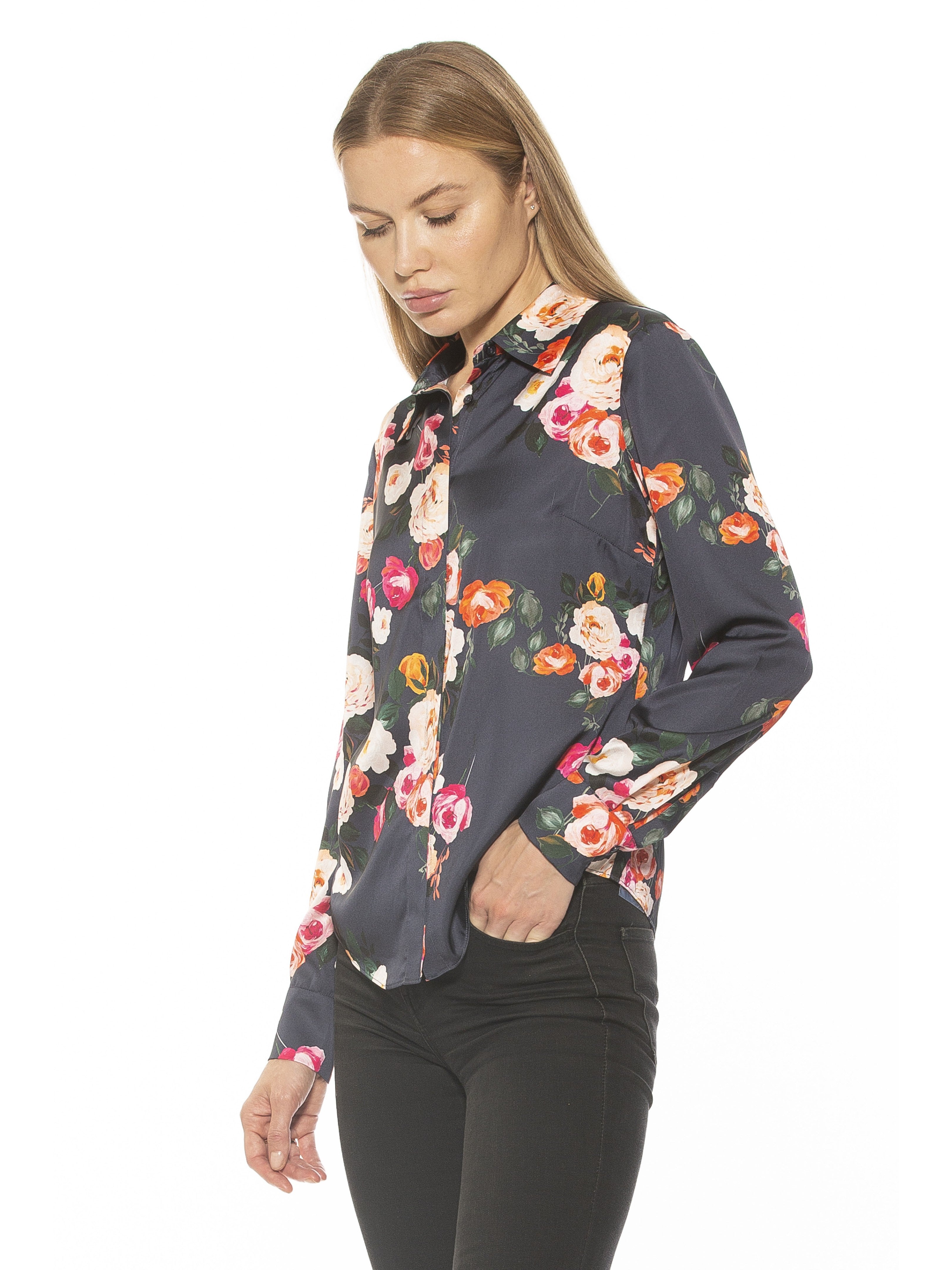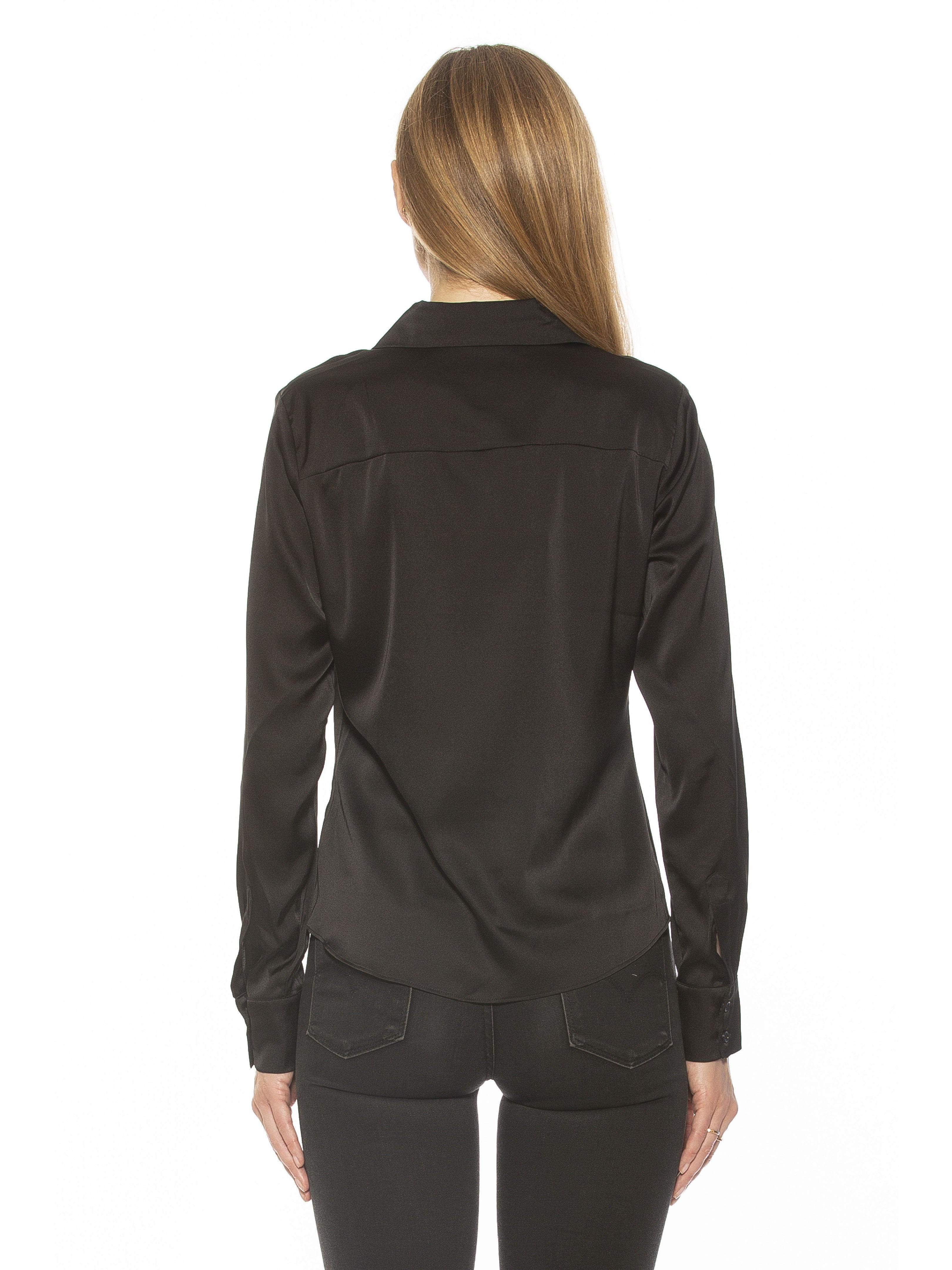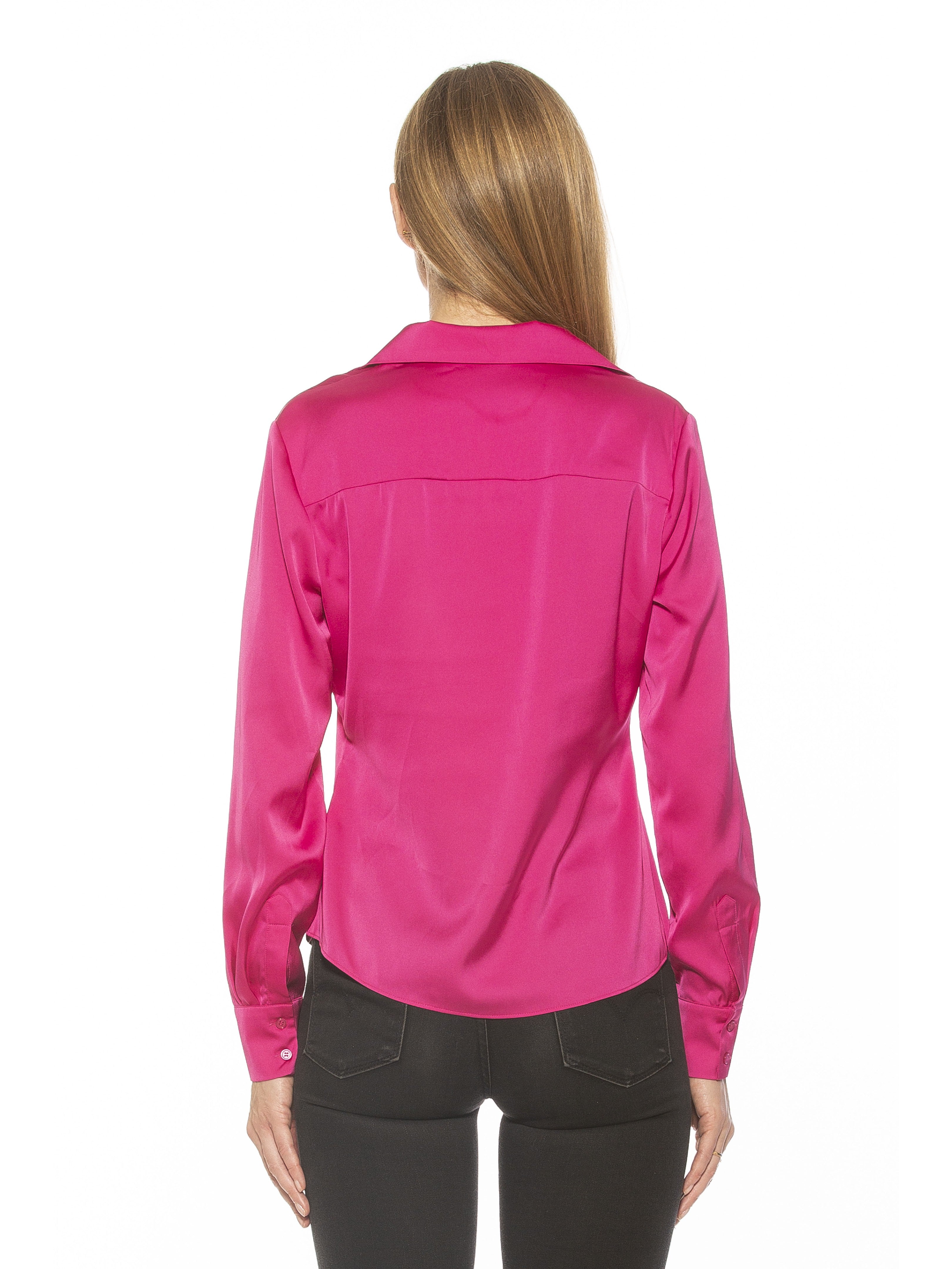 Button up. The Cassidy is a relaxed fitting, silky button down top with a collared neckline and functional buttons. This top is the perfect choice if you're looking for something not too clingy.