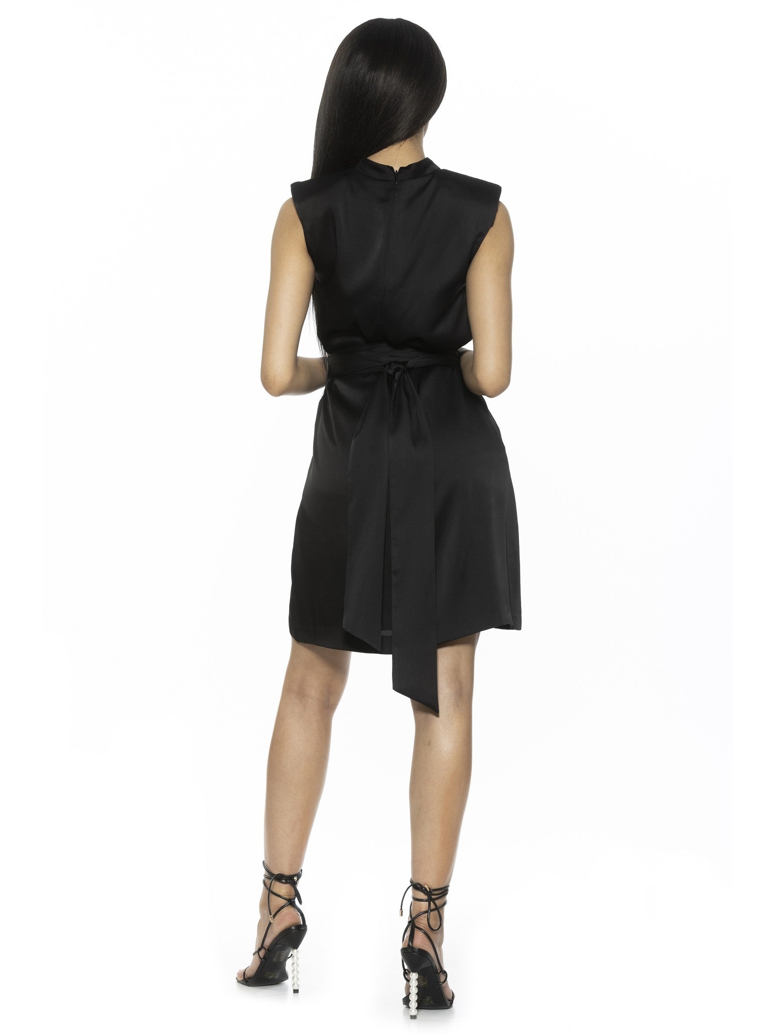 Indulge in luxury with the Brixton Dress. This sophisticated shift style features a sleek mock neck and bold sleeveless design, perfect for any upscale occasion. The belted waist adds a touch of elegance and highlights your silhouette. Elevate your wardrobe with this timeless and exclusive piece.