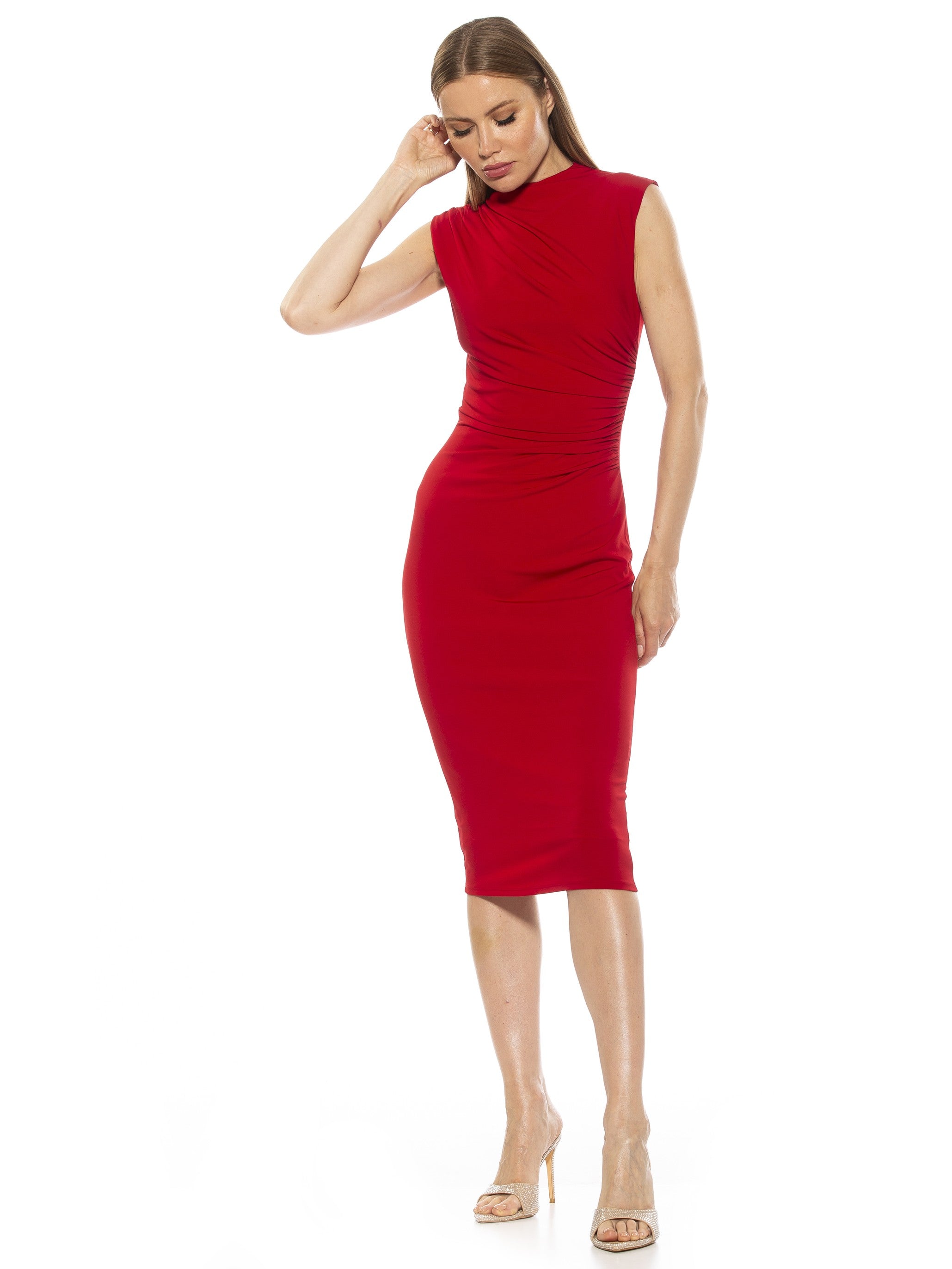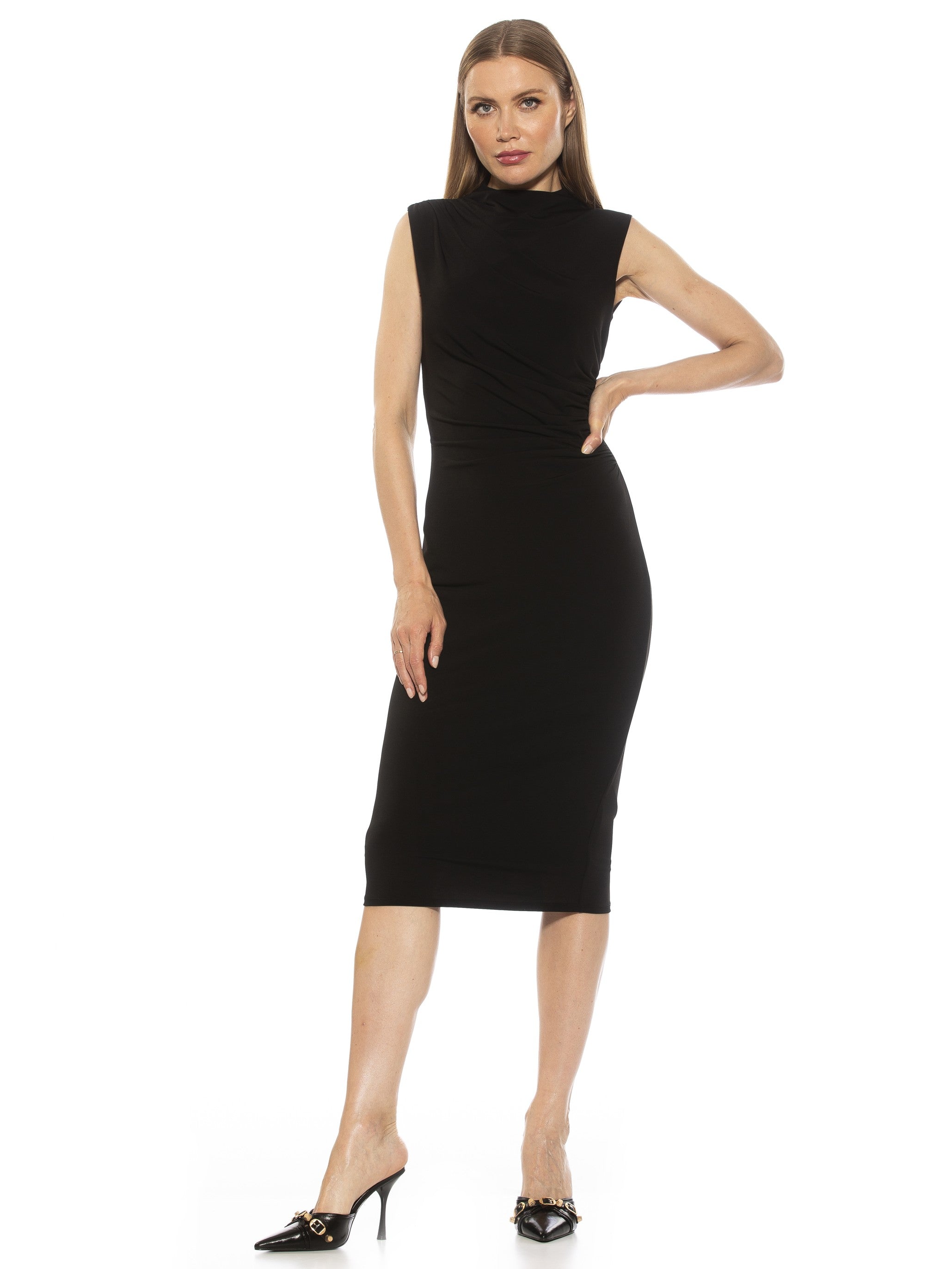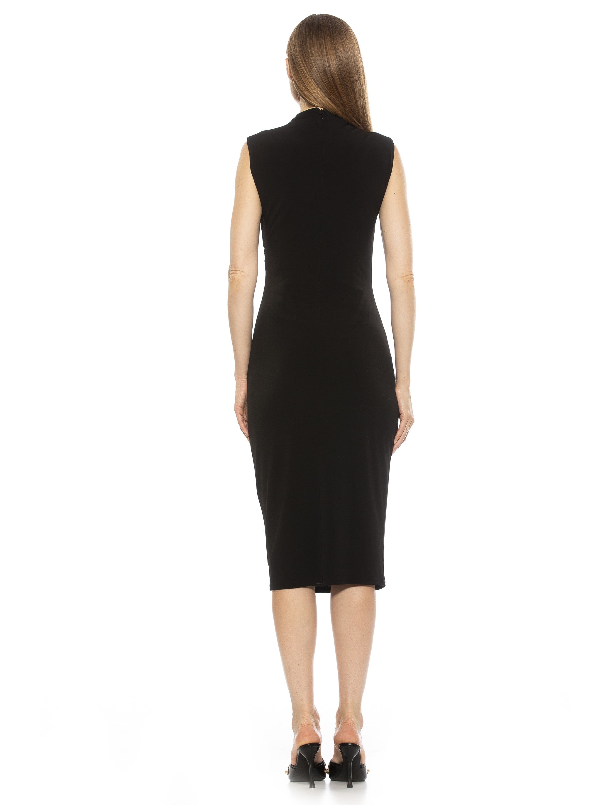 This Jan Dress is a perfect choice for a special occasion. Crafted in a timeless silhouette, it features a mock neck and sleeveless fit that will flatter any figure. Ideal for cocktail parties, this elegant bodycon dress will make you feel confident and stylish.