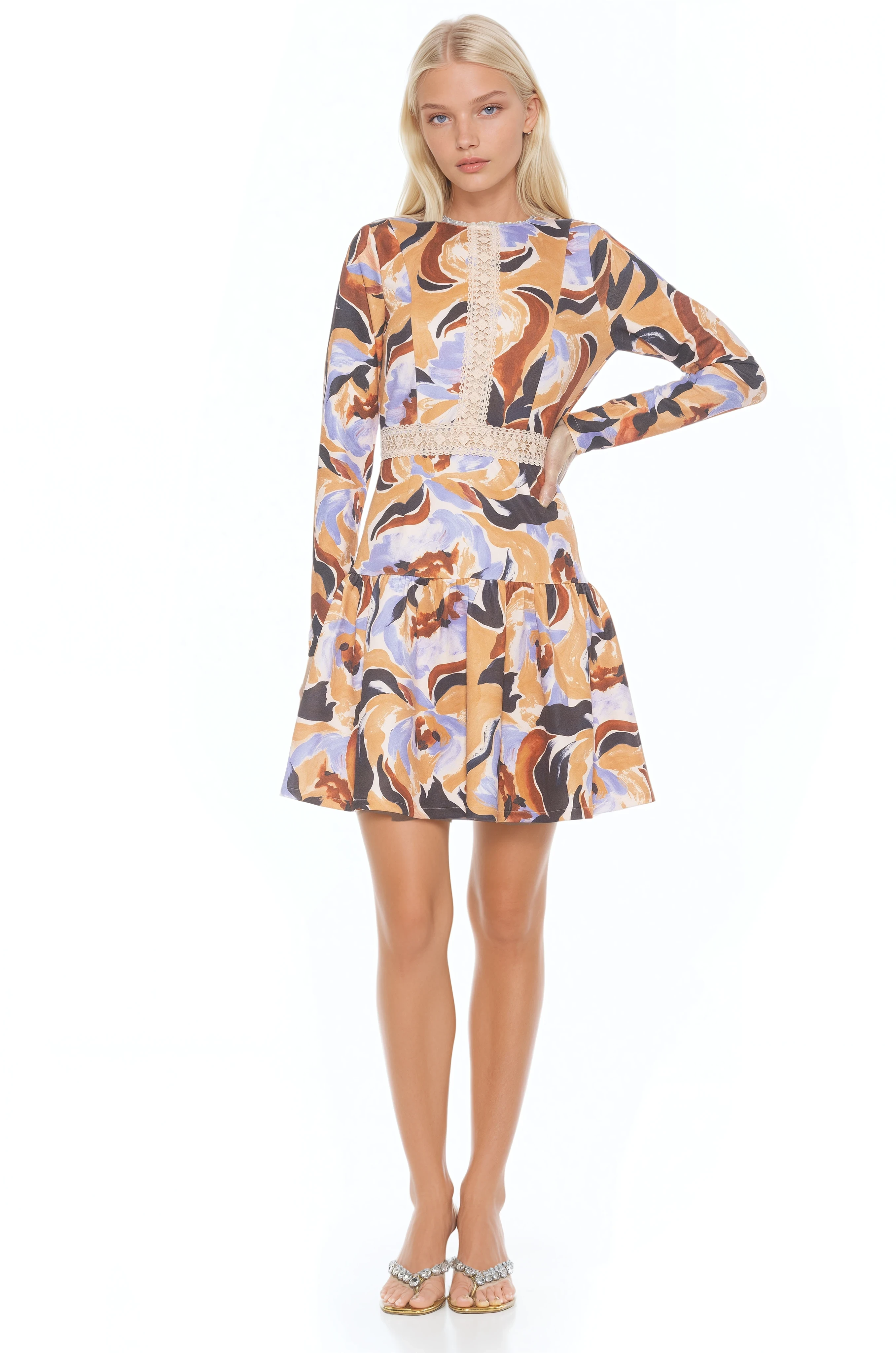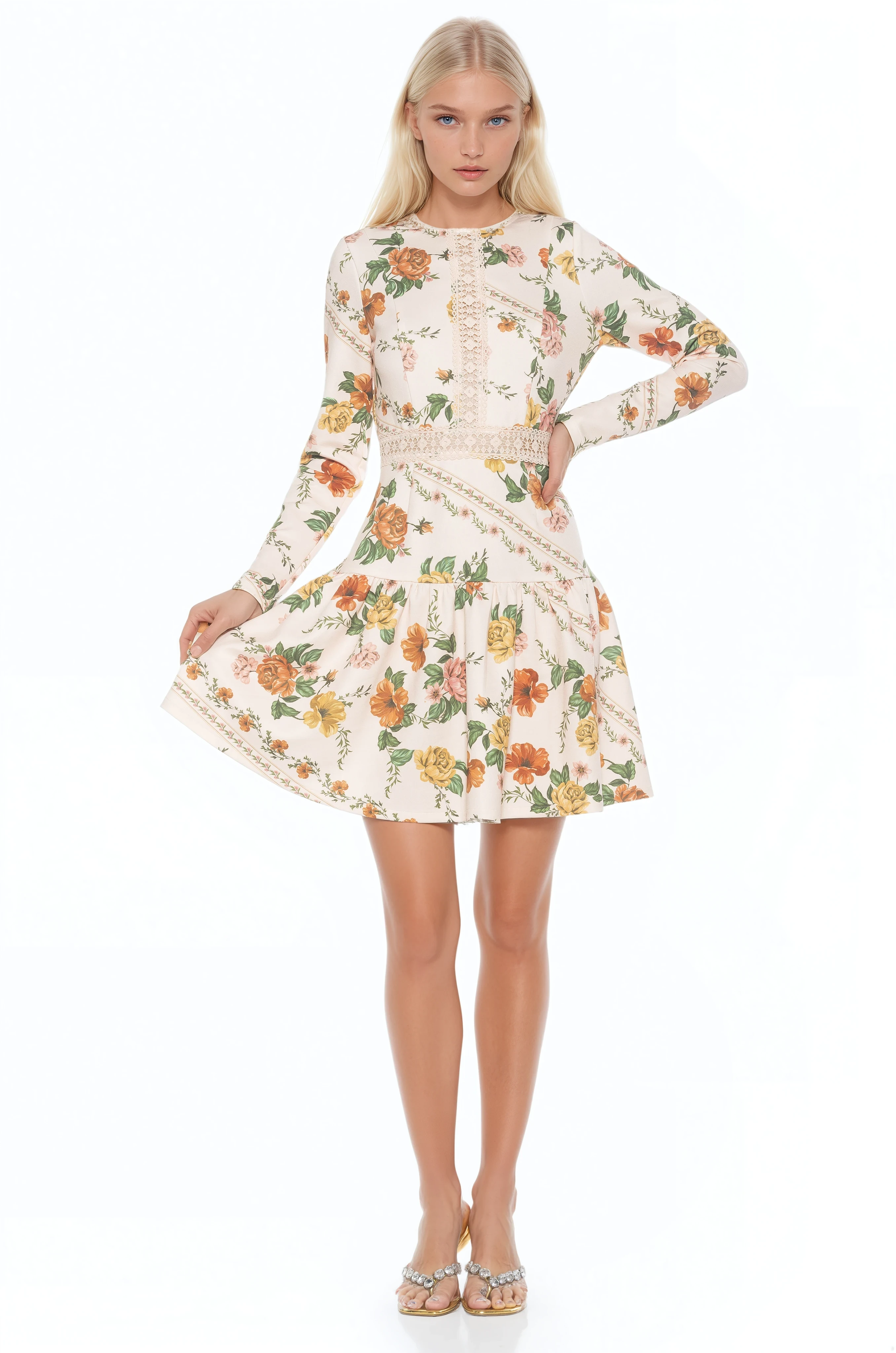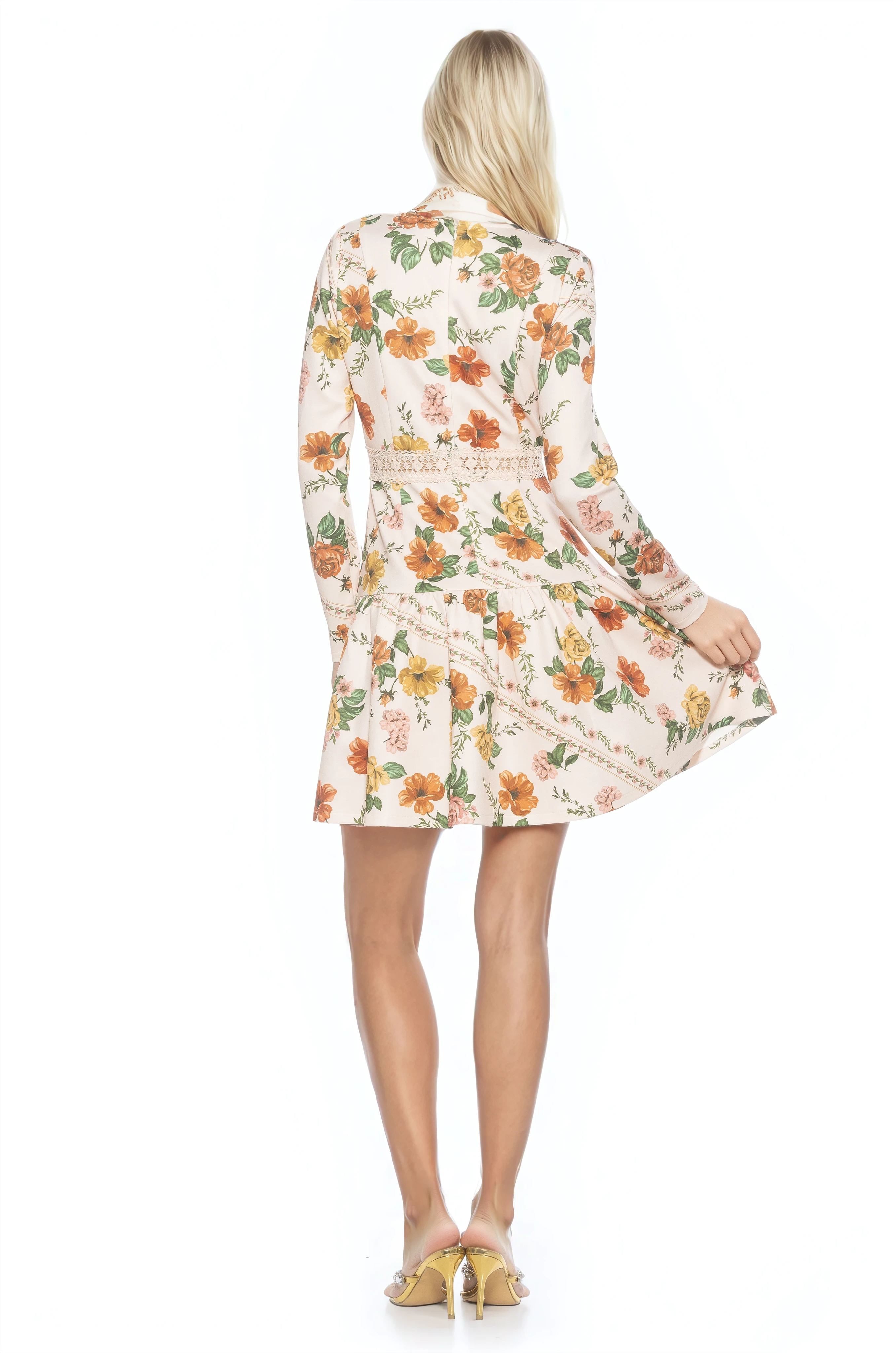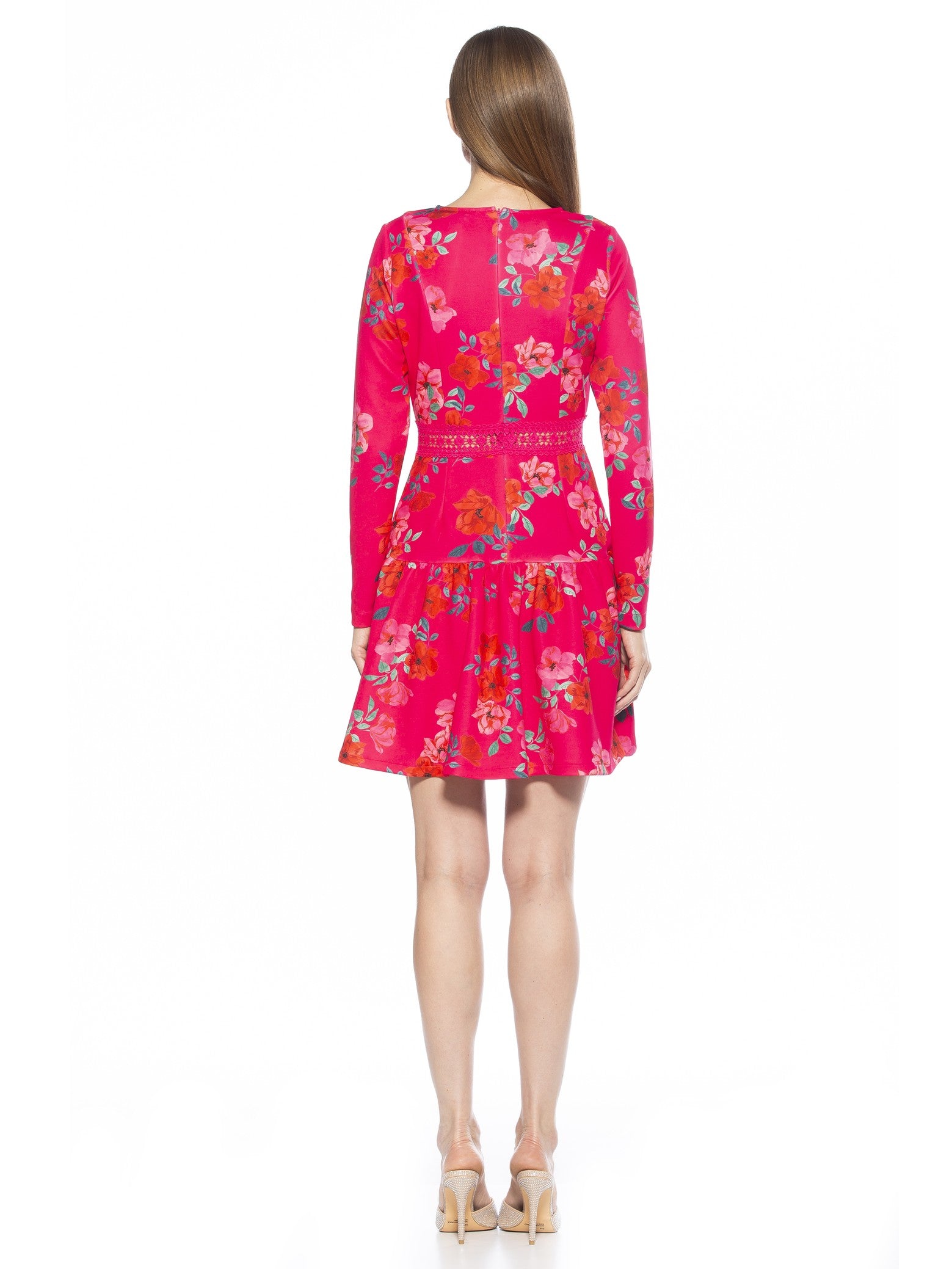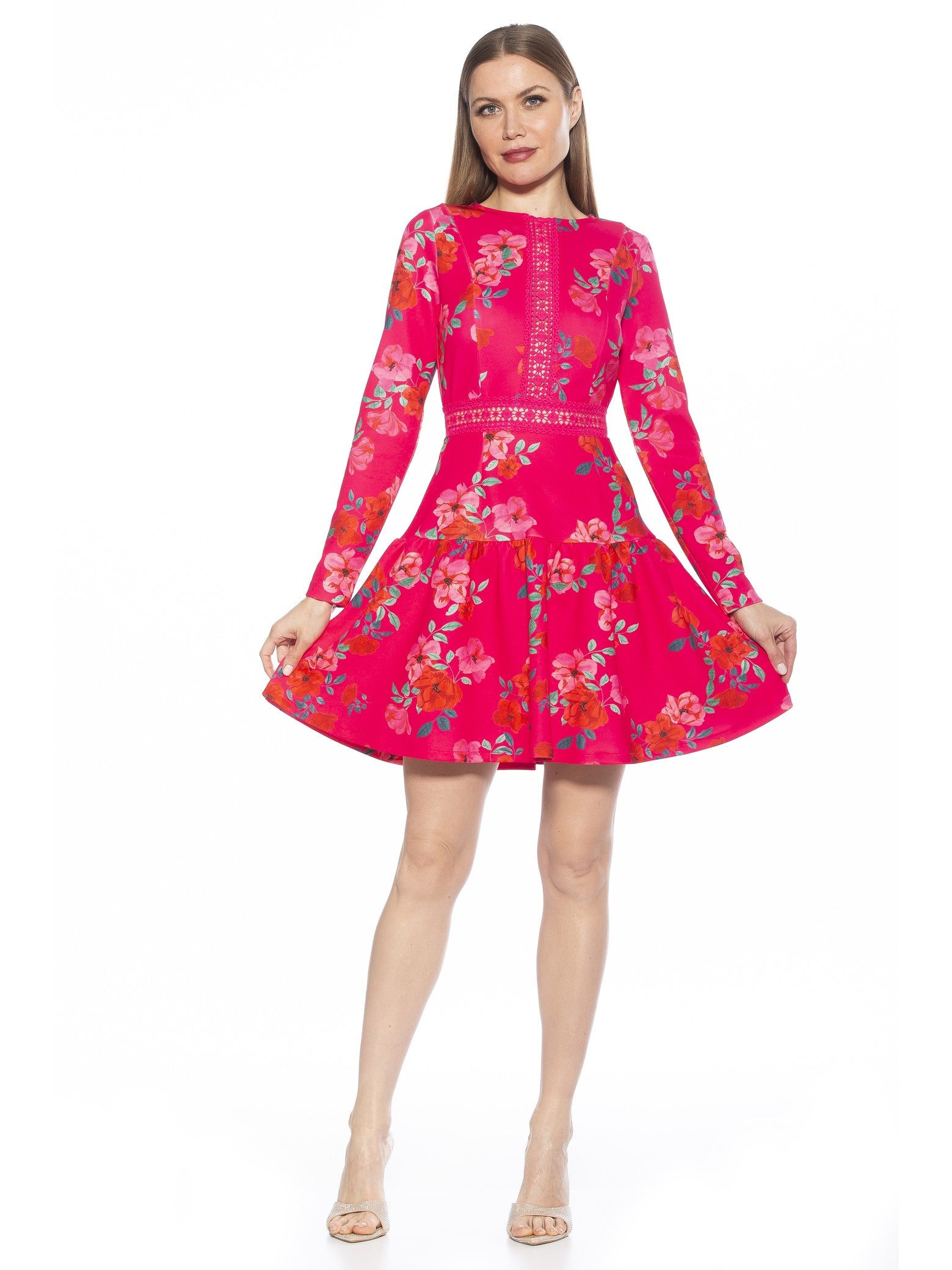 Step into a garden-inspired reverie with the Alexa Lace Trim Floral Print Dress where timeless romance meets contemporary flair. Rendered in a vivid floral motif and finished with delicate lace trim, this mini celebrates femininity with long, graceful sleeves and a flattering fit-and-flare cut. Whether you’re swept up in an afternoon soiree or toasting under evening lights, the Alexa radiates femininity and style.