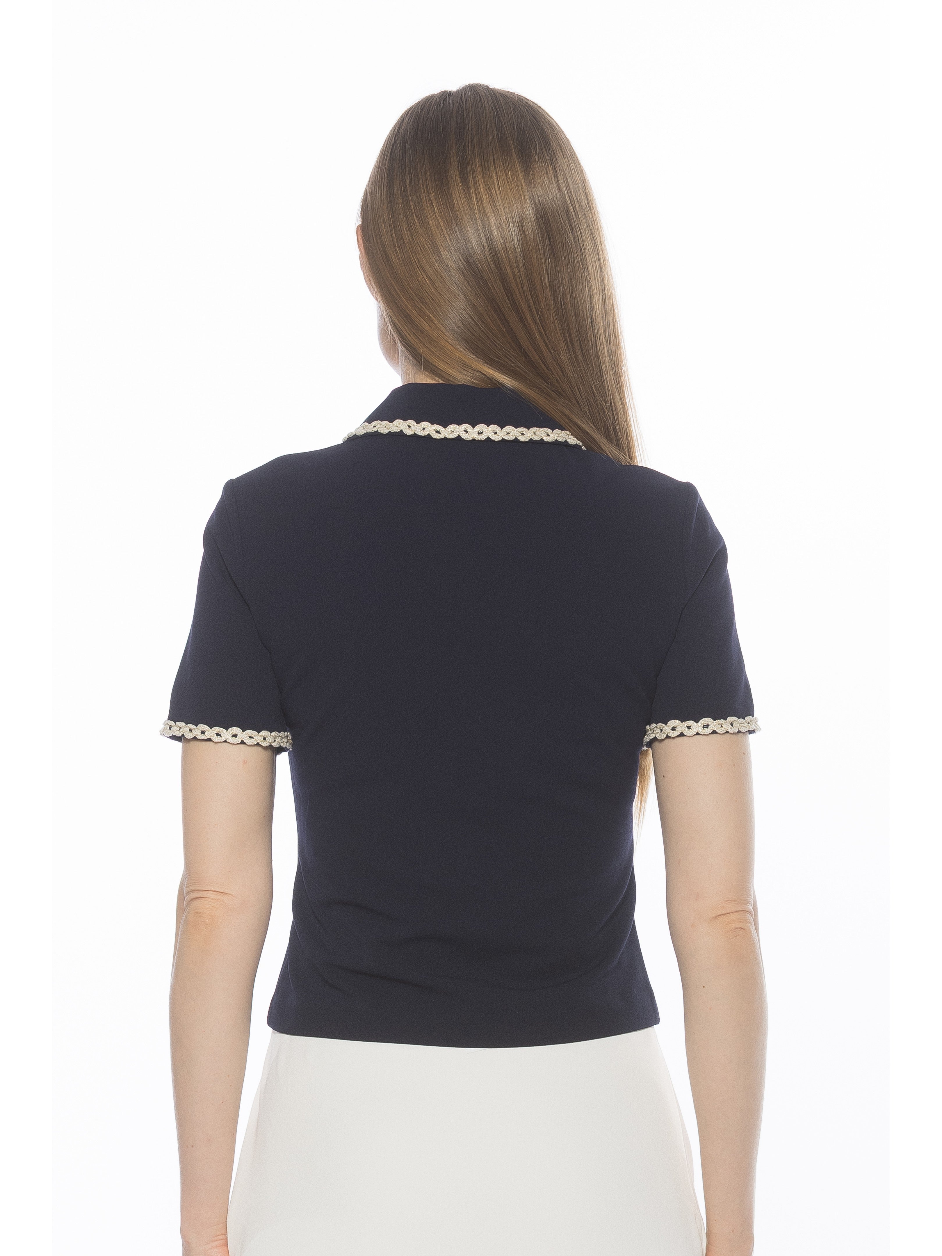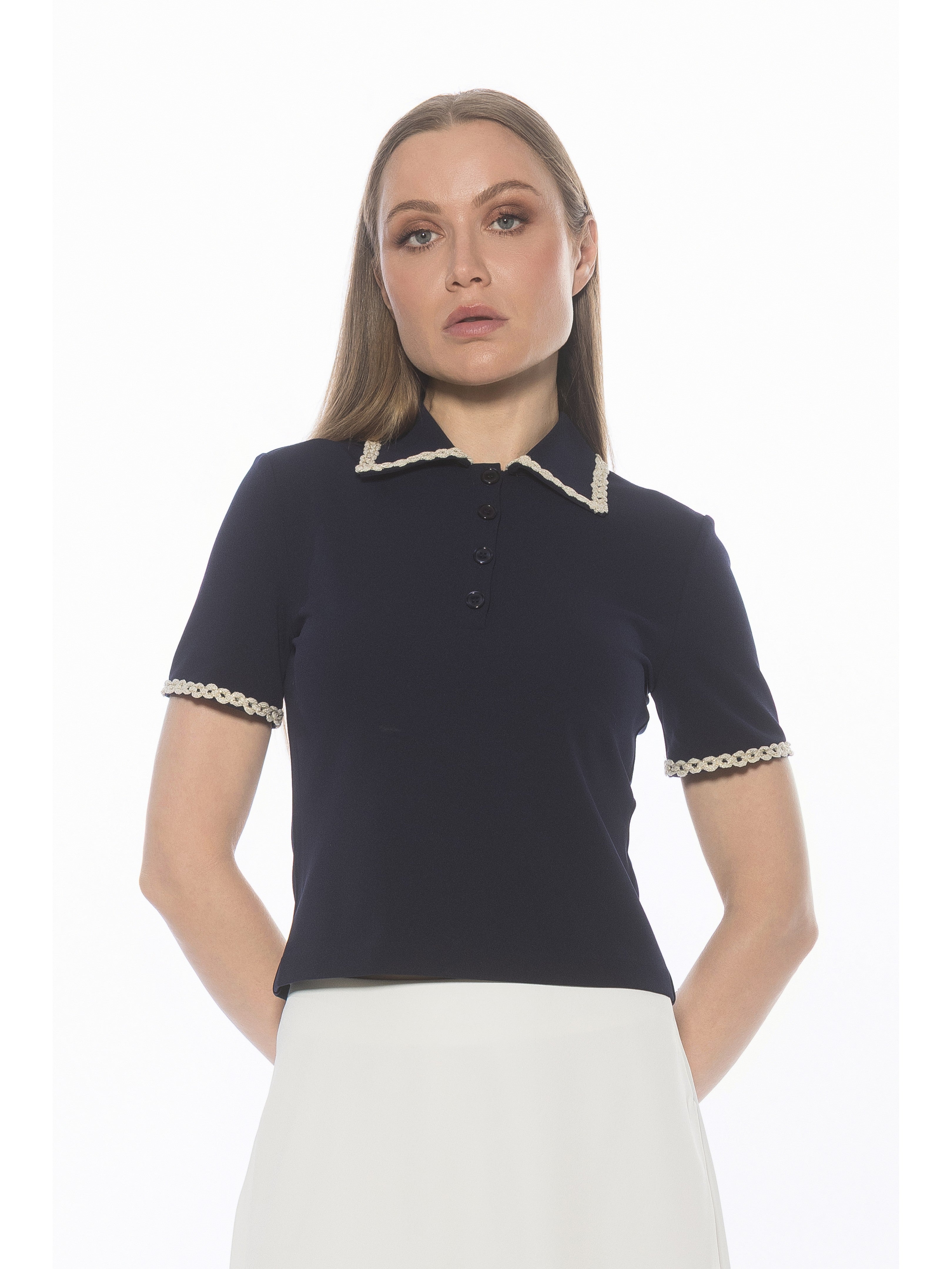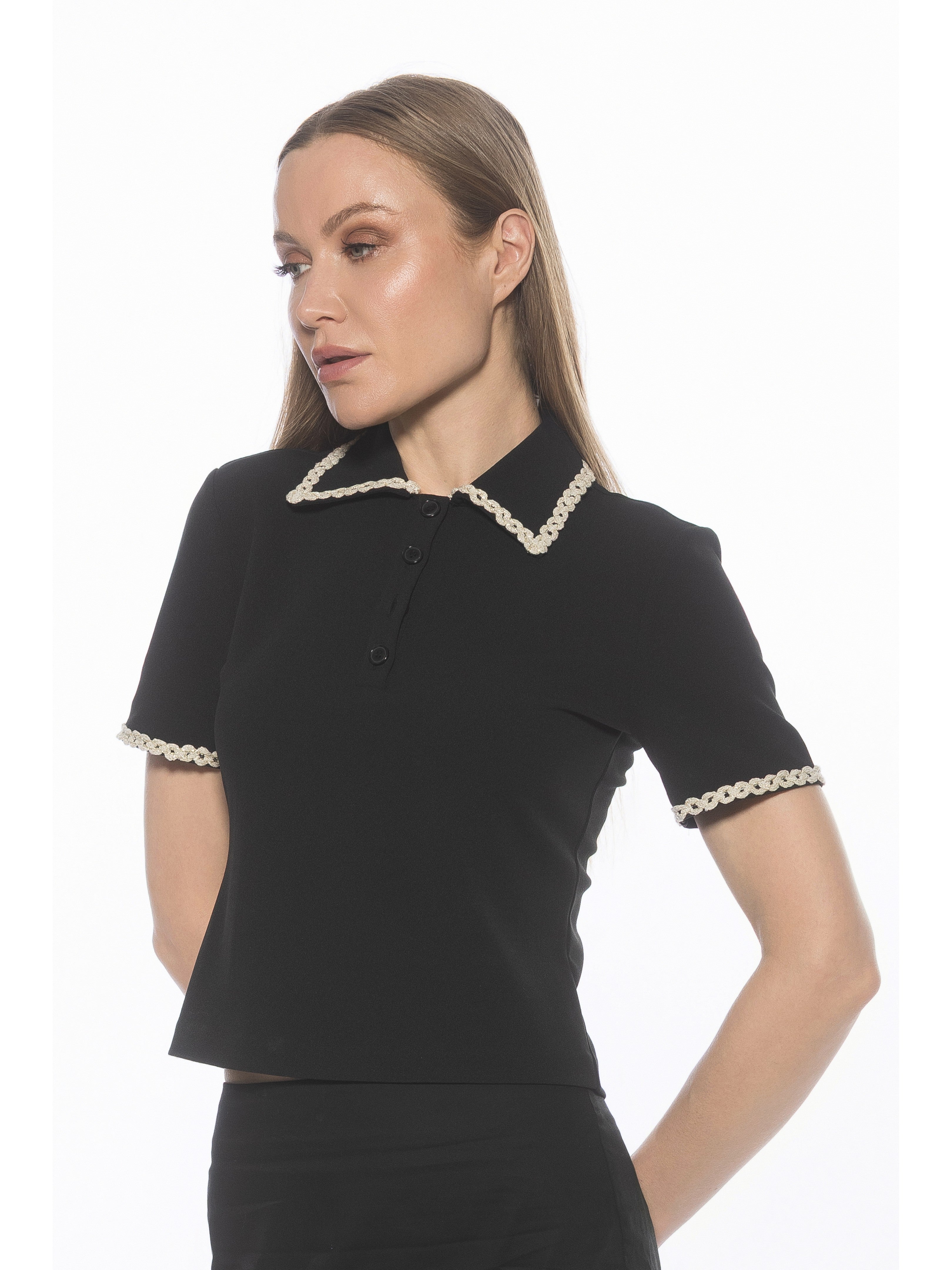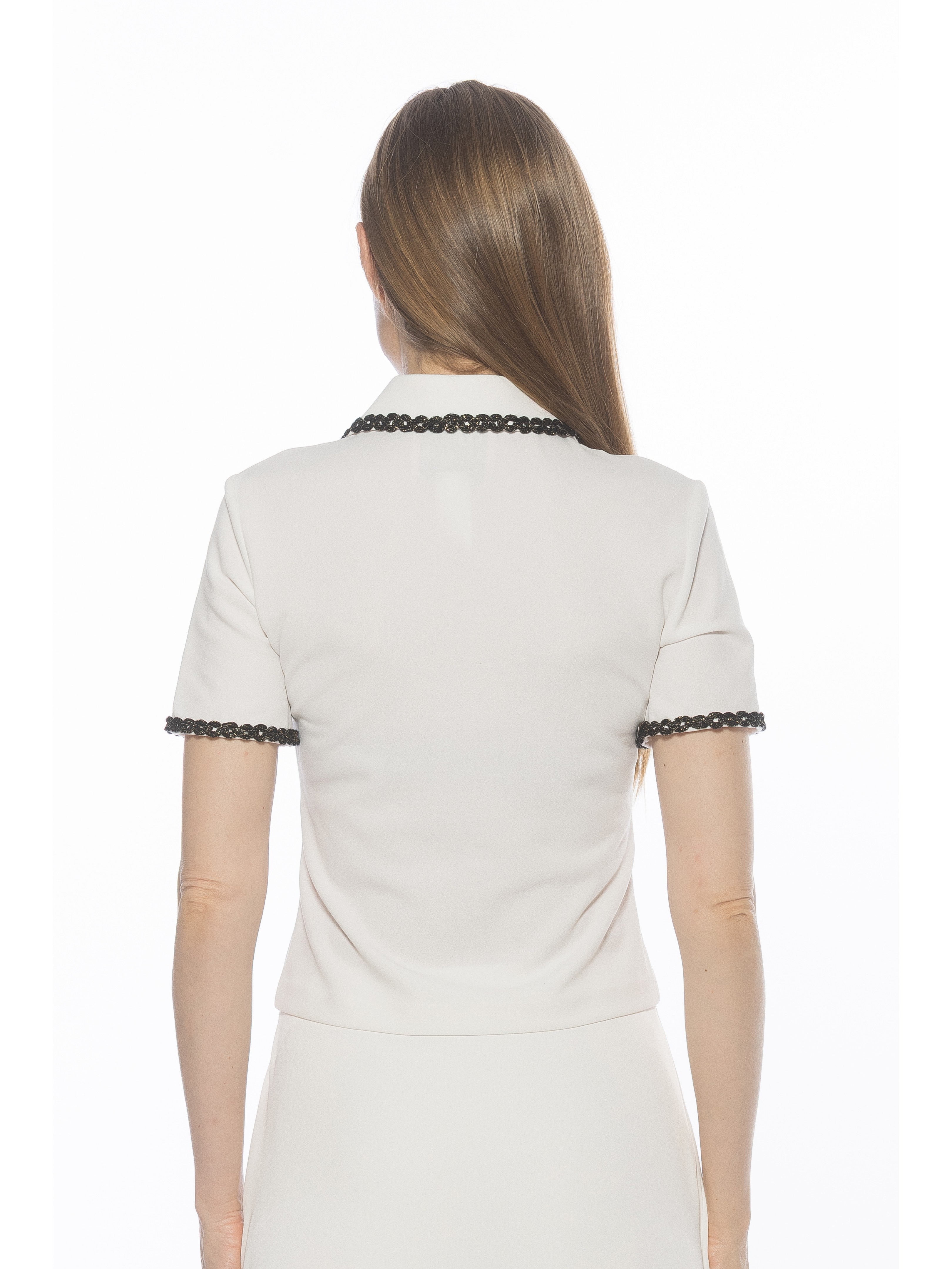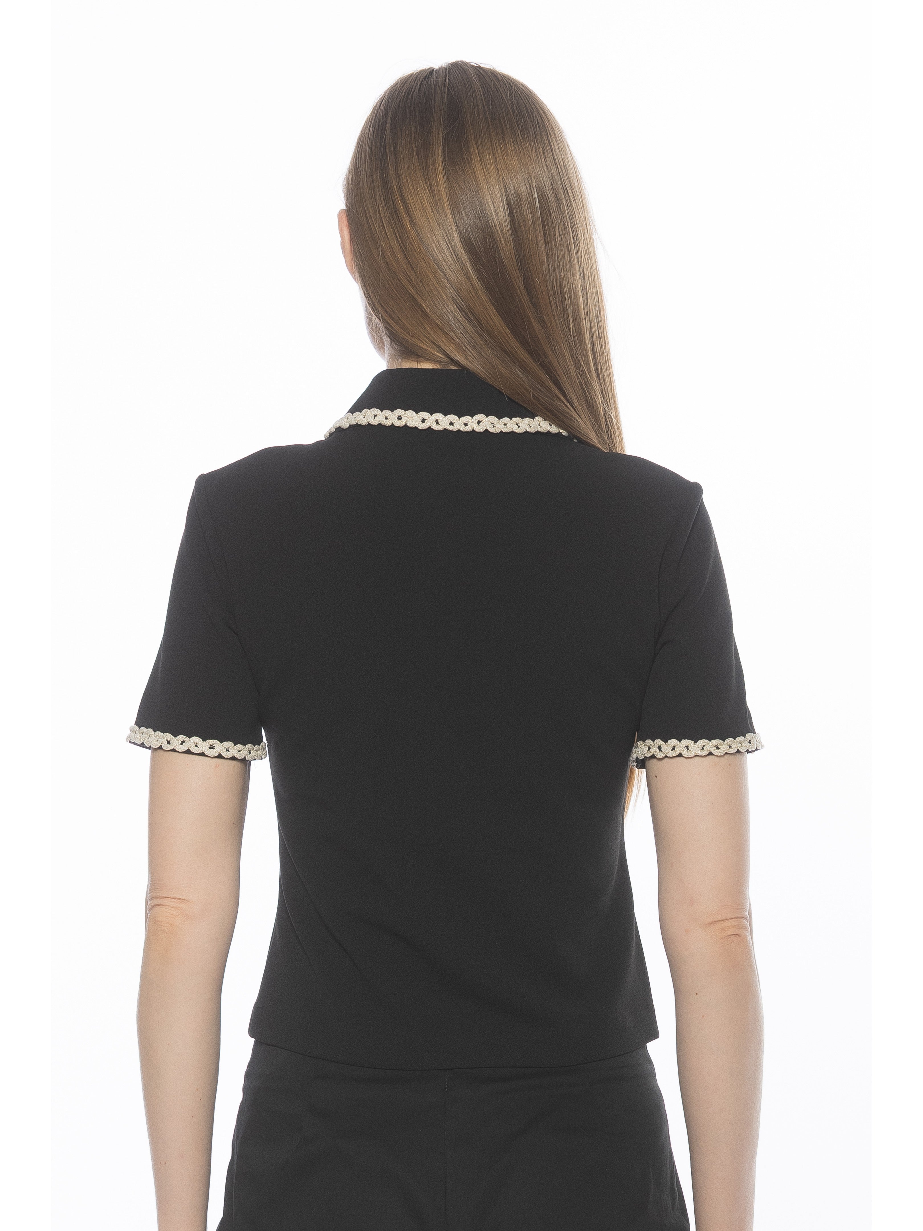 The Brianna Short Sleeve Top Is A Must Have For Your Closet. This Top Features Front Button Detail, Novelty Trim At Collar And Arm, And Luxe Stretch Fabric. This Item Fits True To Size.