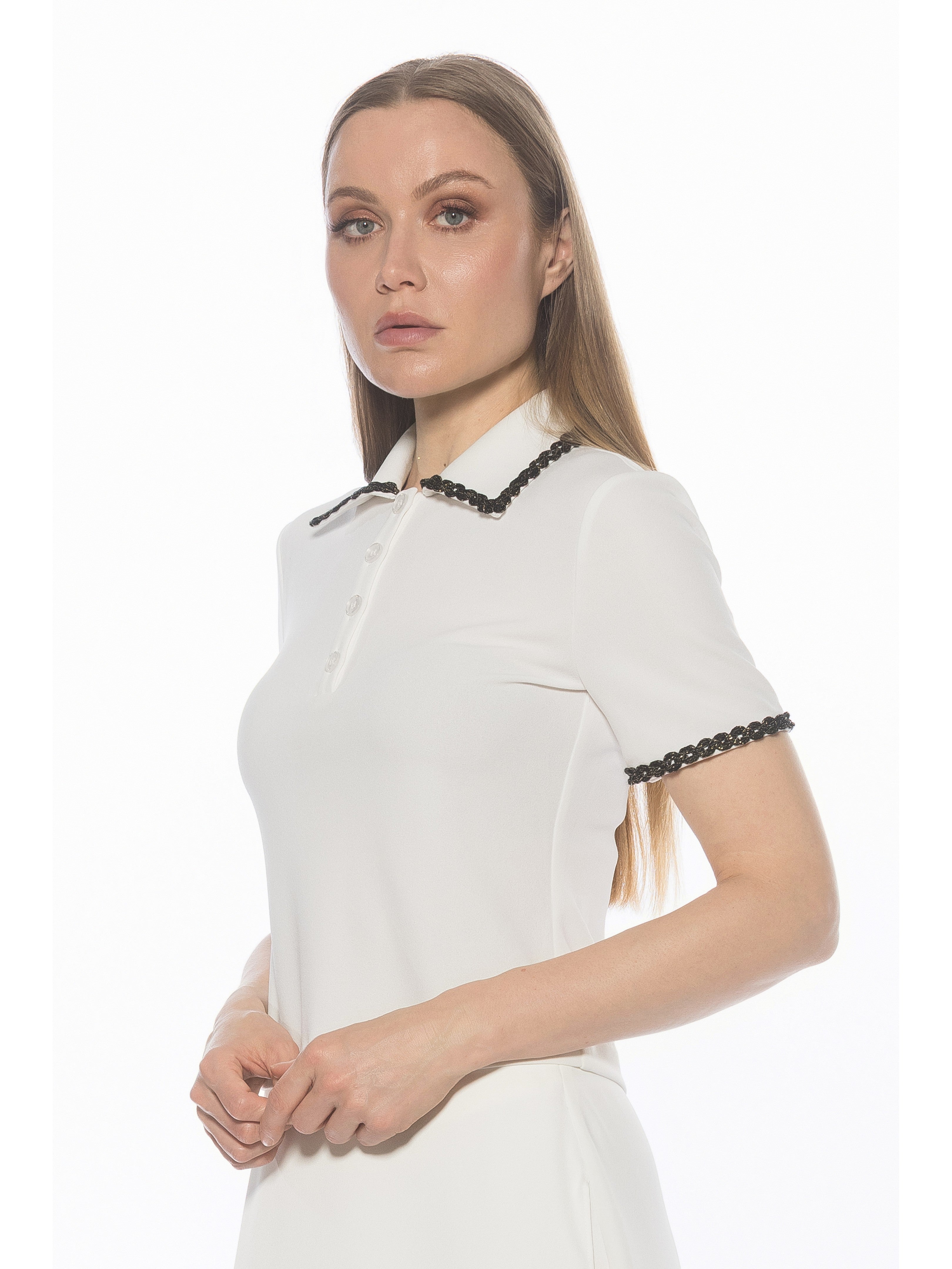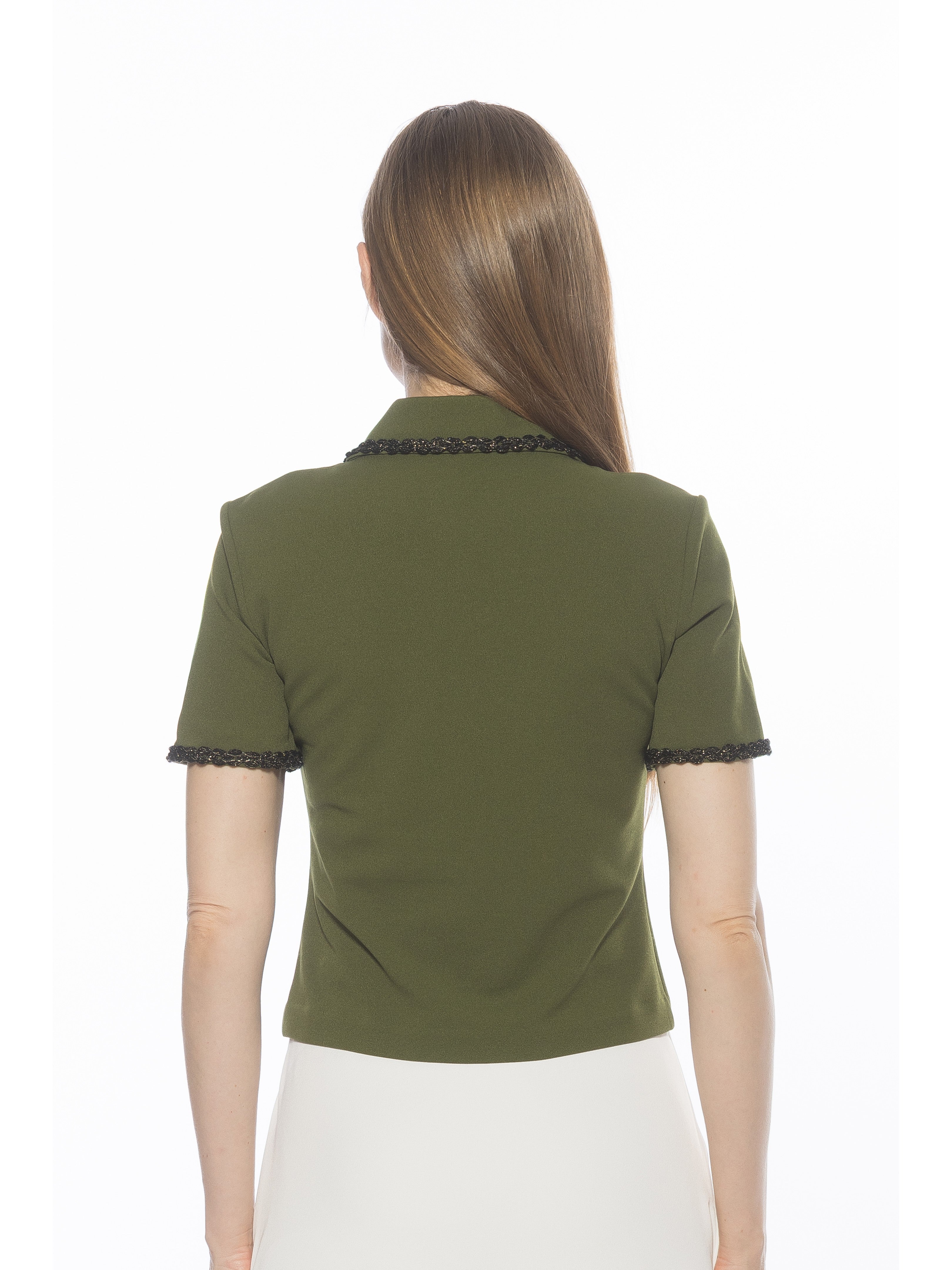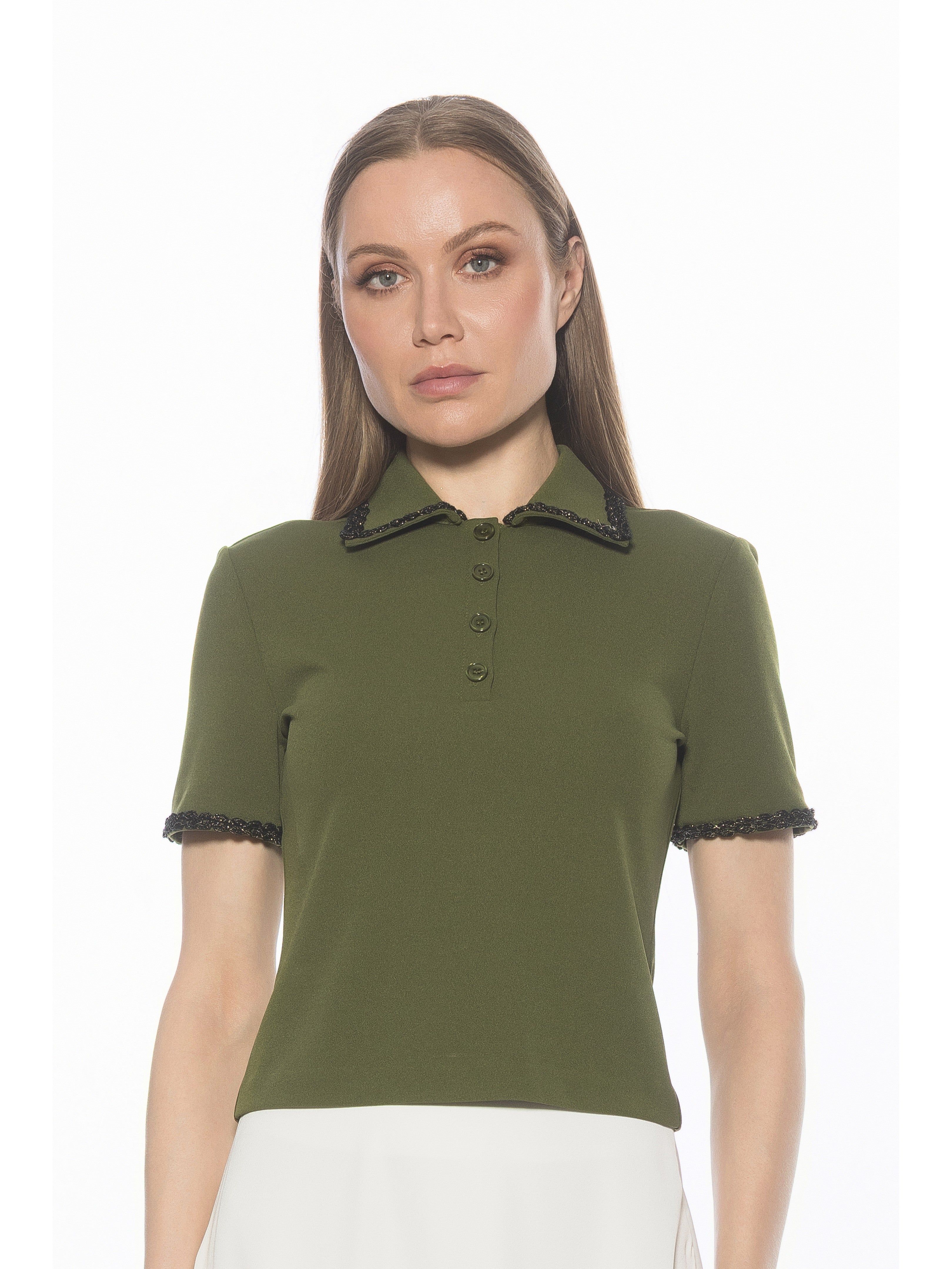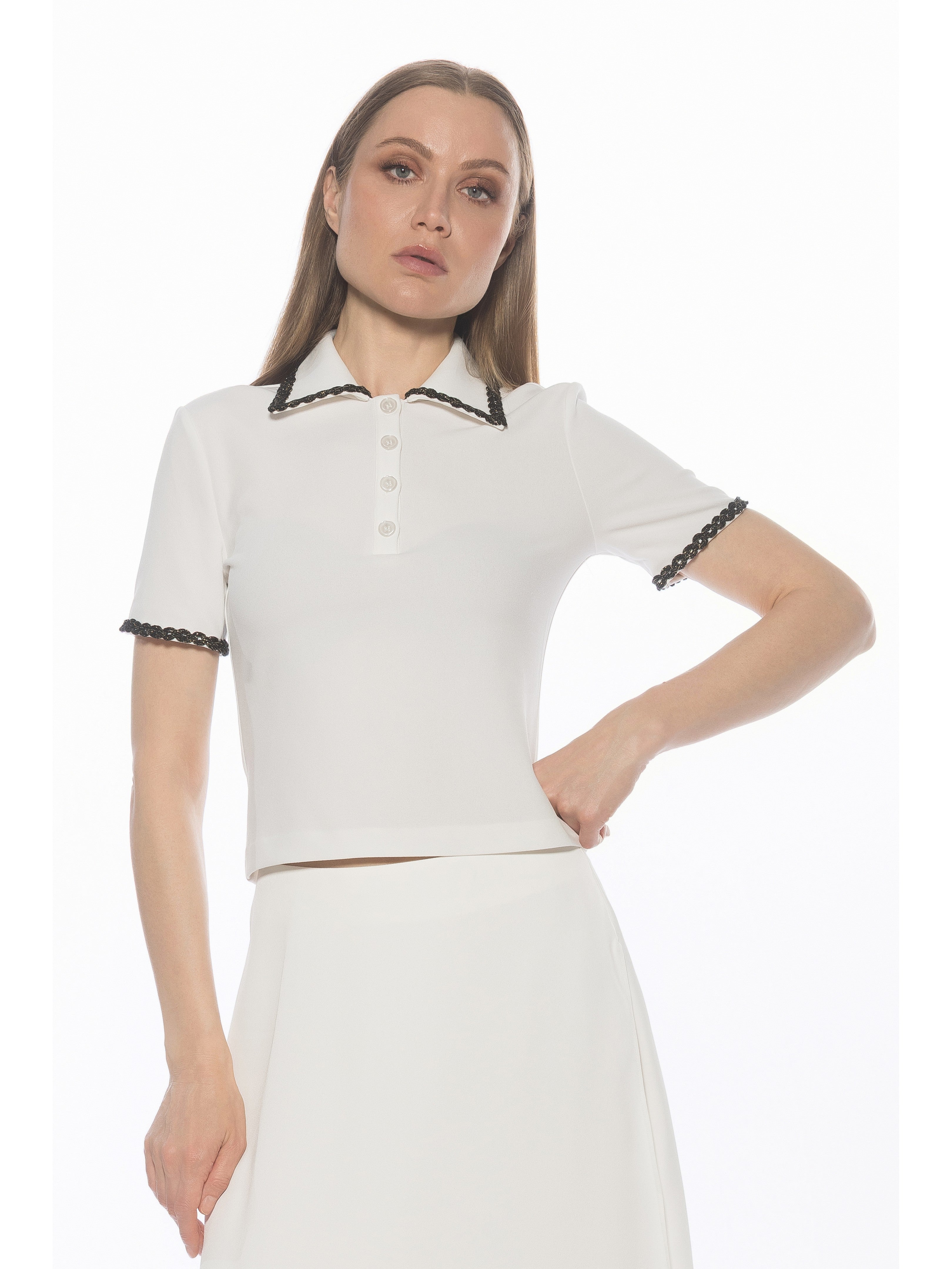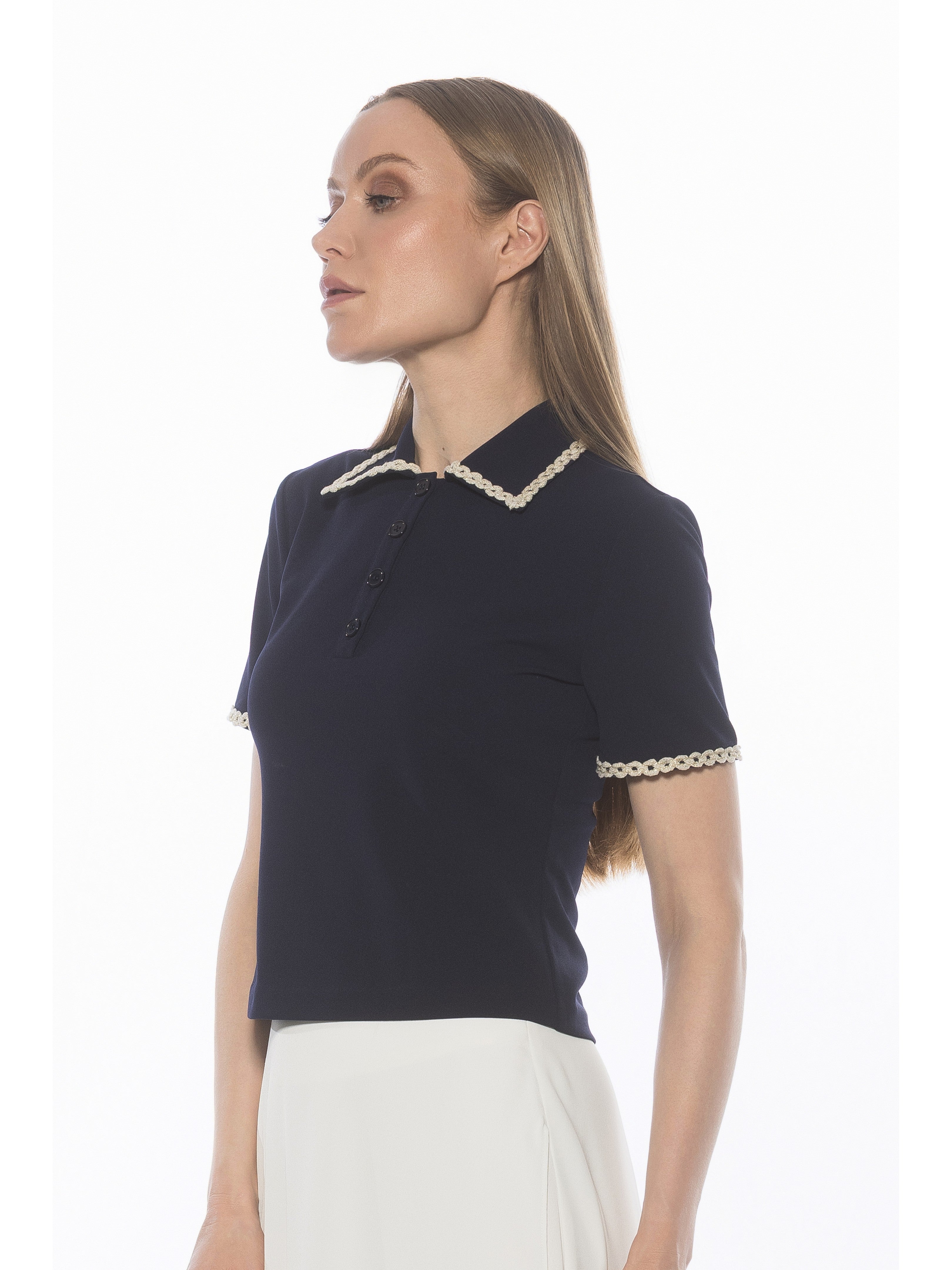 The Brianna Short Sleeve Top Is A Must Have For Your Closet. This Top Features Front Button Detail, Novelty Trim At Collar And Arm, And Luxe Stretch Fabric. This Item Fits True To Size.