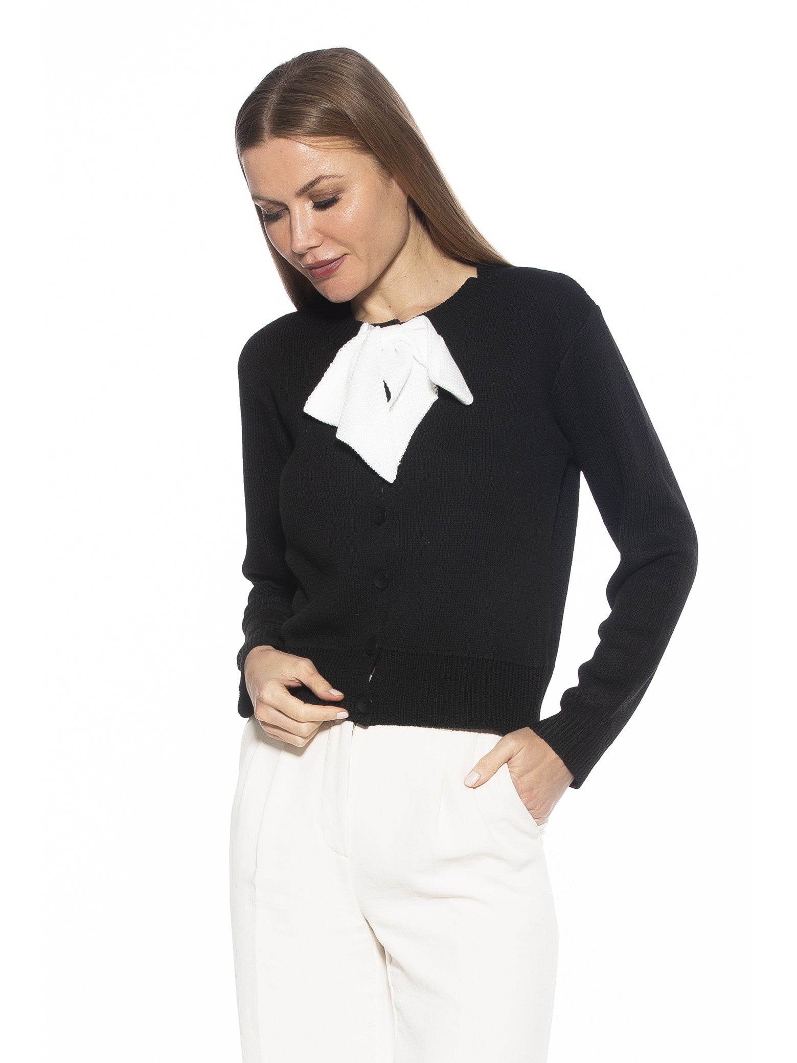 Enjoy the perfect blend of style and comfort with the Calix cardigan. This ultra-luxe knitted piece features a front bow detail, long sleeves, and an elegant silhouette, perfect for any occasion. An instant classic, choose this timeless staple to add a touch of sophistication to your wardrobe.