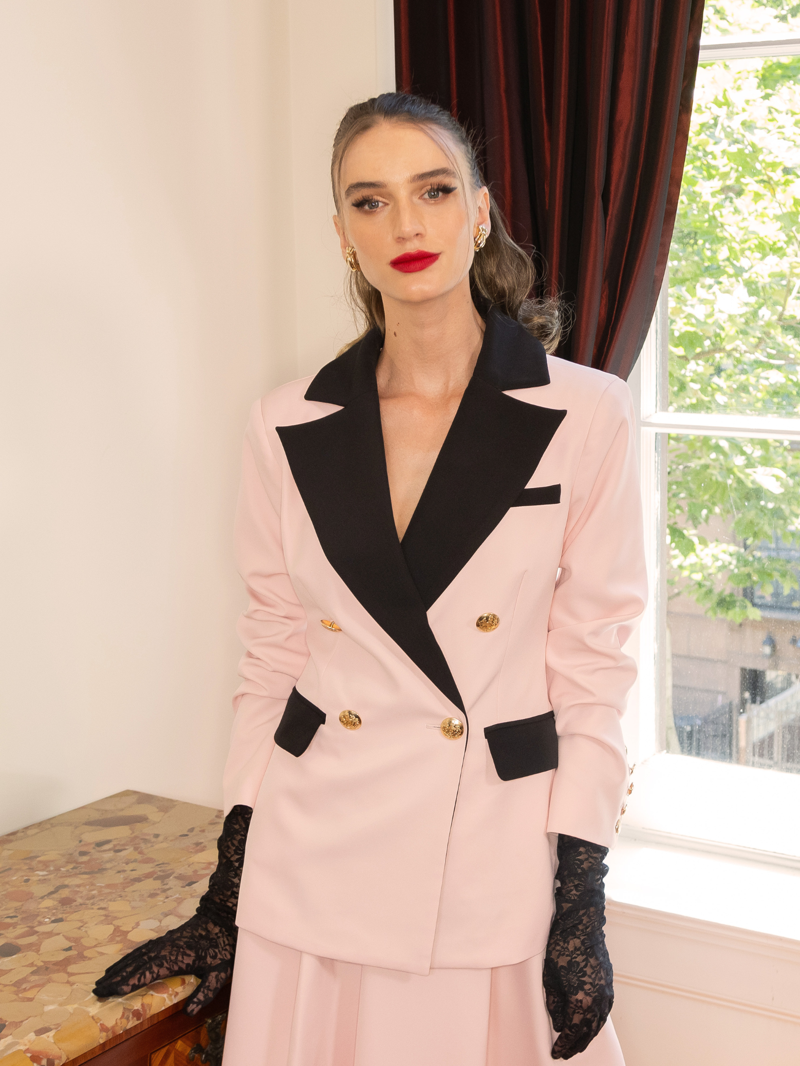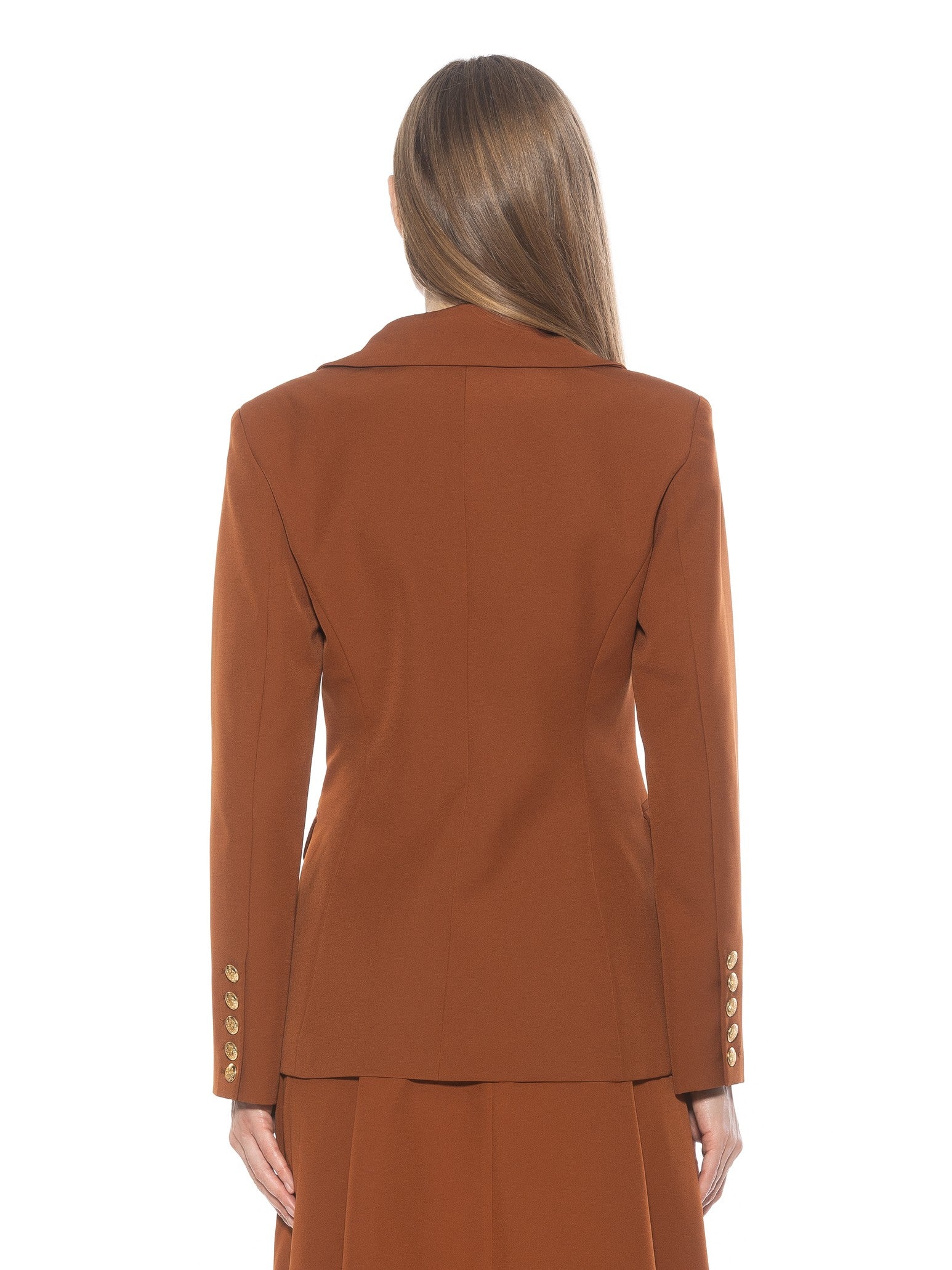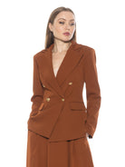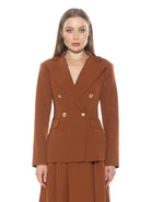 The Farrah Blazer exudes sophistication with its gold buttons and double breasted design. Elevate any outfit with this luxurious piece, a must-have for the fashion-forward individual. Command attention and make a statement with this exclusive blazer.