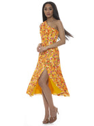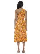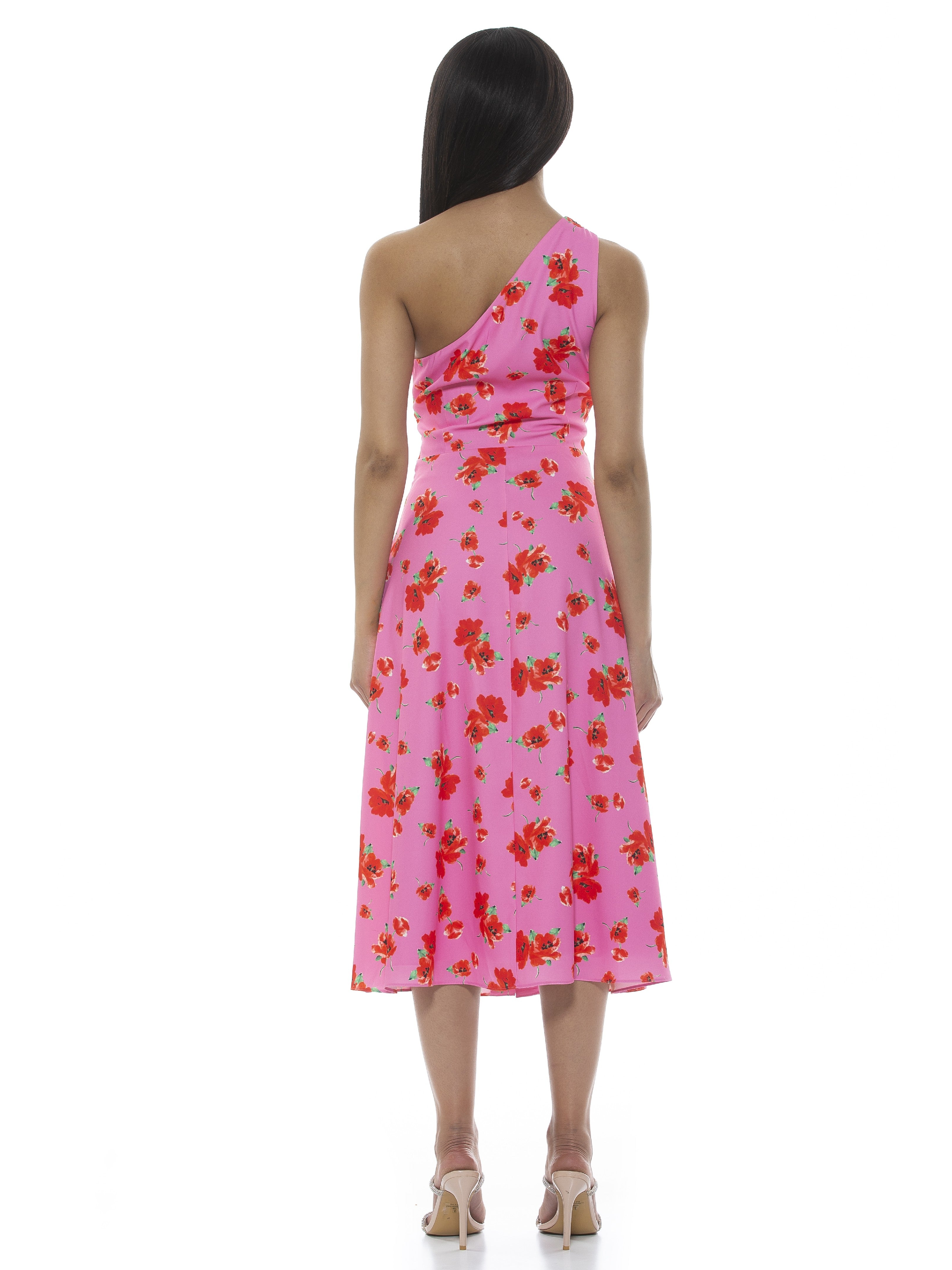 The Fay Dress is a one shoulder design with a side slit and fit and flare silhouette in an elegant midi dress. Make a statement with its unique shape and feel the confidence of a unique and beautiful look.