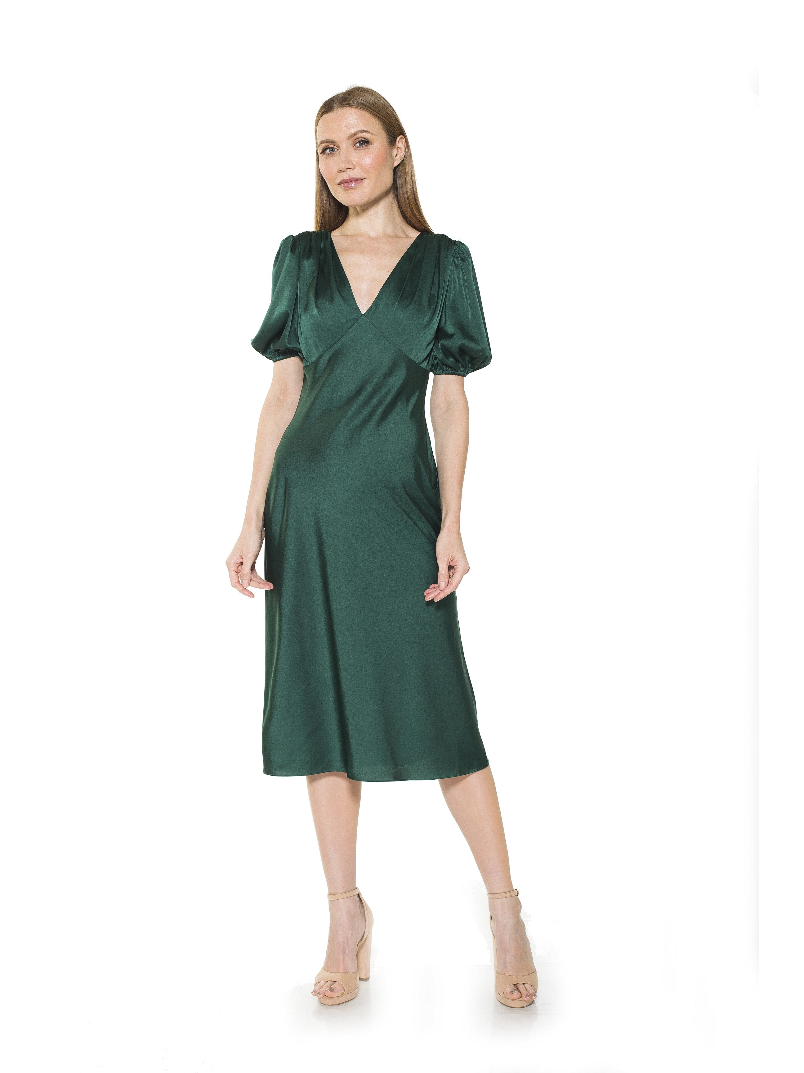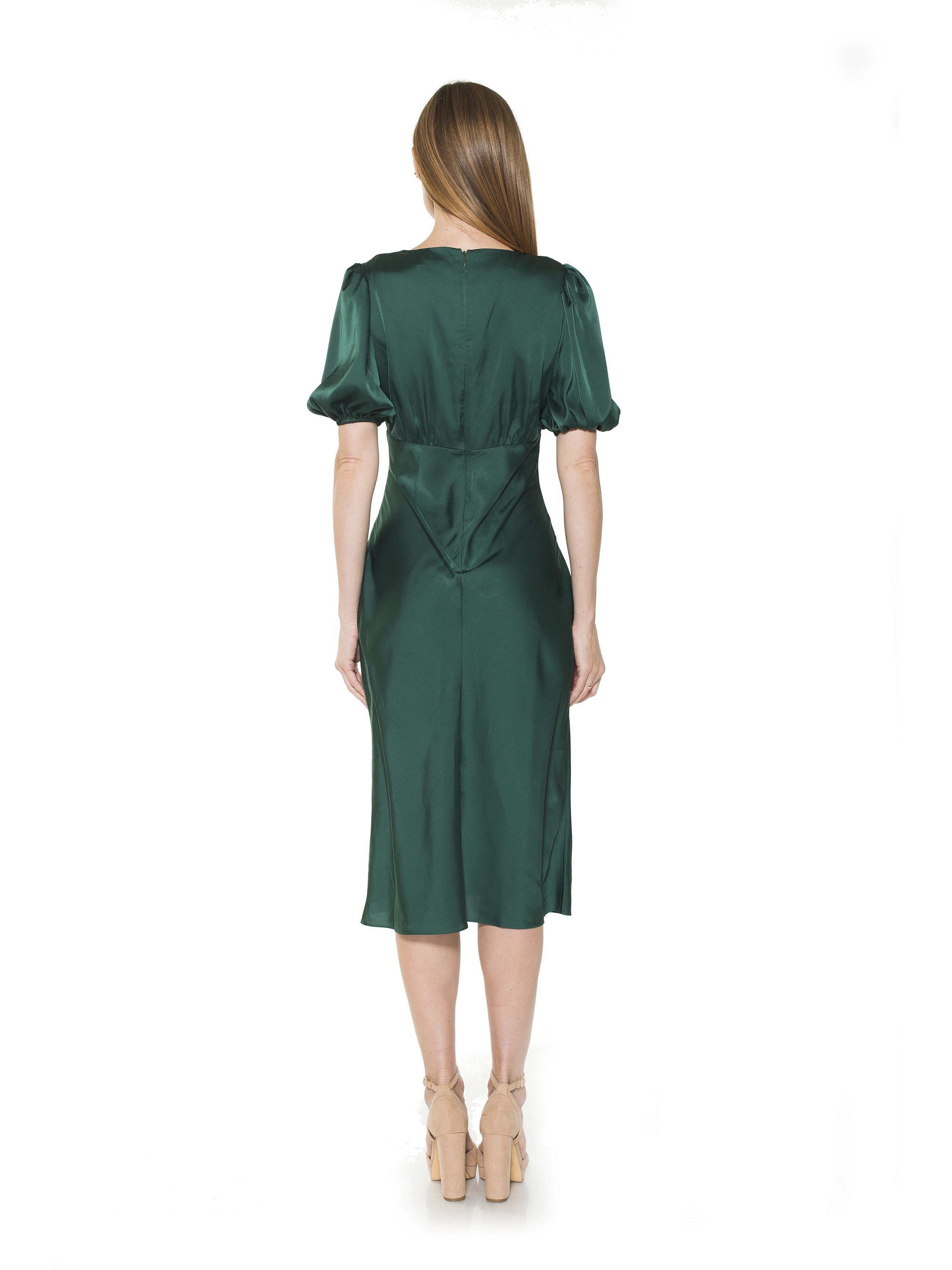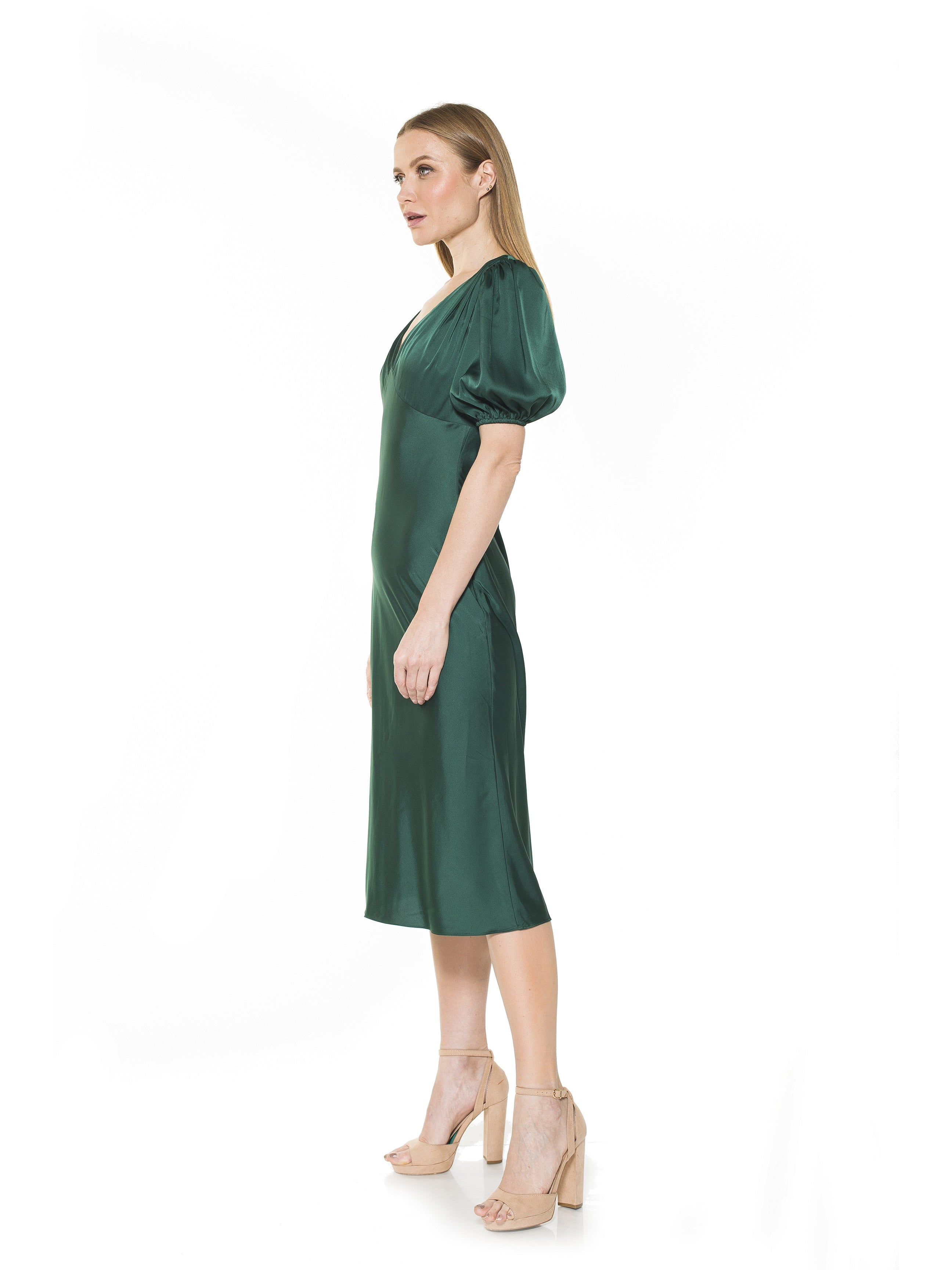 Introducing the Felicity Midi Dress for the perfect blend of feminine sophistication. Expertly crafted with a V-neckline, short bubble sleeves, and a midi skirt length, it's sure to make an unforgettable first impression. Tailored in lightweight satin fabric, you’ll look polished while feeling chic and comfortable.