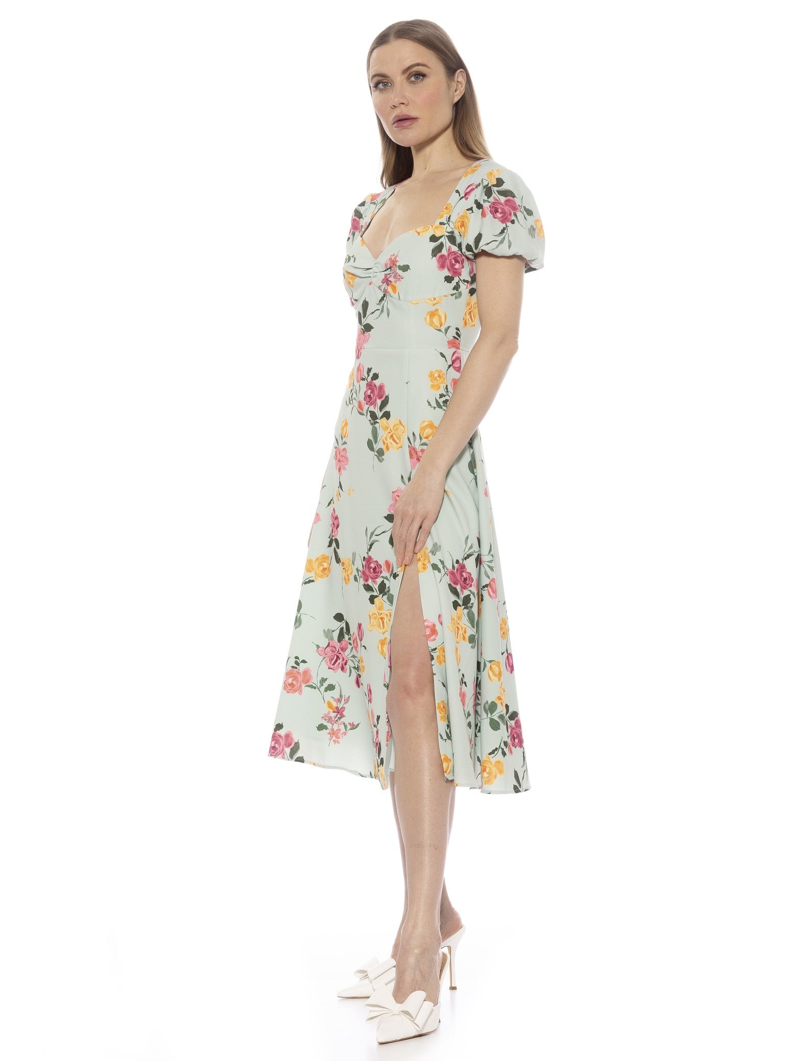 Introducing the Gracie Dress, a sophisticated midi dress exuding elegance and charm. Featuring a flattering sweetheart neckline and delicate puff sleeves, this dress is perfect for any special occasion. The high slit adds a touch of sensuality, making you the center of attention. Elevate your style with this exclusive dress from our premium collection.