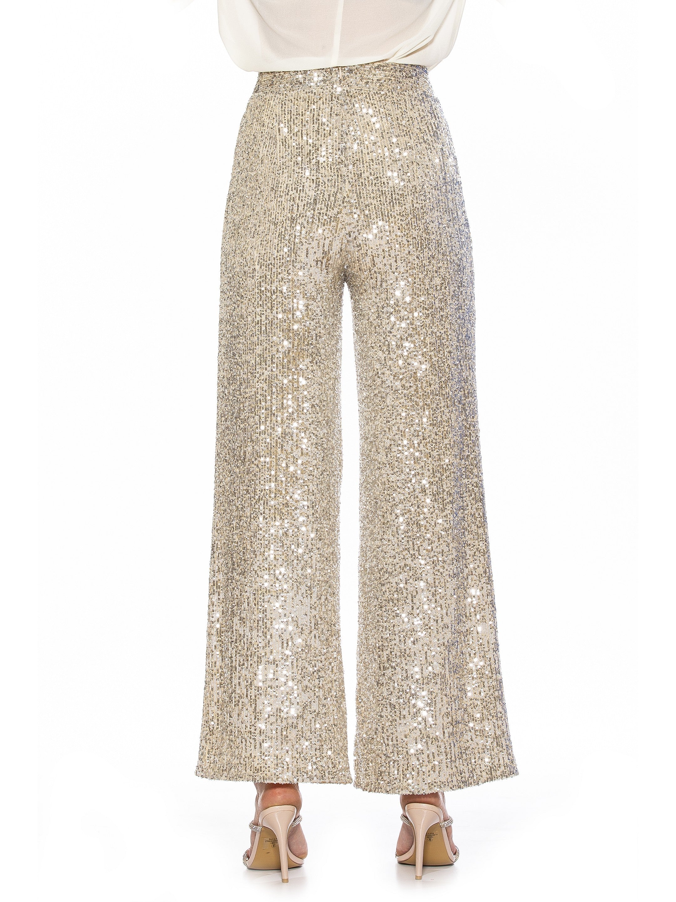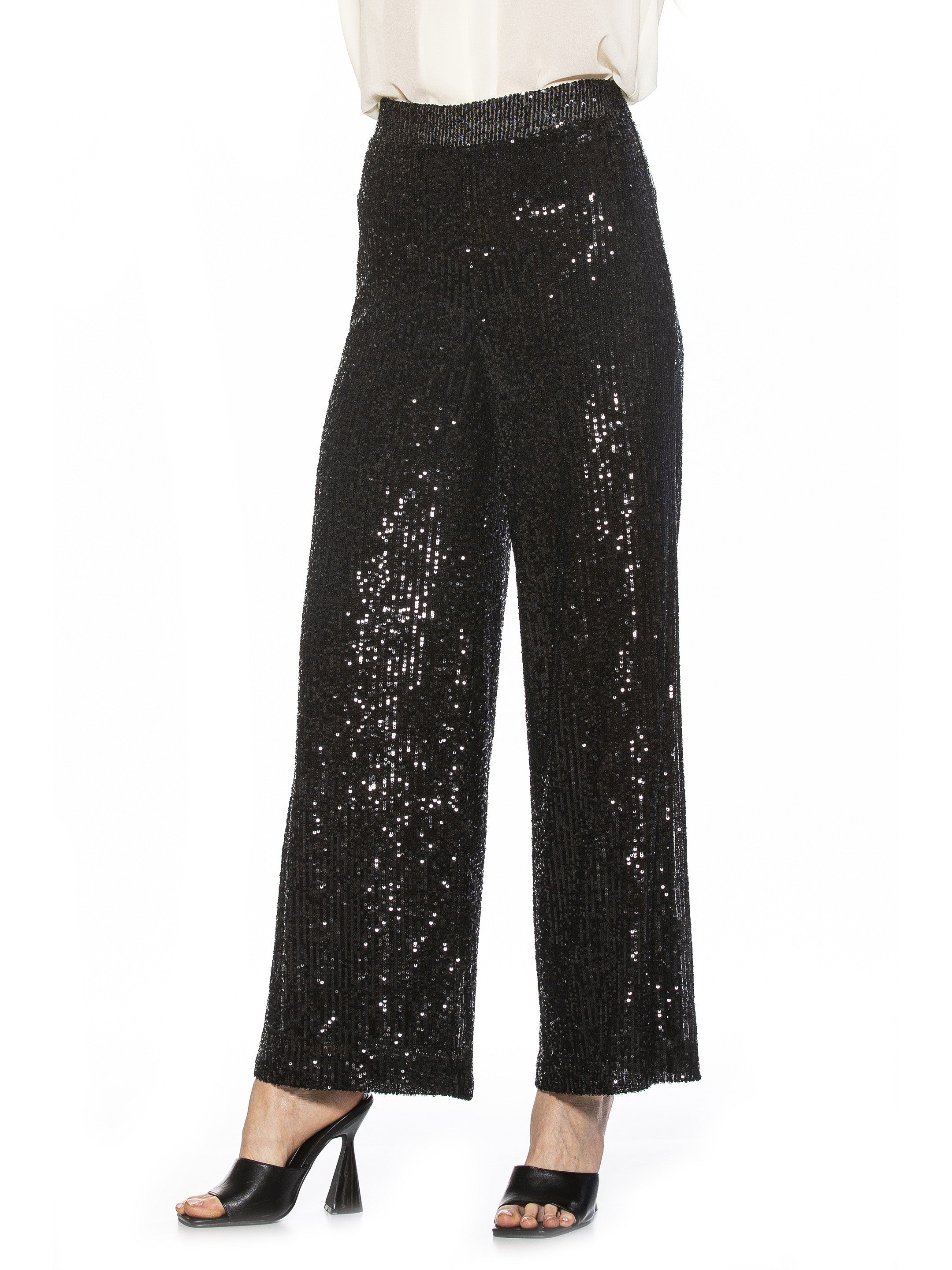Enhance your fashion statement with the luxurious Illy Sequin Pants. These high waisted pants feature a glamorous wide leg design and full sequin embellishments for a tasteful and exclusive look. Stand out in style and sophistication with Illy.