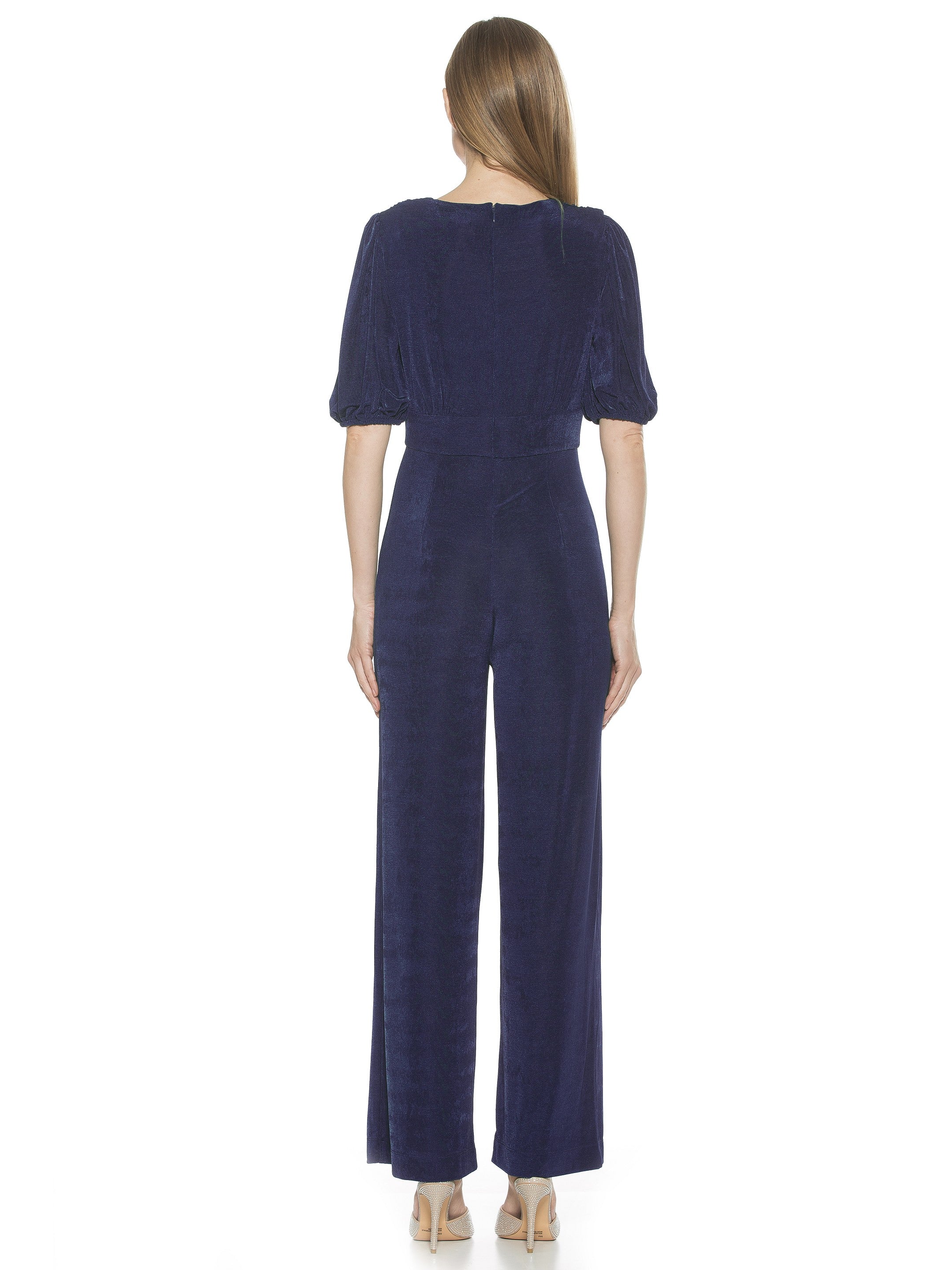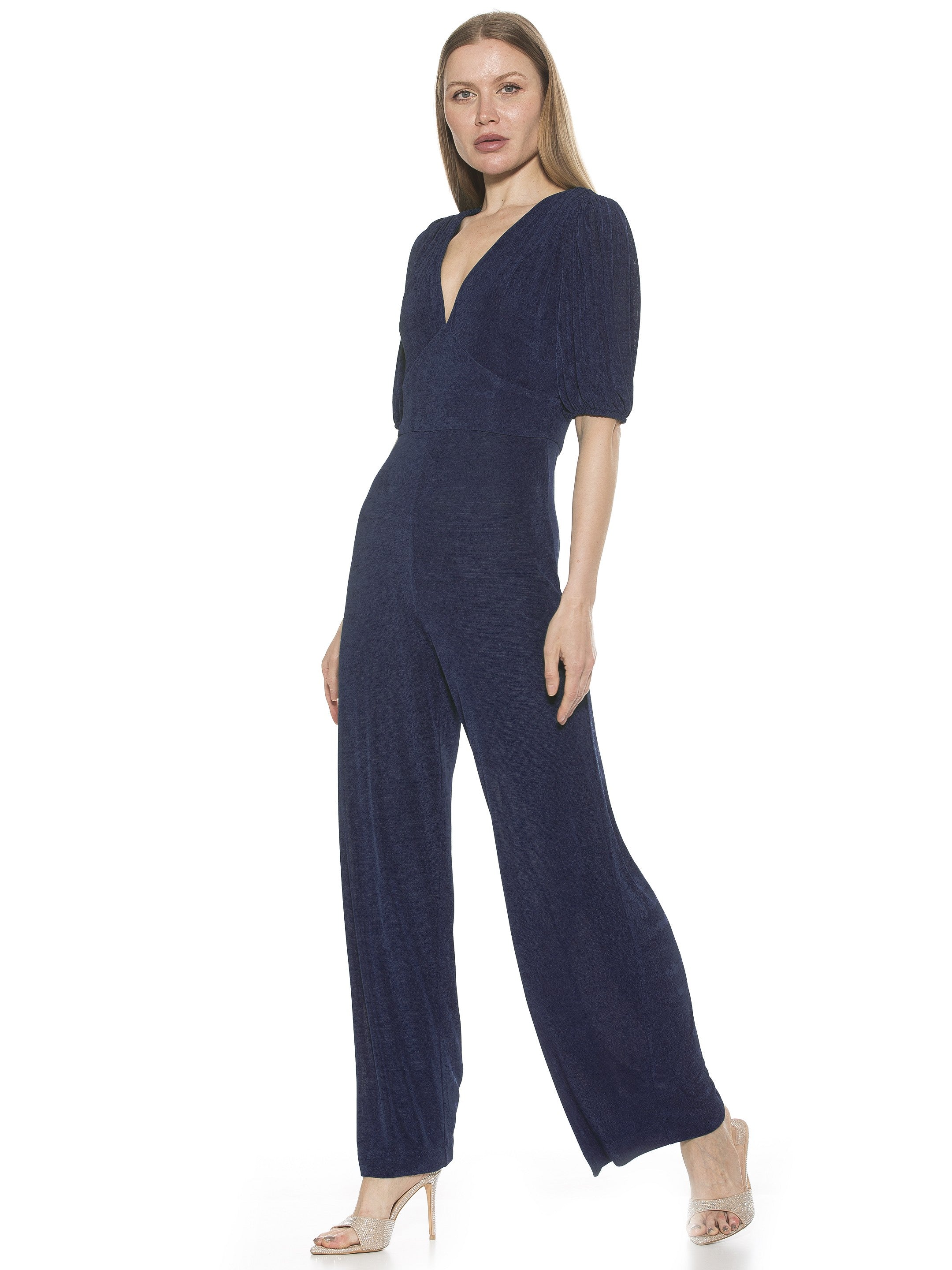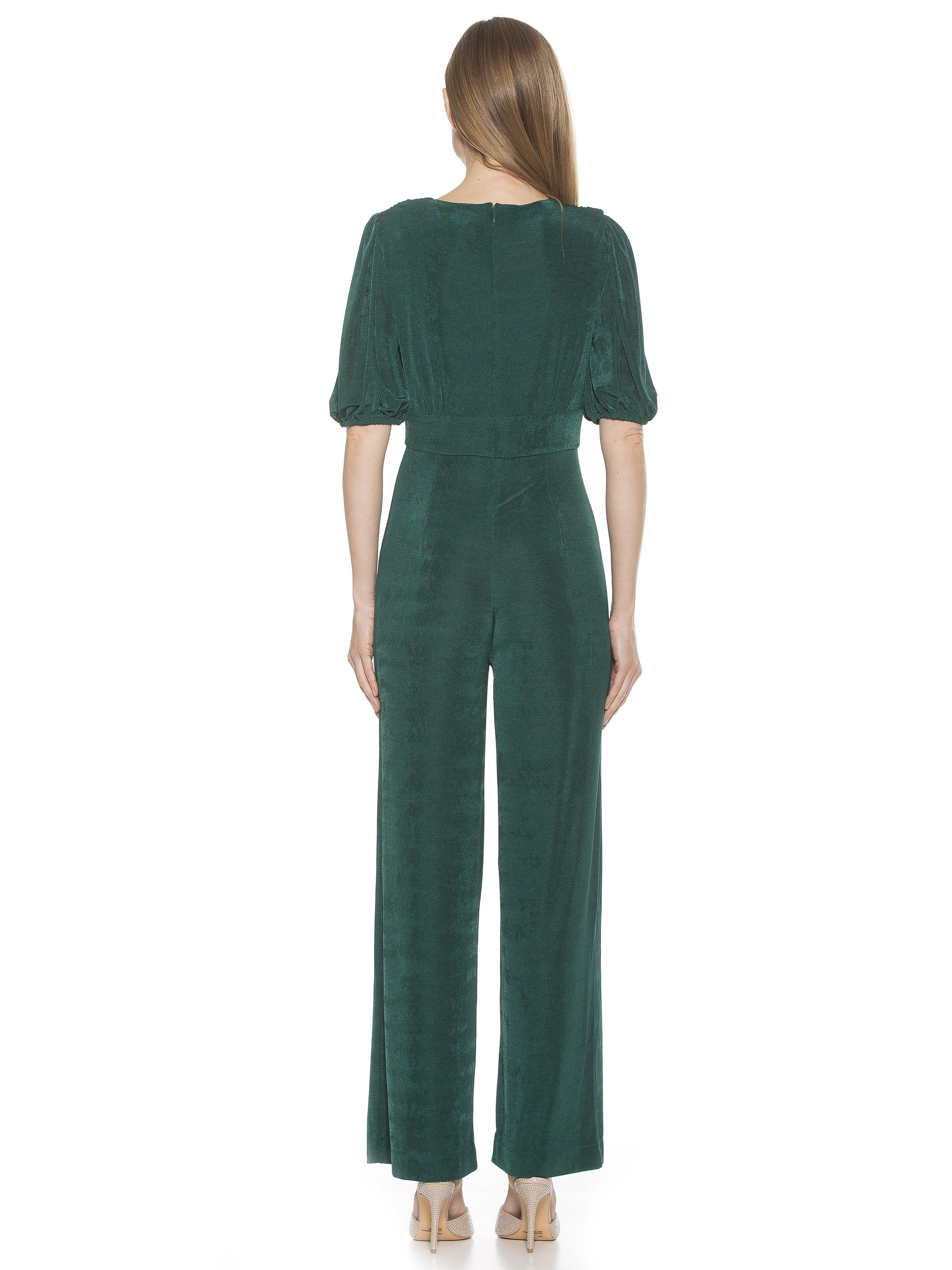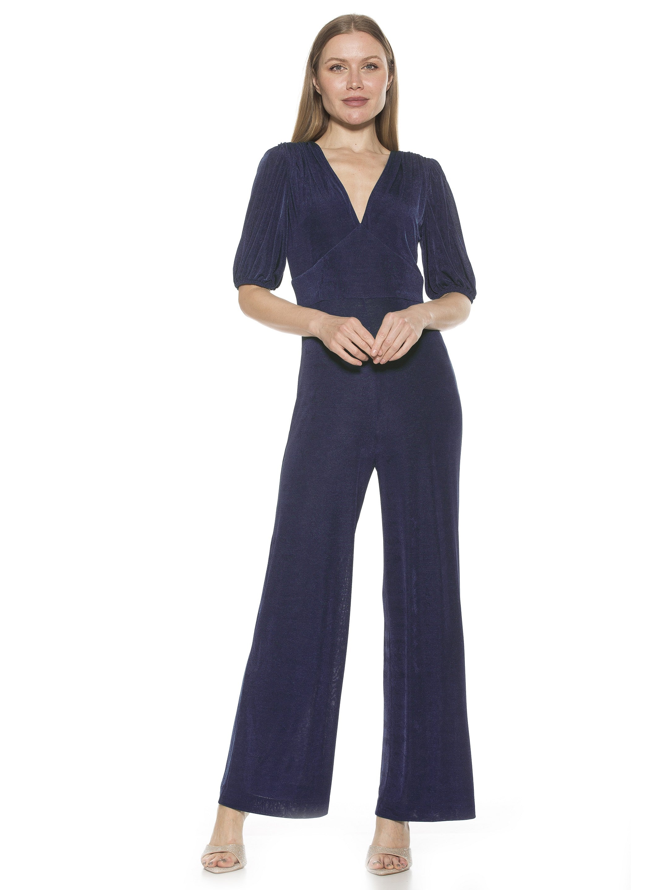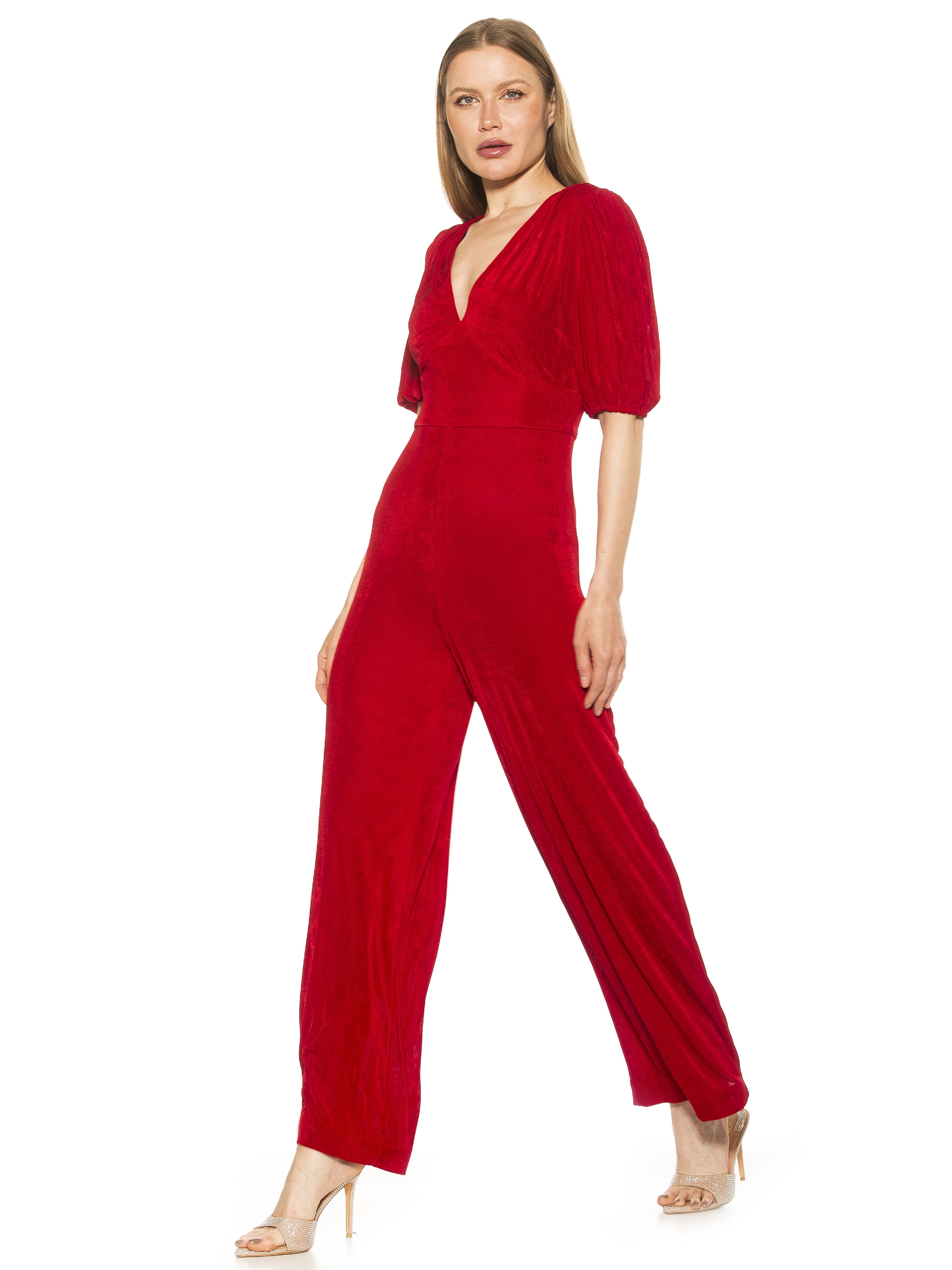 The Ivy Jumpsuit is the perfect way to make a classy statement. This sophisticated one-piece is crafted with a figure-flattering V-neckline, generous bubble sleeves, and a fitted waistline that cinches your curves. The flattering wide full leg complements the chic silhouette, offering a look that is tastefully elegant.