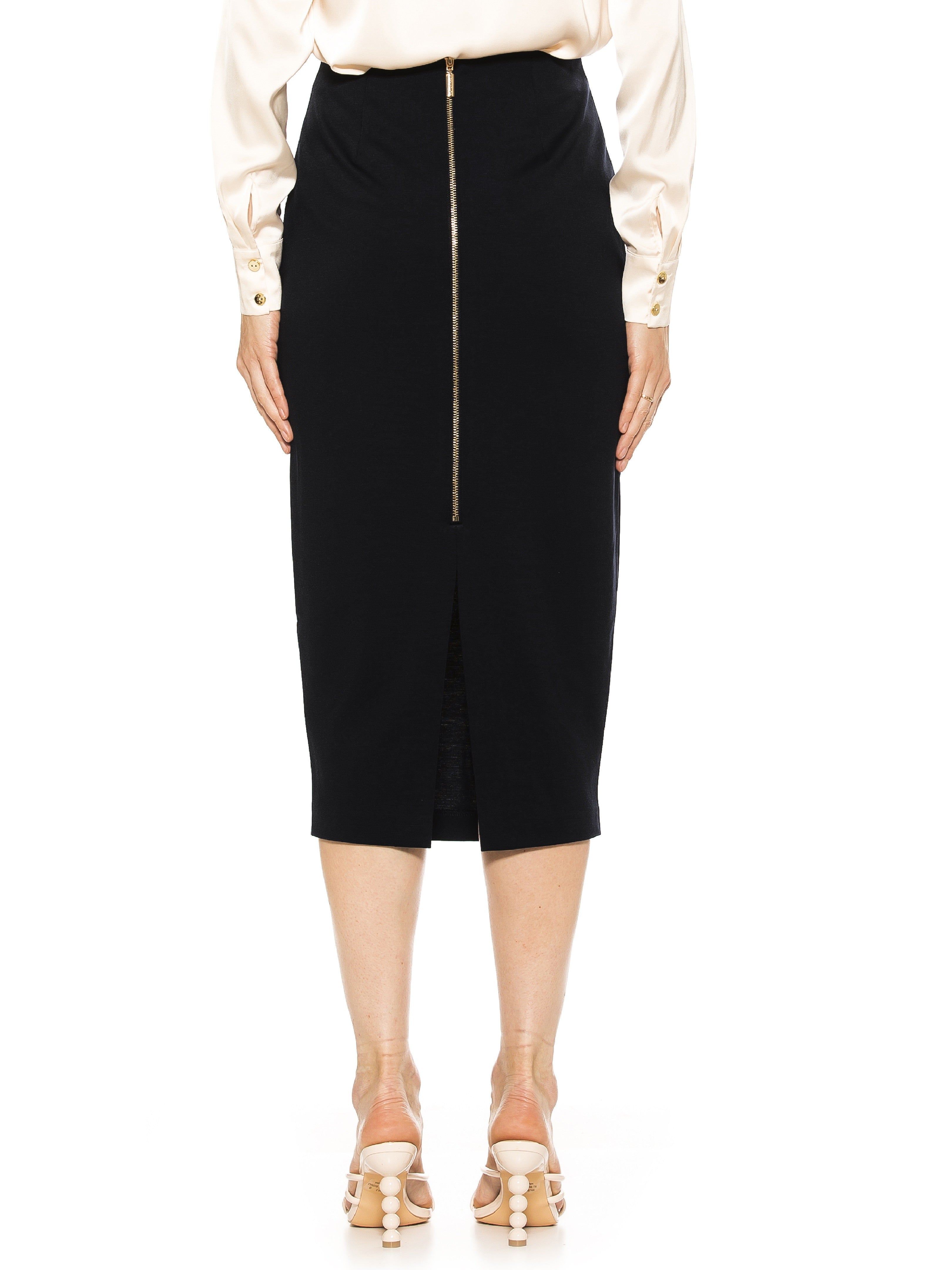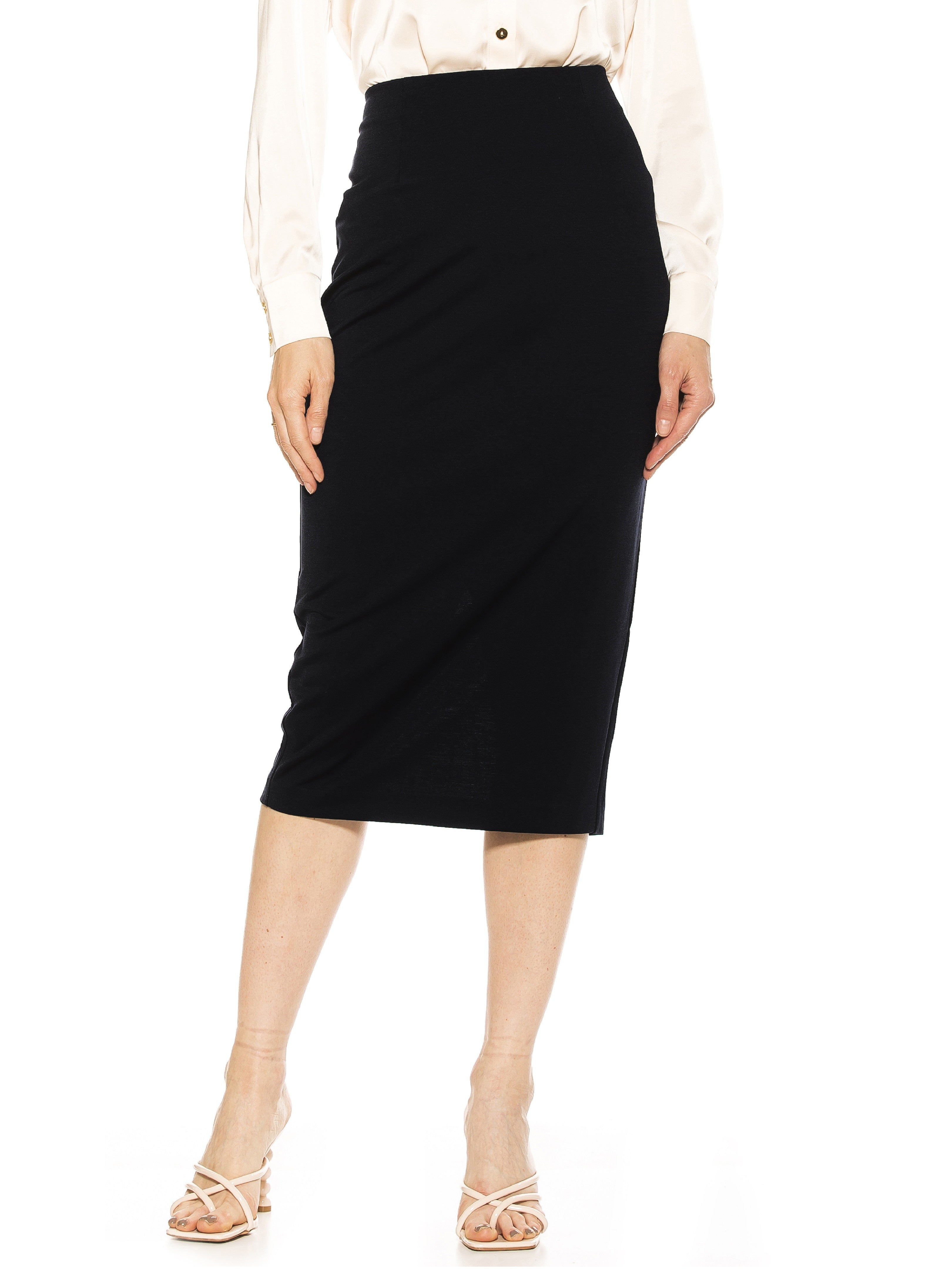 - Midi-length pencil skirt