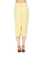 Sleek, streamlined, and endlessly versatile, the Jacki Midi Pencil Skirt is a modern wardrobe essential designed to flatter and contour. Cut in a smooth stretch ponte fabric, this midi-length silhouette hugs the body while offering comfortable movement and a polished finish. The clean front is balanced by a back slit for ease of wear, while the structured ponte fabric provides subtle stretch and shape retention. Unlined for a smooth, lightweight feel, this skirt transitions effortlessly from day to night with timeless appeal