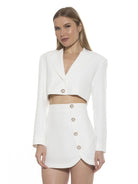 Be the talk of the town in the Jane Jacket! Designed with luxurious pearl buttons, notched lapels, and long sleeves, this piece will have you looking chic and sophisticated. Its front button closure is easy to fasten and promises effortless elegance. Make a statement with the Jane Jacket!