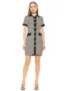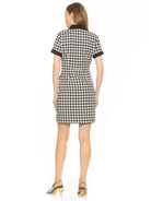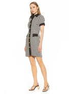 Indulge in the sophisticated elegance of the Jenni Dress. Crafted with a luxurious tweed fabric and featuring a delicate collar and contrast trim, this mini dress exudes exclusivity. The button-down design adds a touch of charm, making it the perfect piece for any upscale occasion.