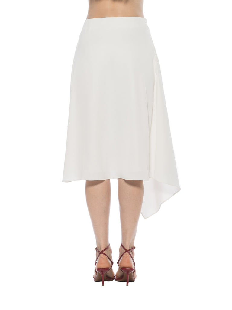 Flowing drama, elevated contour. With its sweeping asymmetric hem and full-skirt silhouette, the Jess skirt brings movement and modern elegance to any wardrobe. Crafted in a luxe fabric that offers structure and polish, it’s designed to make an effortless statement from day into evening.
