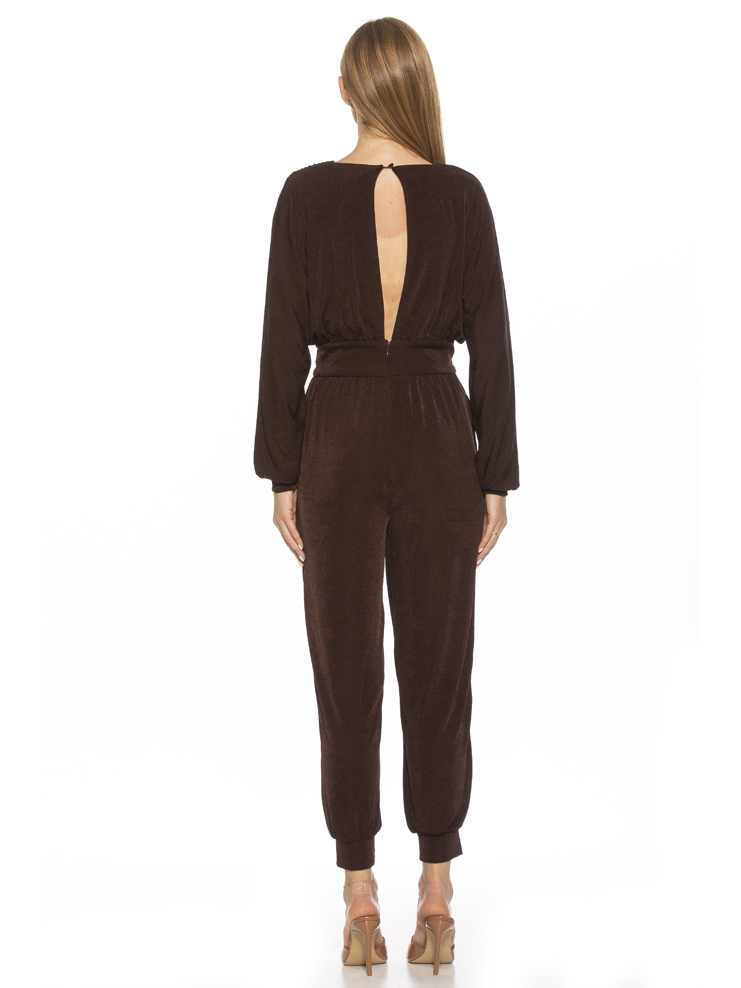 Stay cozy in this Joey Jumpsuit that's made for lounging! With its V-neck for a classic look, long sleeve for full-body warmth, and blouson sleeve for a little extra style, you won't want to miss out on this comfy knit number.