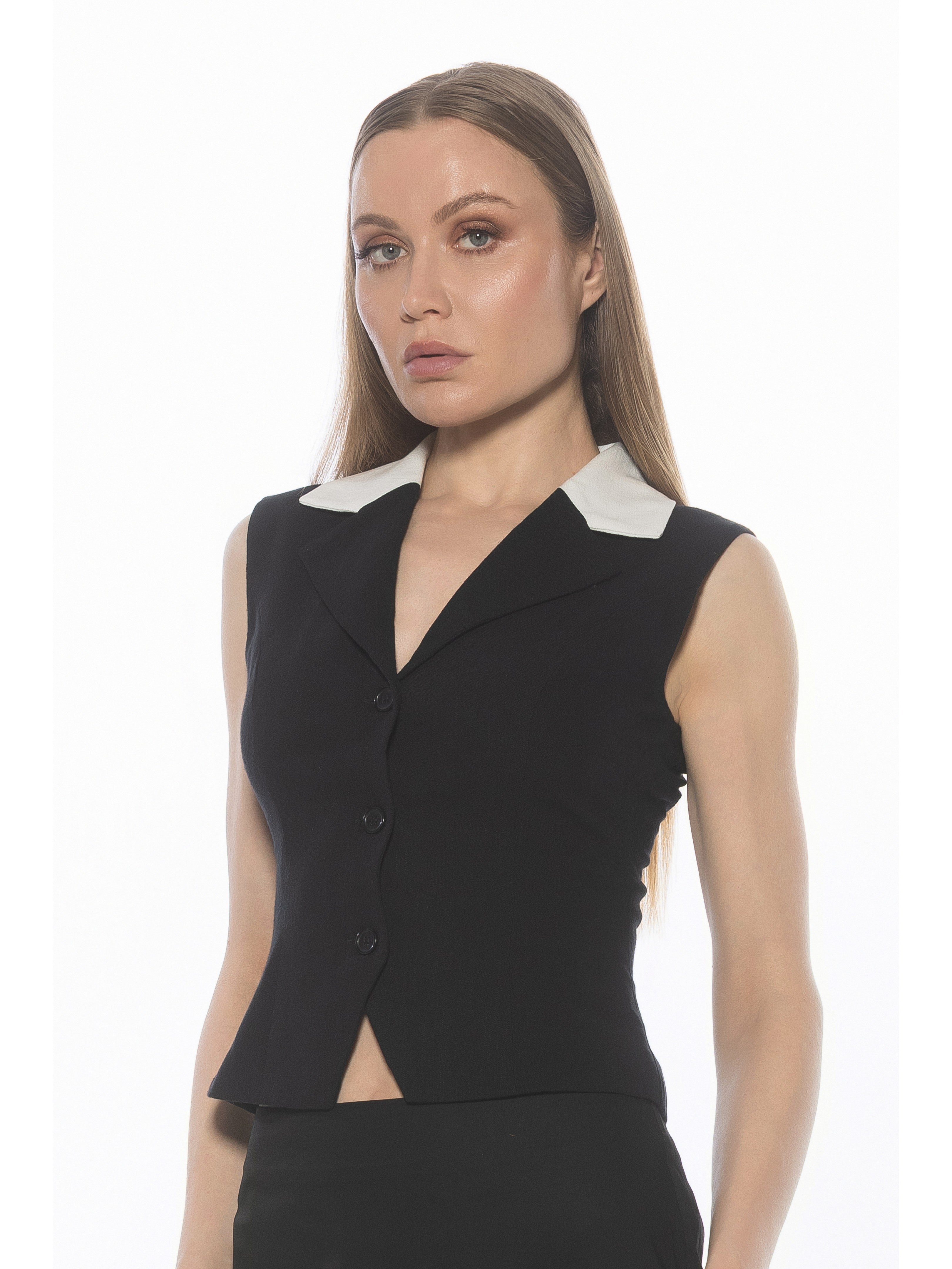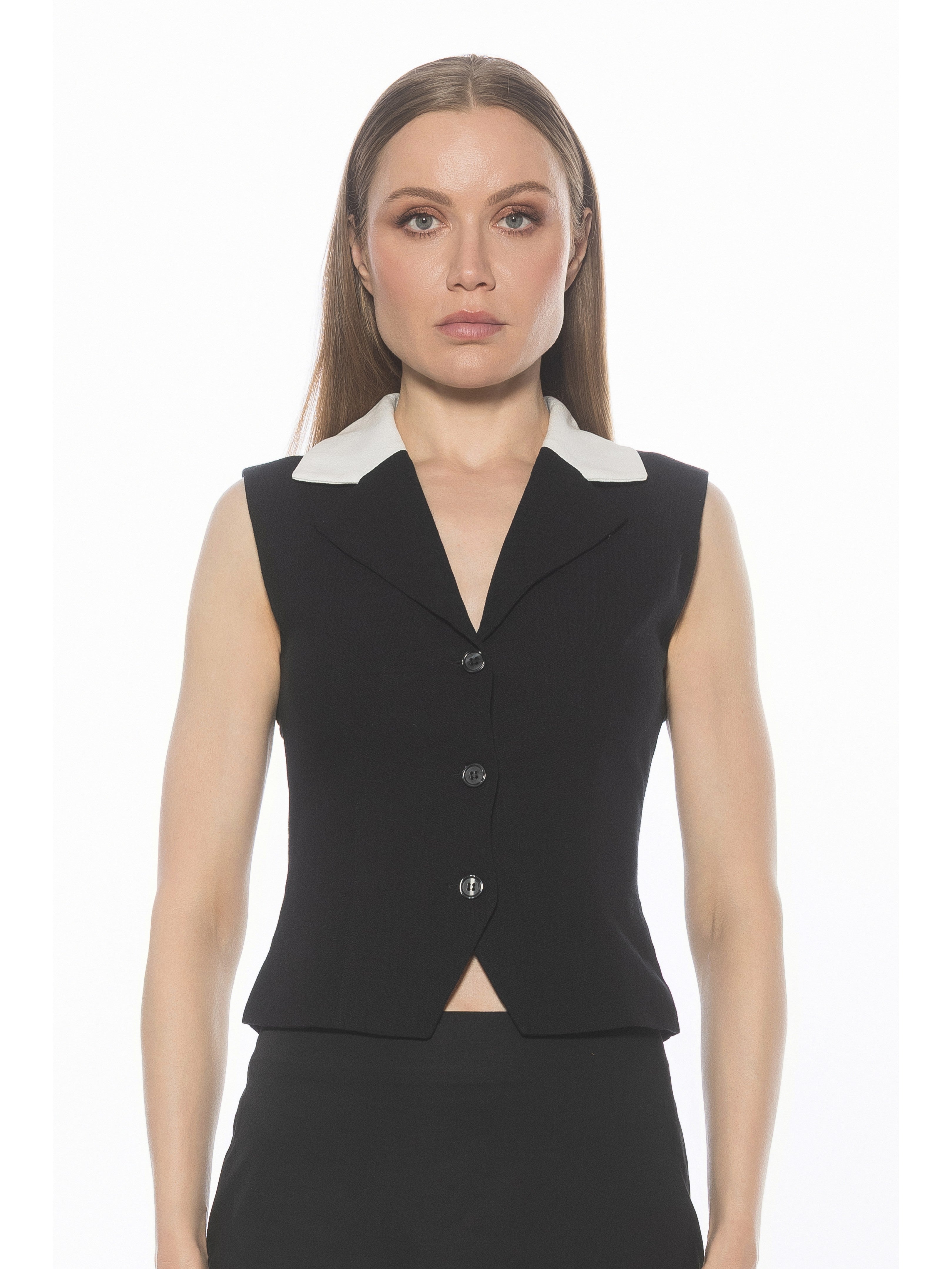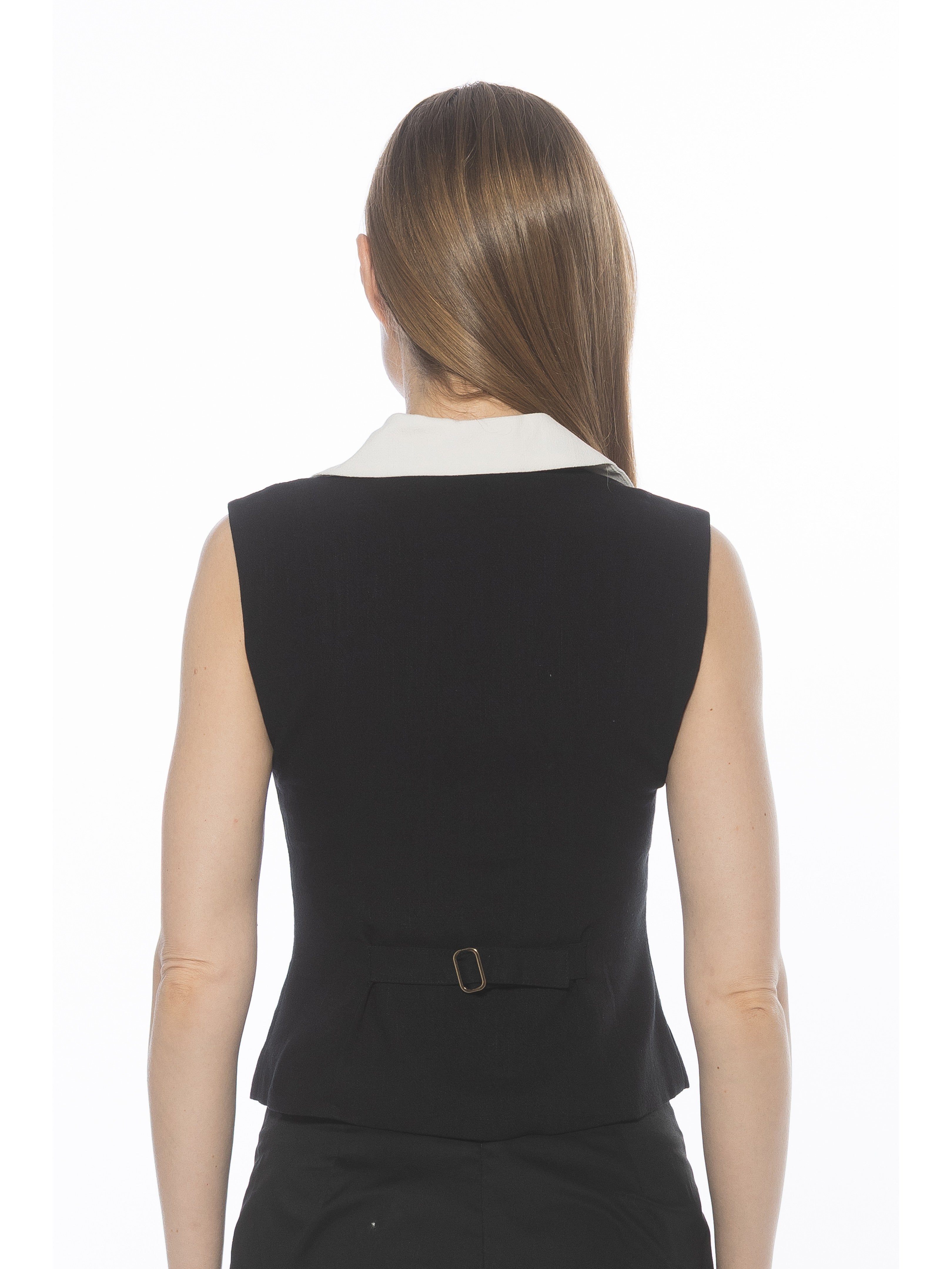 The Luisa Collared Button Down Sleeveless Vest Is A Must Have For Your Wardrobe. This Top Features Front Button Down Closure, Collar, And Adjustable Back Slider. This Top Fits True To Size.